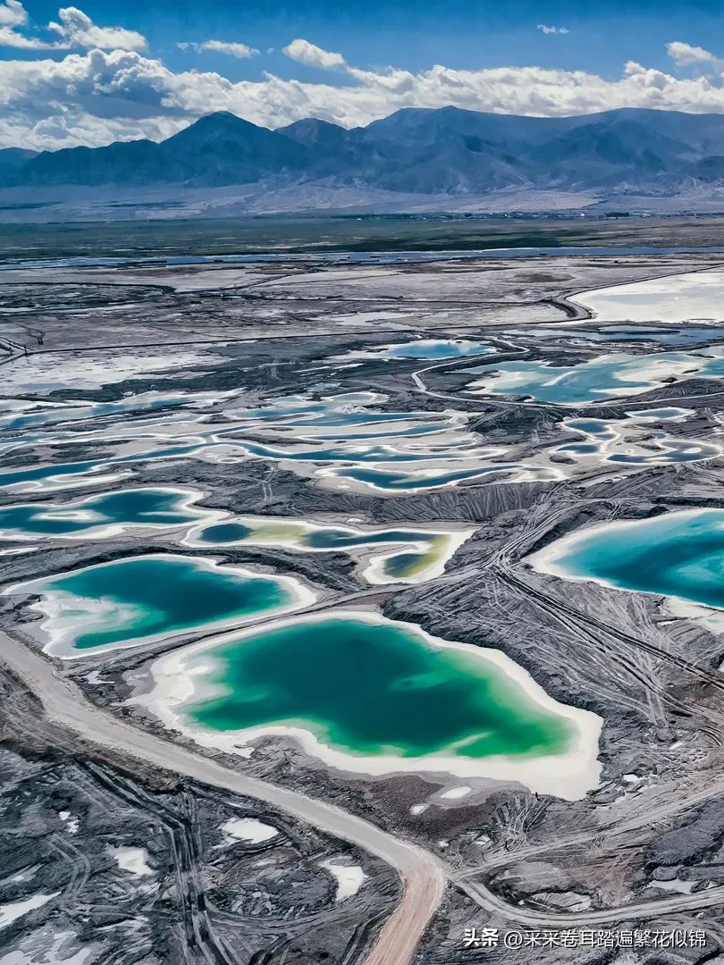 色彩斑斓、星星点点的湖泊洒在西北的广袤大地上,这就是自然的巨大调色板,而不需要修辞或象征。