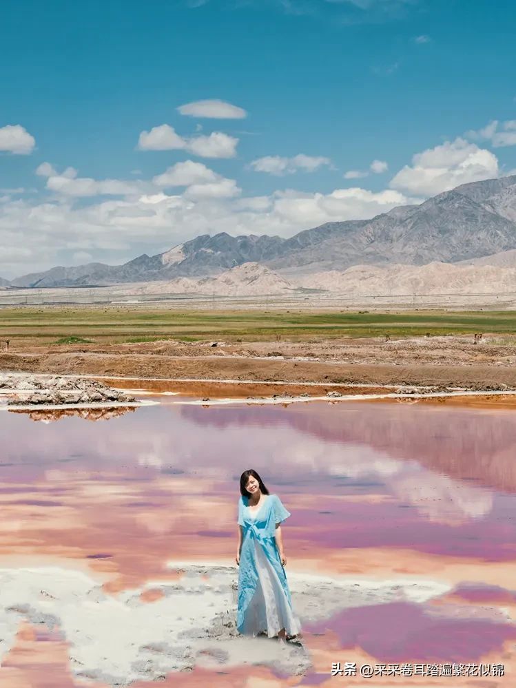 在入口处有几个大盐湖,湖浅且平,想拍出不一样的感觉可以坐在上面。不过缺点是衣服会变硬,脚部接触盐也不好,不能长时间用这种姿势拍照。