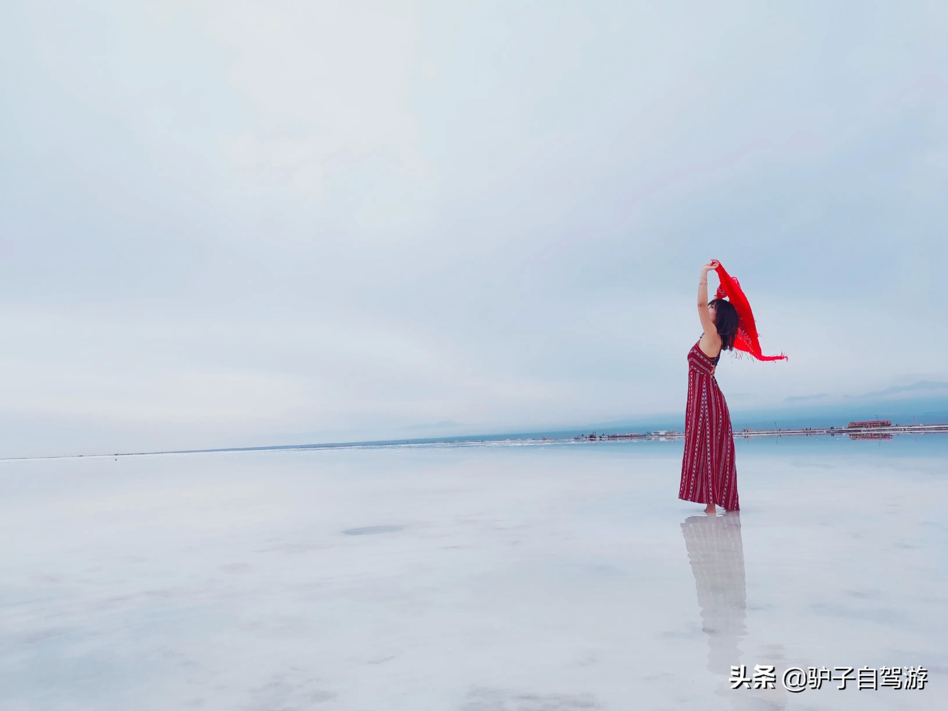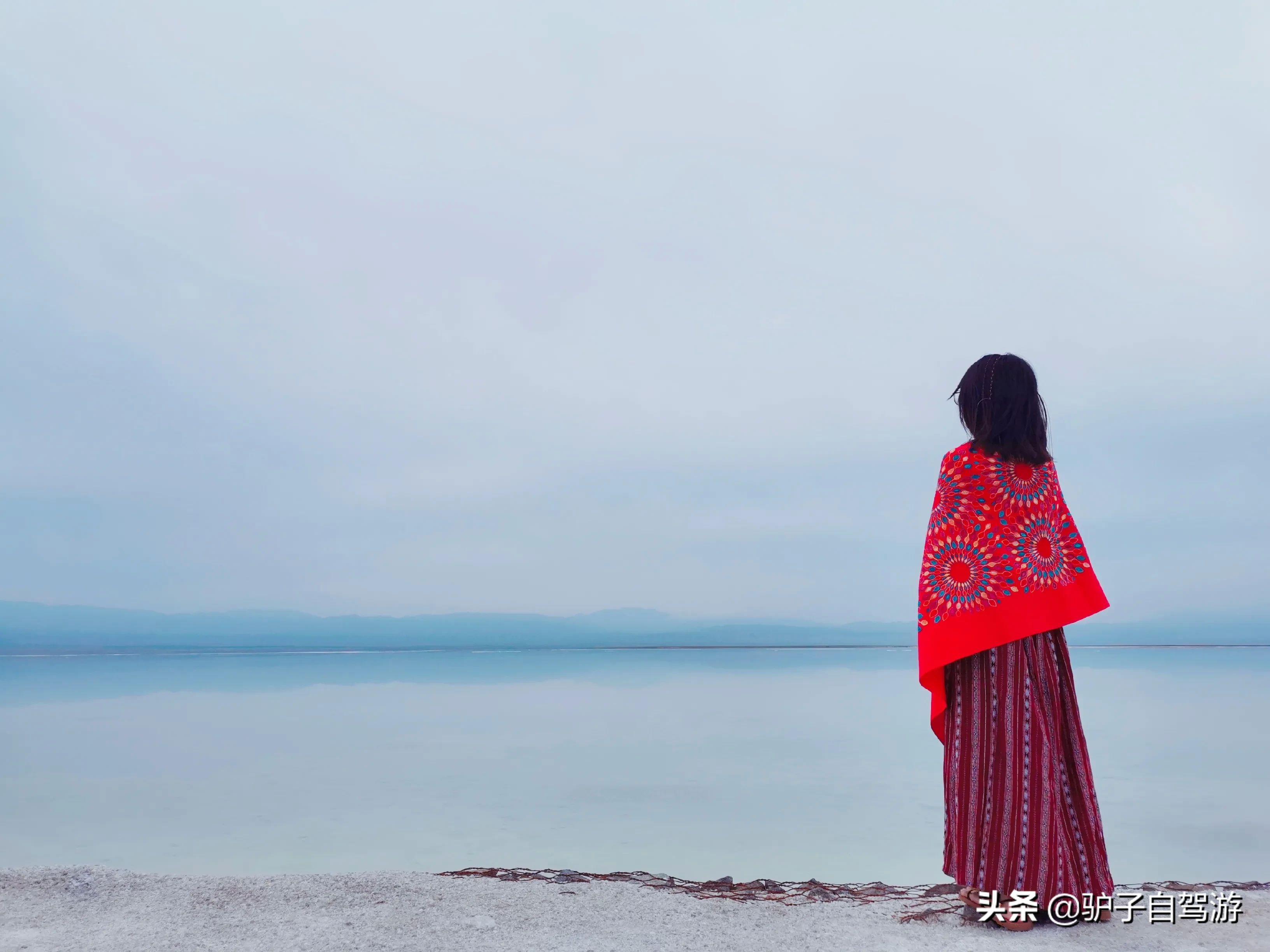 4.穿衣攻略:男生怎么穿都OK,女生就要穿艳一点的颜色,比如说红色,黄色等。大多数人选择红色衣服,因为在茶卡盐湖上,穿红色衣服,很形成明显的对比,最好还要一件披肩。当然,还要做好防晒,因为紫外线很高,墨镜和帽子都要带上。