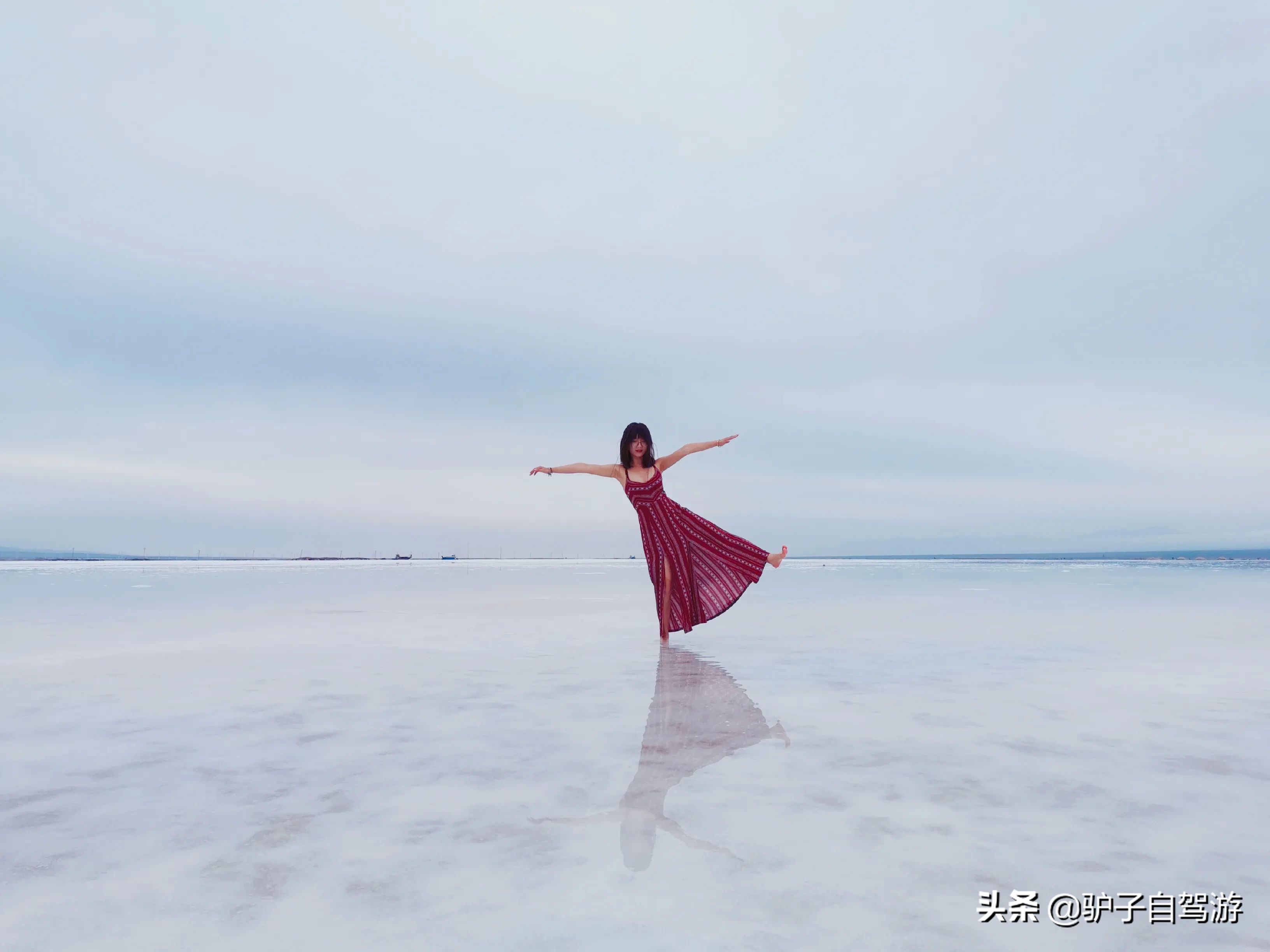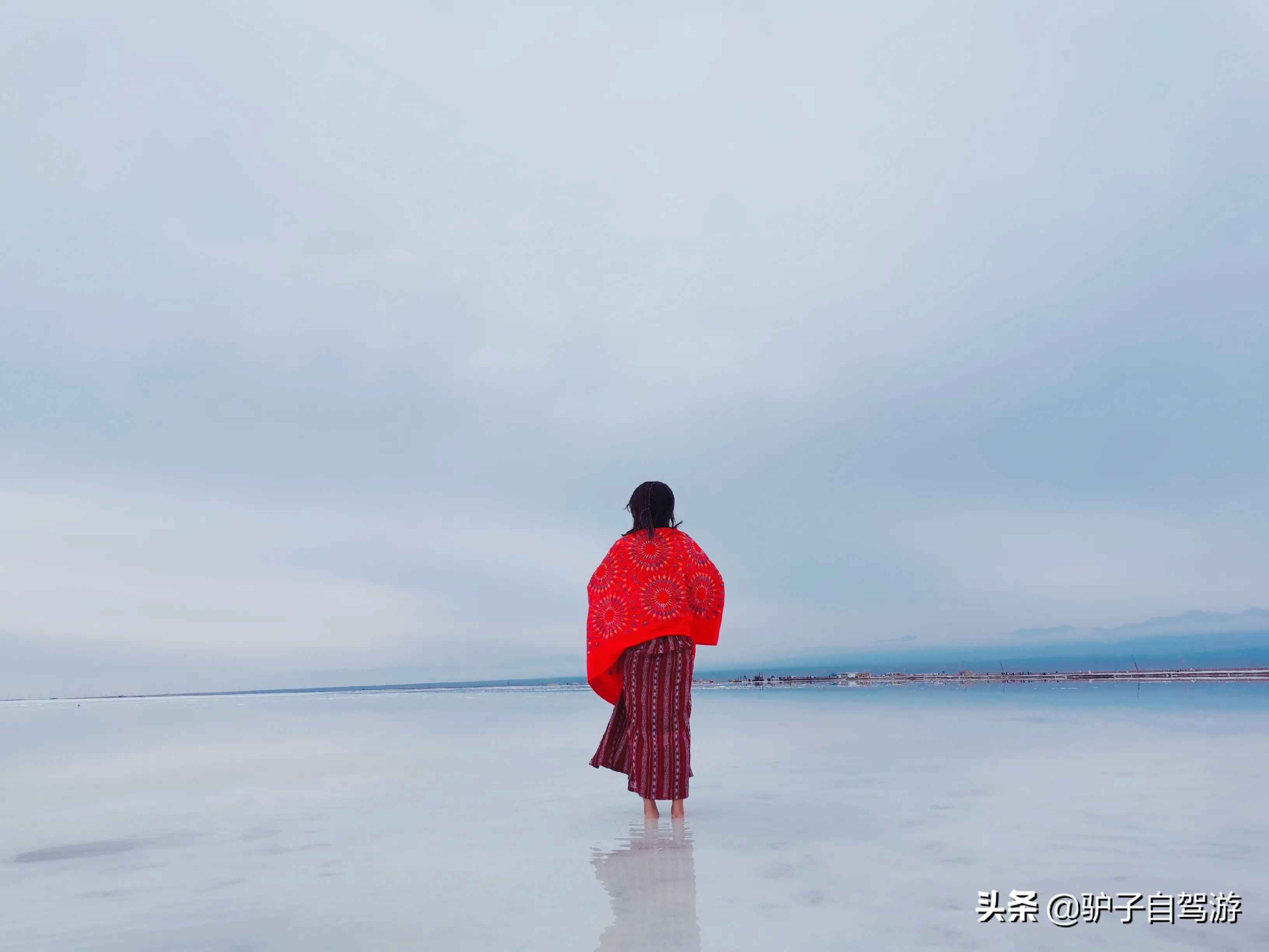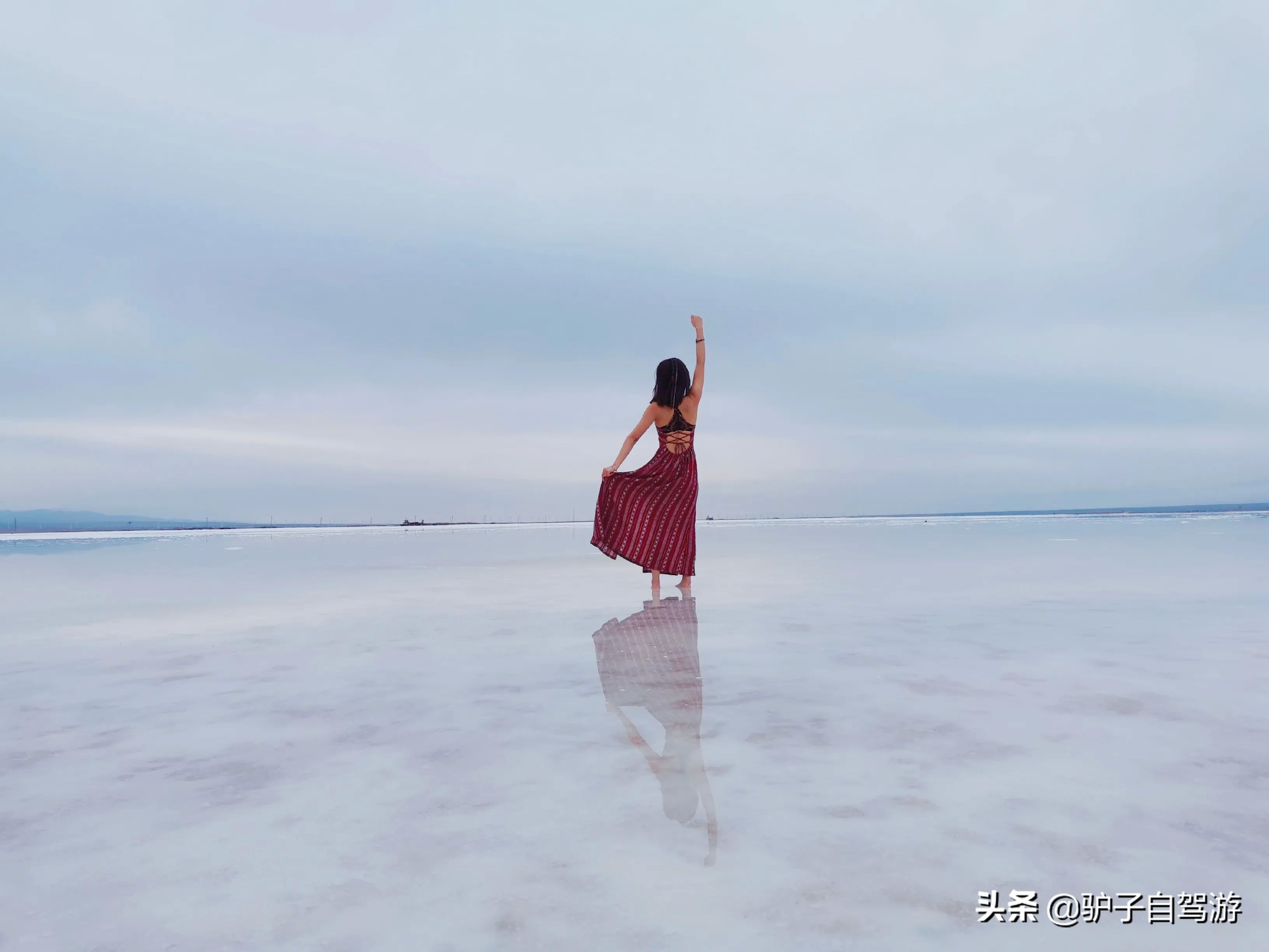 6.拍摄攻略,茶卡盐湖景区进去有一些场景,可以自己选择拍照。然后往湖心可以下湖中拍摄,水比较冷,建议备个鞋套。然后,可以提前在网上找一些动作姿势等,这样就不会显得拍不出好照片。如果觉得,我分享的几张图还可以,也可以参考。