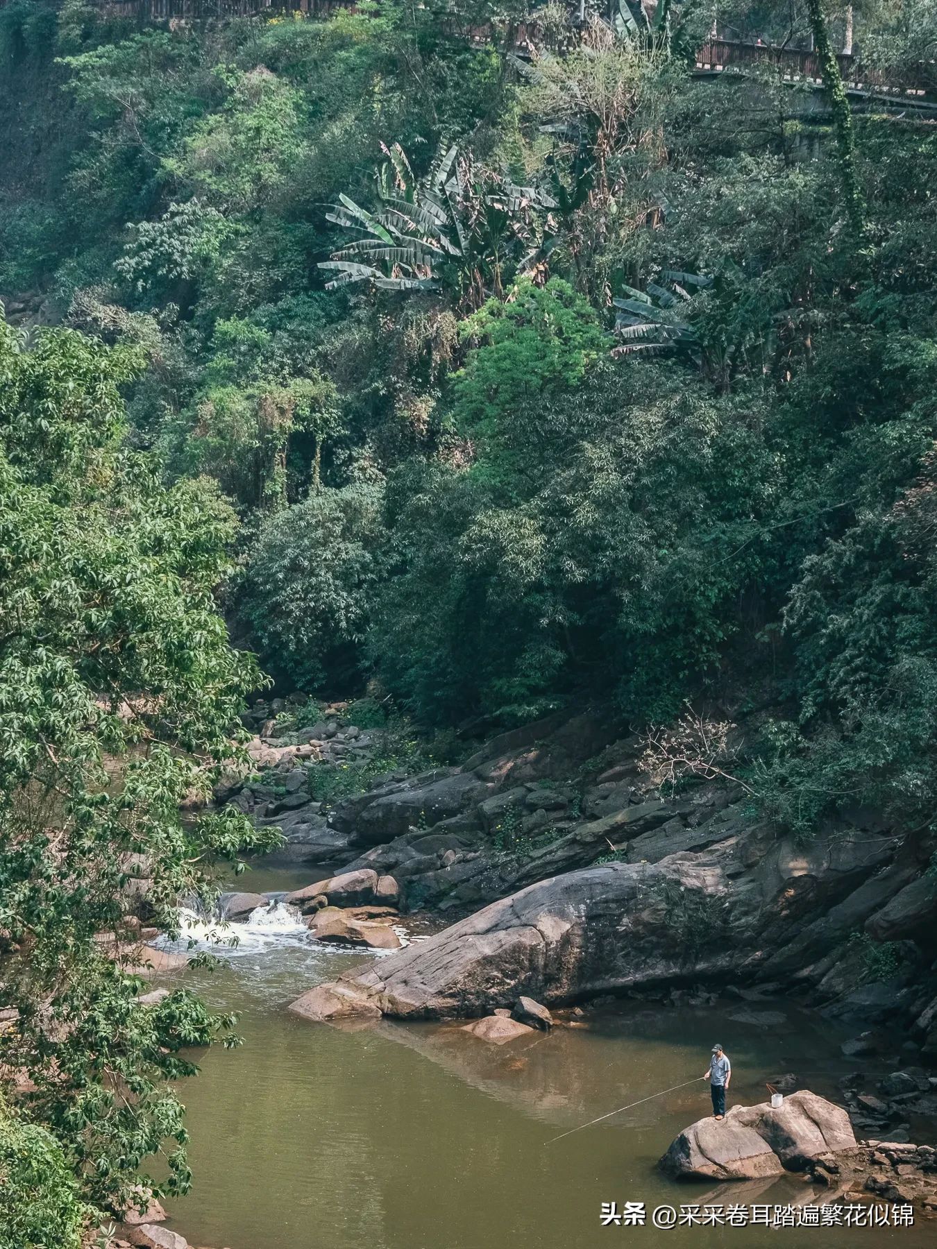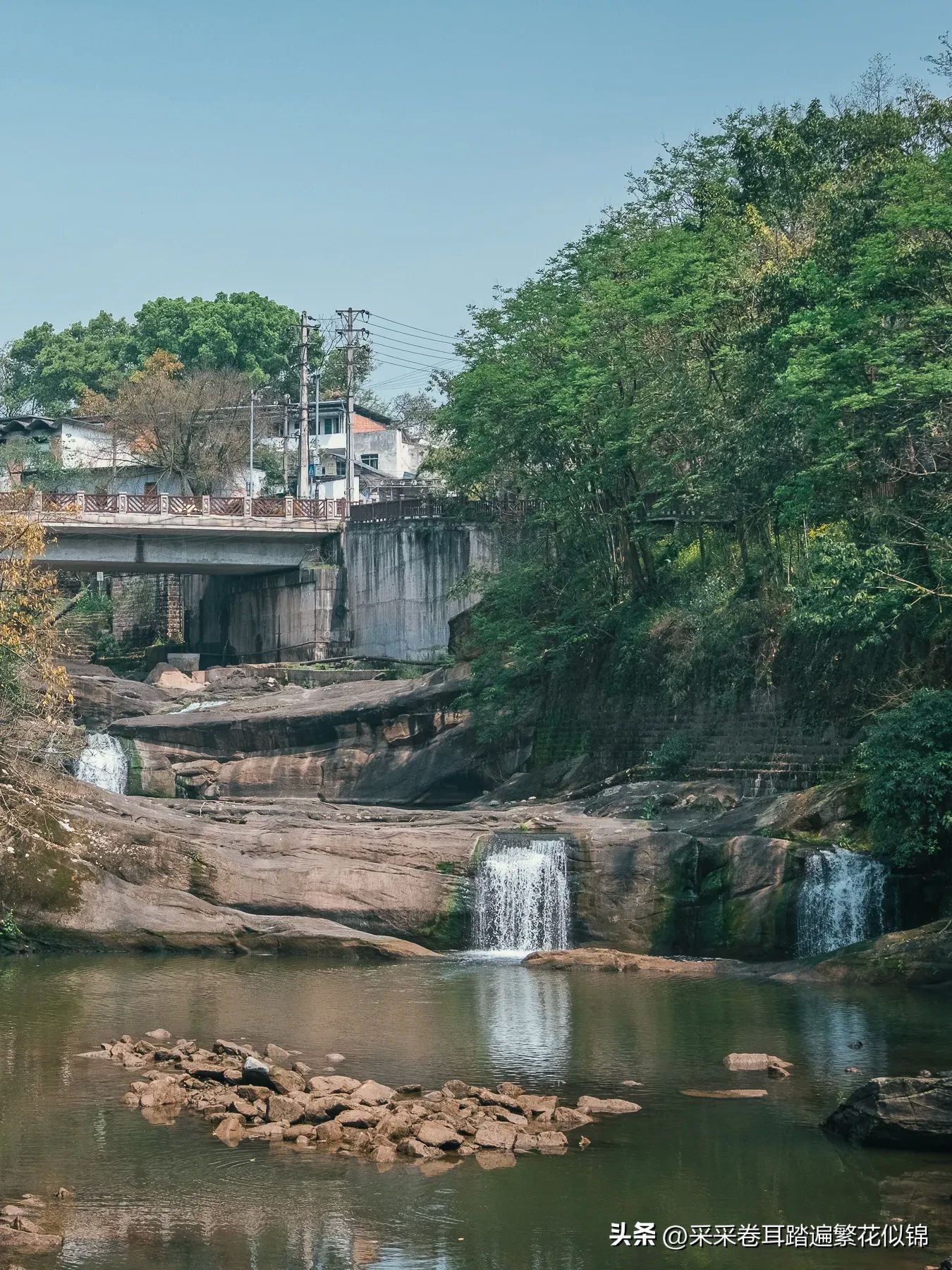 走在虎啸悬流桥上,眺见如烟的树、似雾的水、层叠的石,绘就一副《花溪春水》色彩画卷。