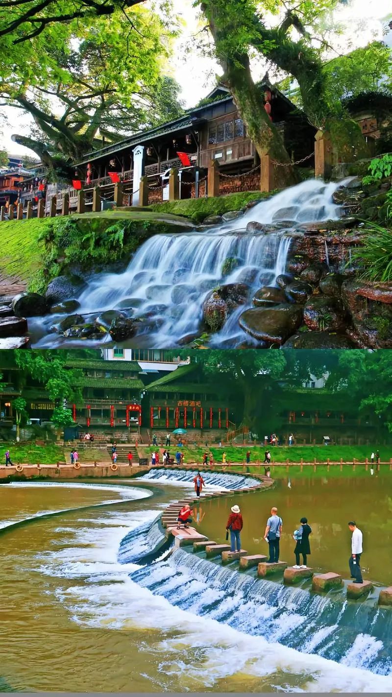 - 傍晚在古镇石板街吃藤椒鸡、九大碗、冰粉。