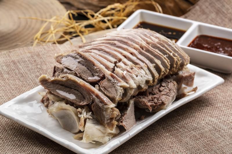 手把肉:现宰的羔羊用清水煮制,保留原汁原味,吃的时候可以蘸上韭菜花酱等调味料。
