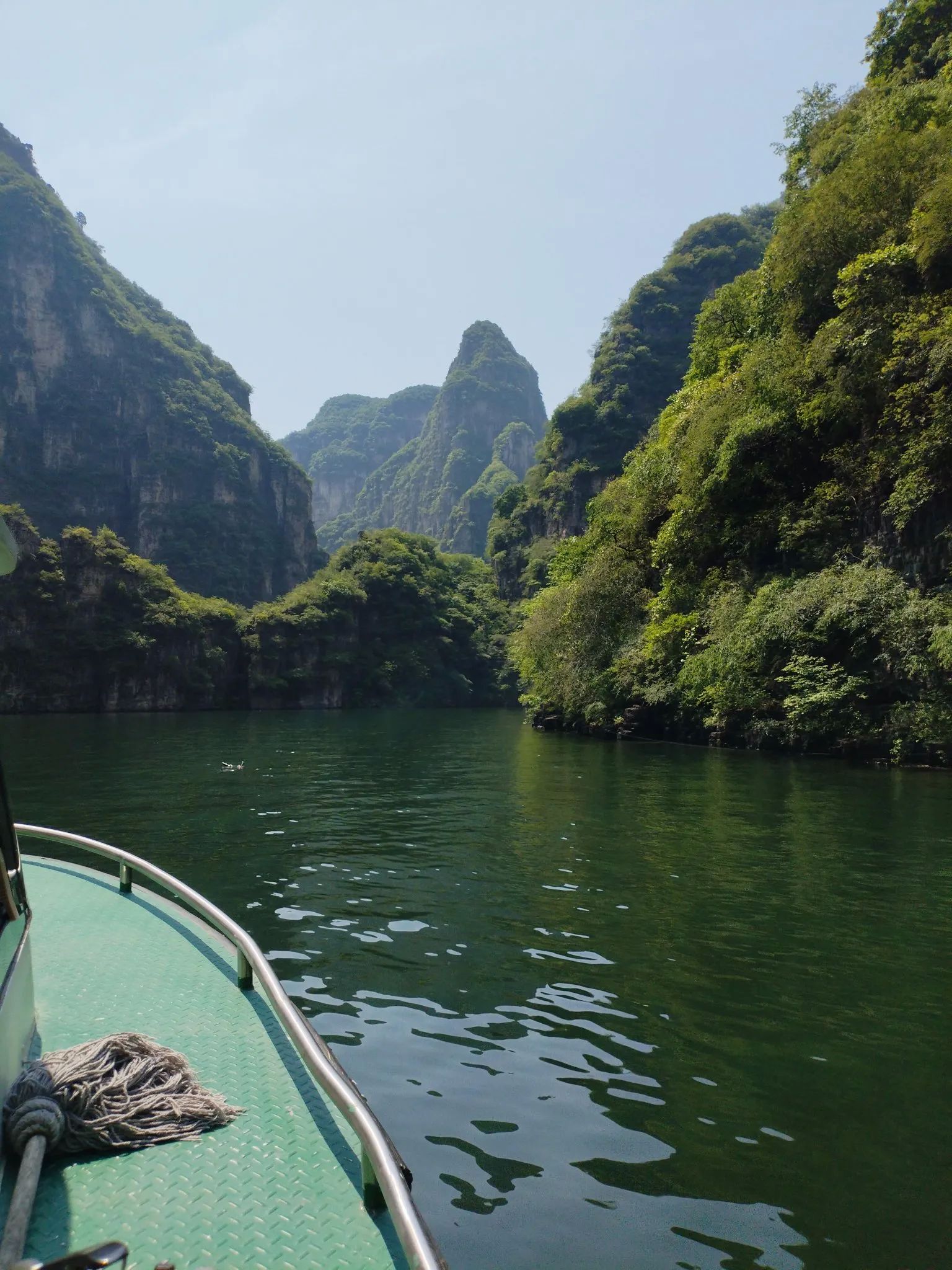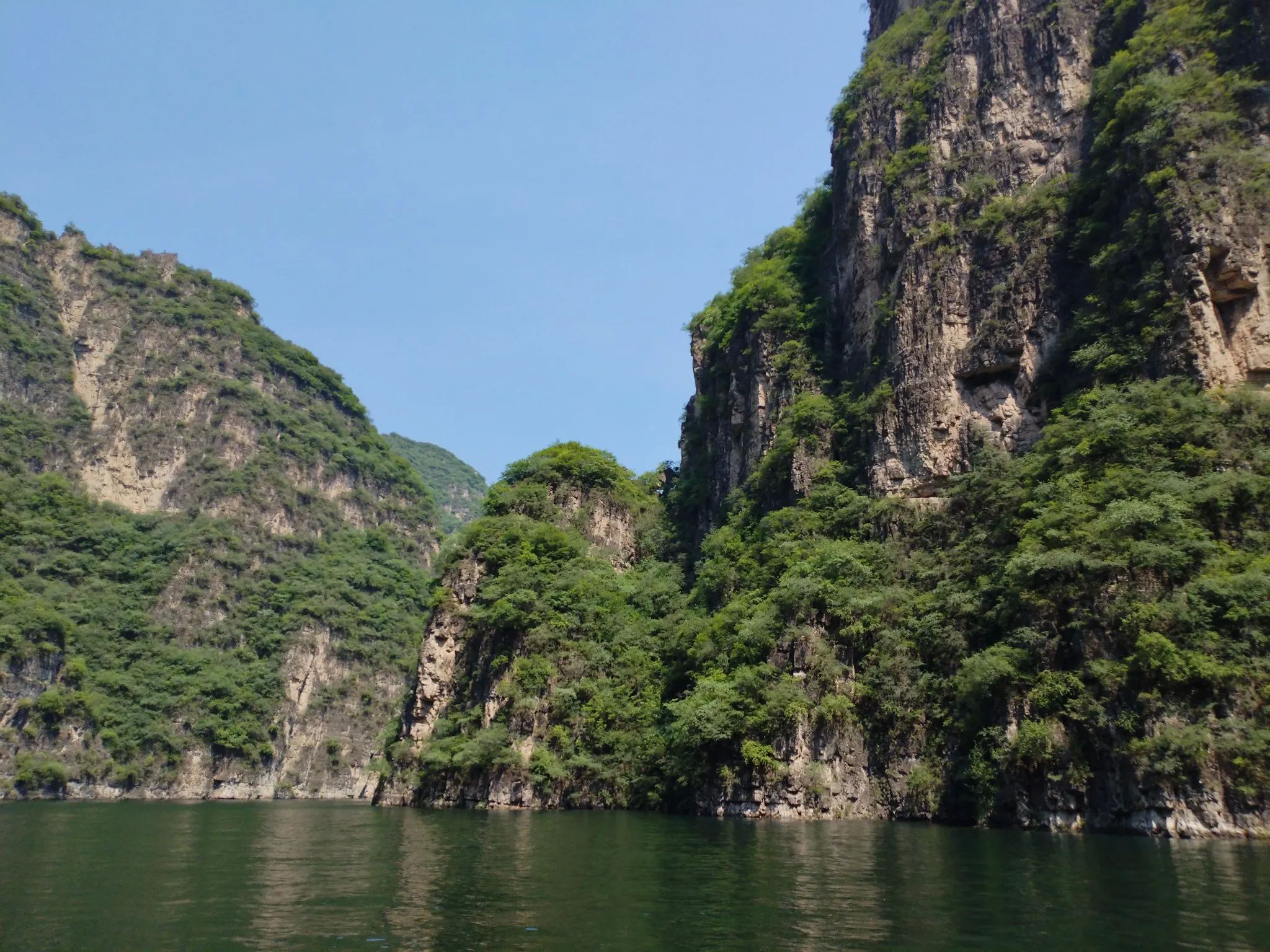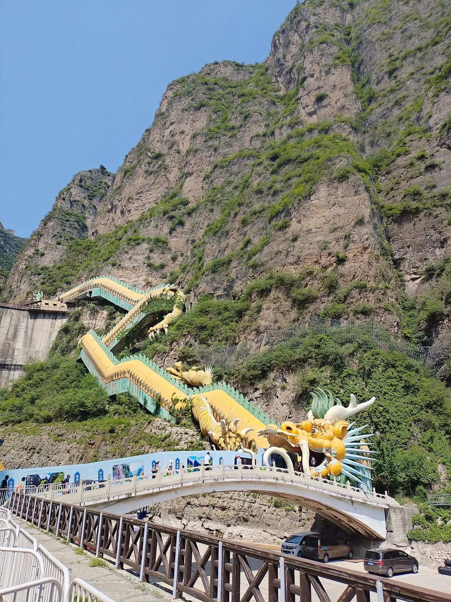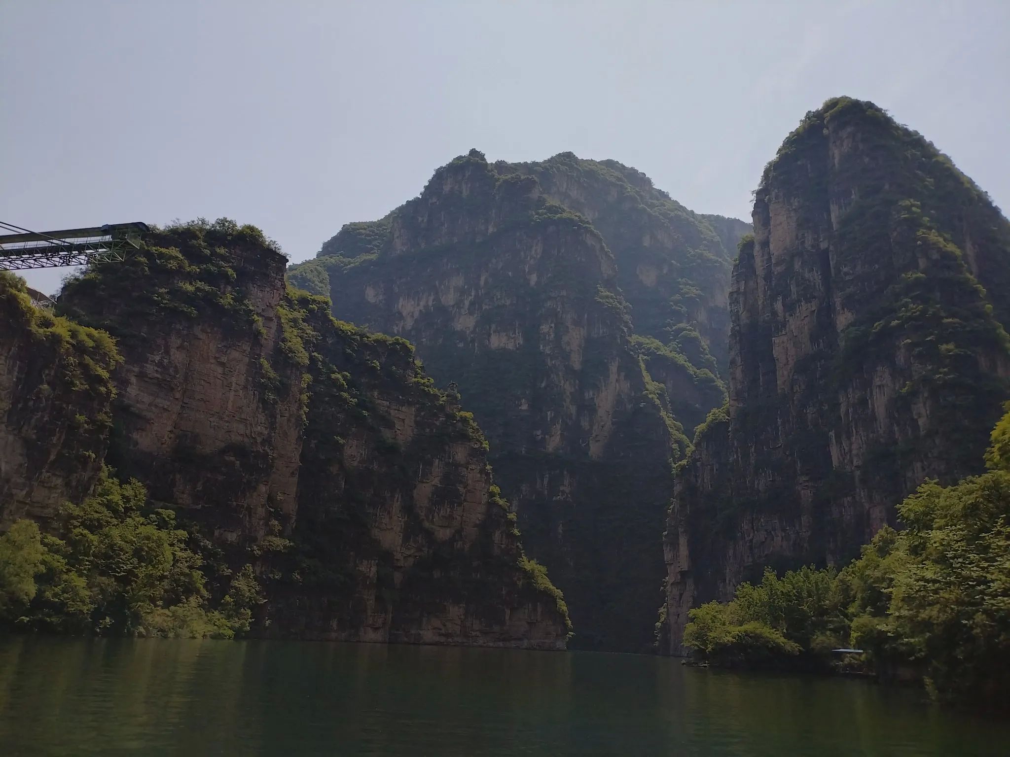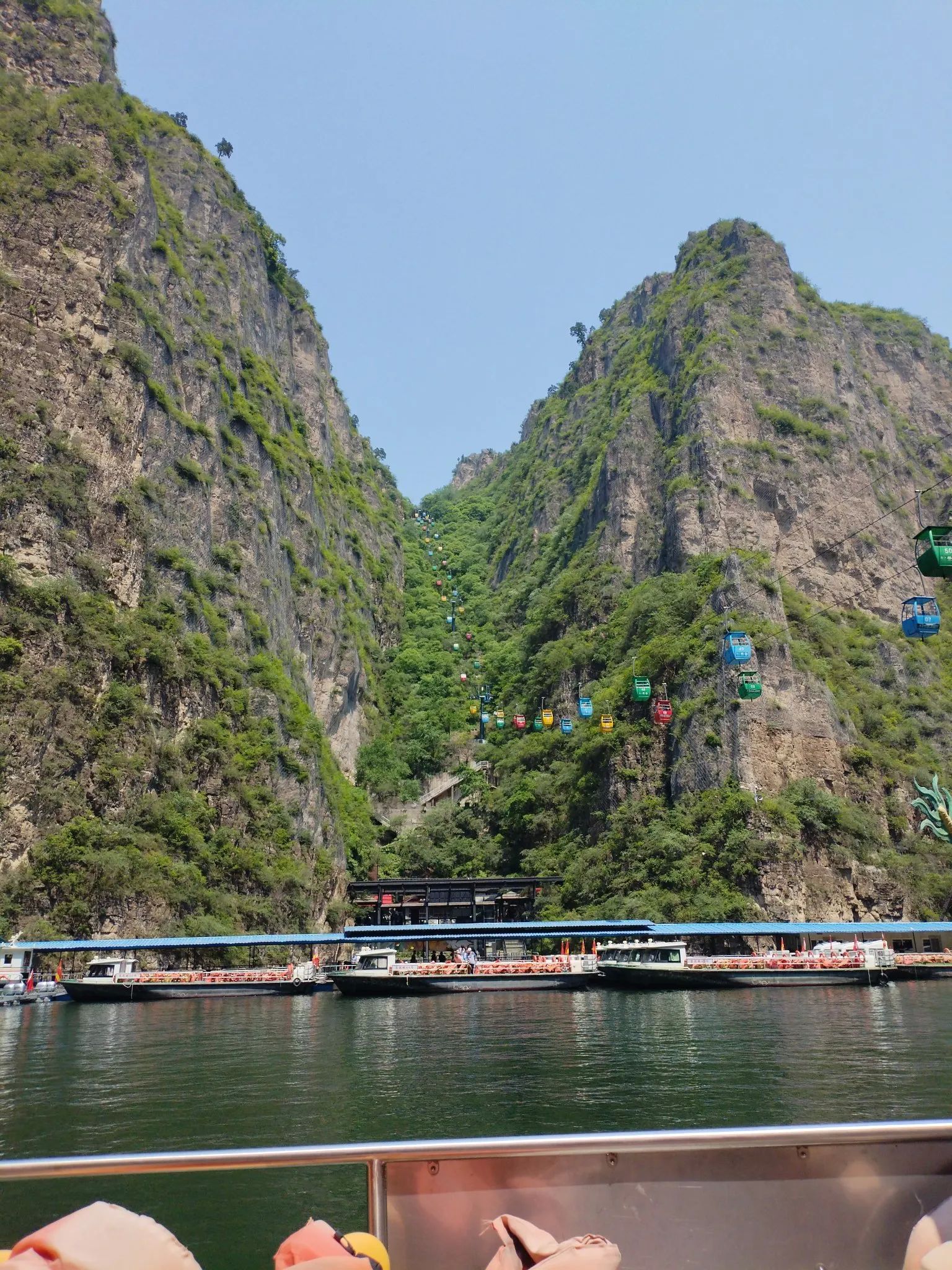 进门乘坐电梯,这个是免费的,就和我们去商场的电梯一样,大约15分钟到达第一个观光点——乘船游(门票100),这个应该是龙庆峡的核心,景色确实挺好的,有点桂林漓江的意思,两侧的山峦和野三坡百里峡的很像。还不错。中间会有一个码头(金刚寺,目前维护中。。。进不去)。