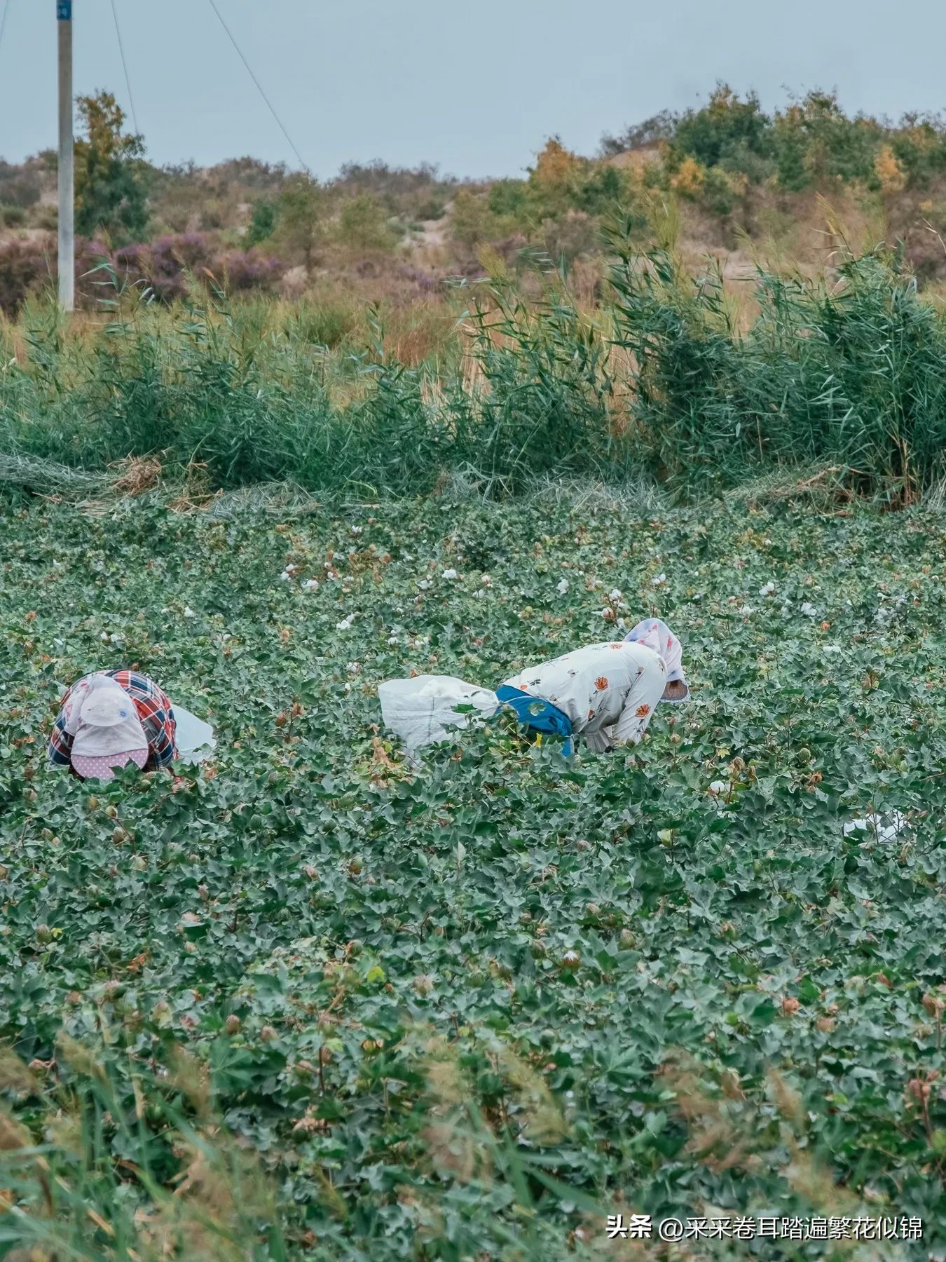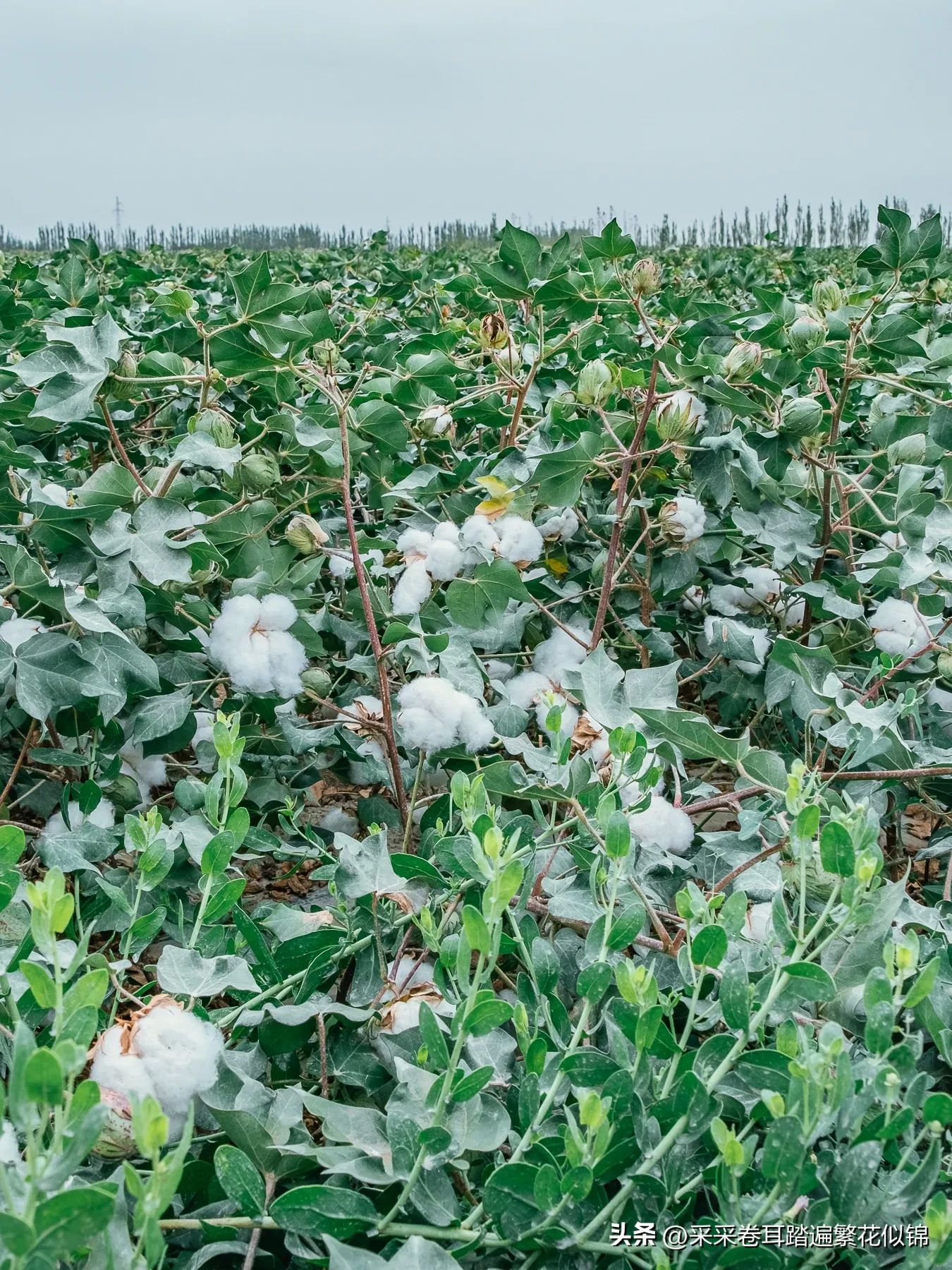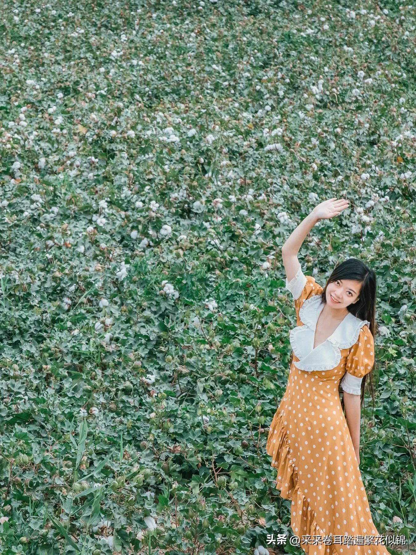 新疆棉绒长、产量高、品质好,夏天还是一道独特风景线。过去见过各种各样的花海,但我们从大峡谷到罗布人村寨的路上,还是第一次见到棉花花海。这一带花田多、规模大,适合拍照。