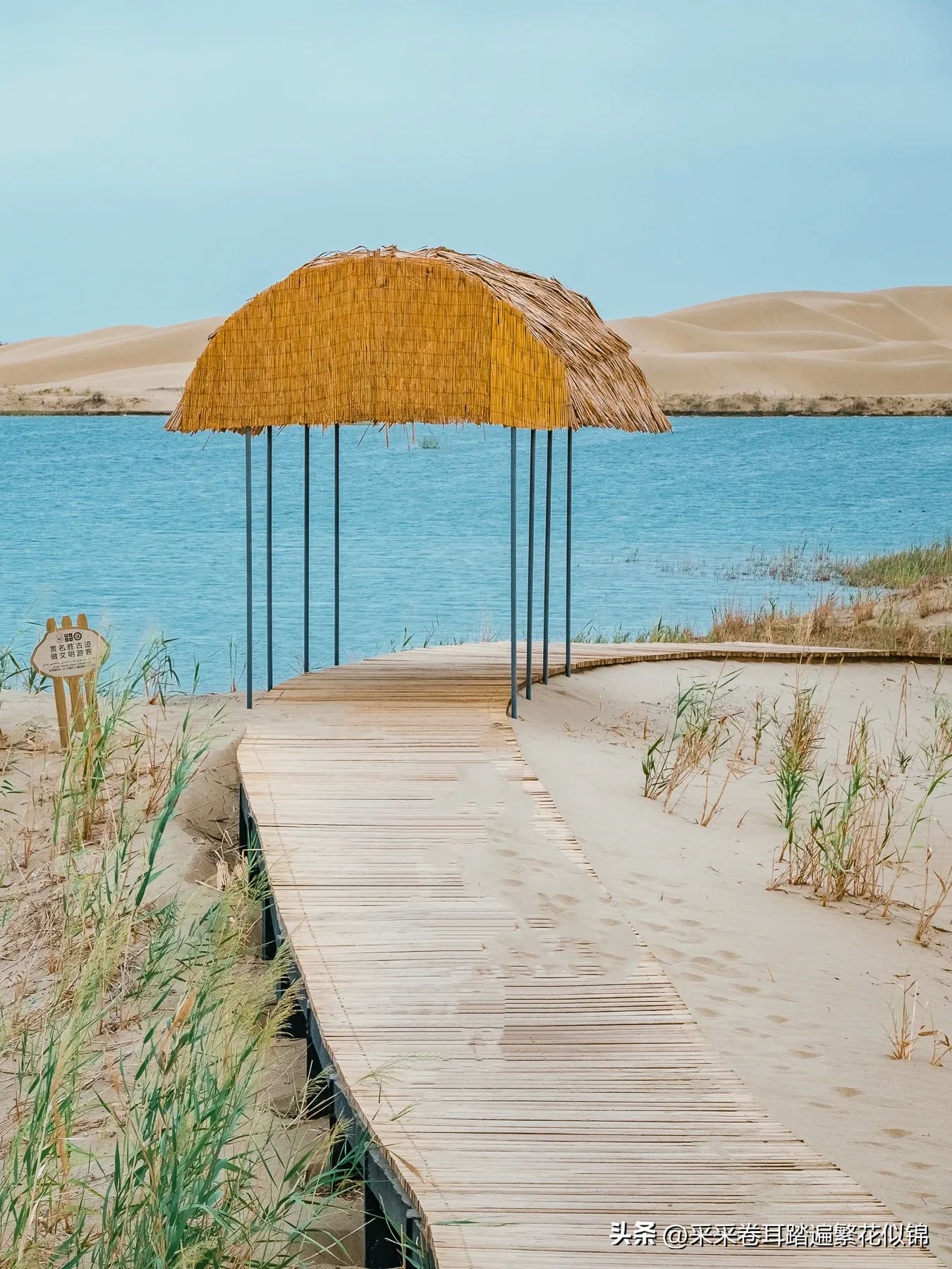这里最惊艳的季节是胡杨树满目金黄的秋天,但夏天依然有看点。花15元购买交通车票往返神女湖片区。这个被沙漠环抱的小湖在夏季是蓝色的;沙丘上苇草是绿色的;走在沙漠上的临湖栈道是惬意的;留在记忆里的感受是值得的。