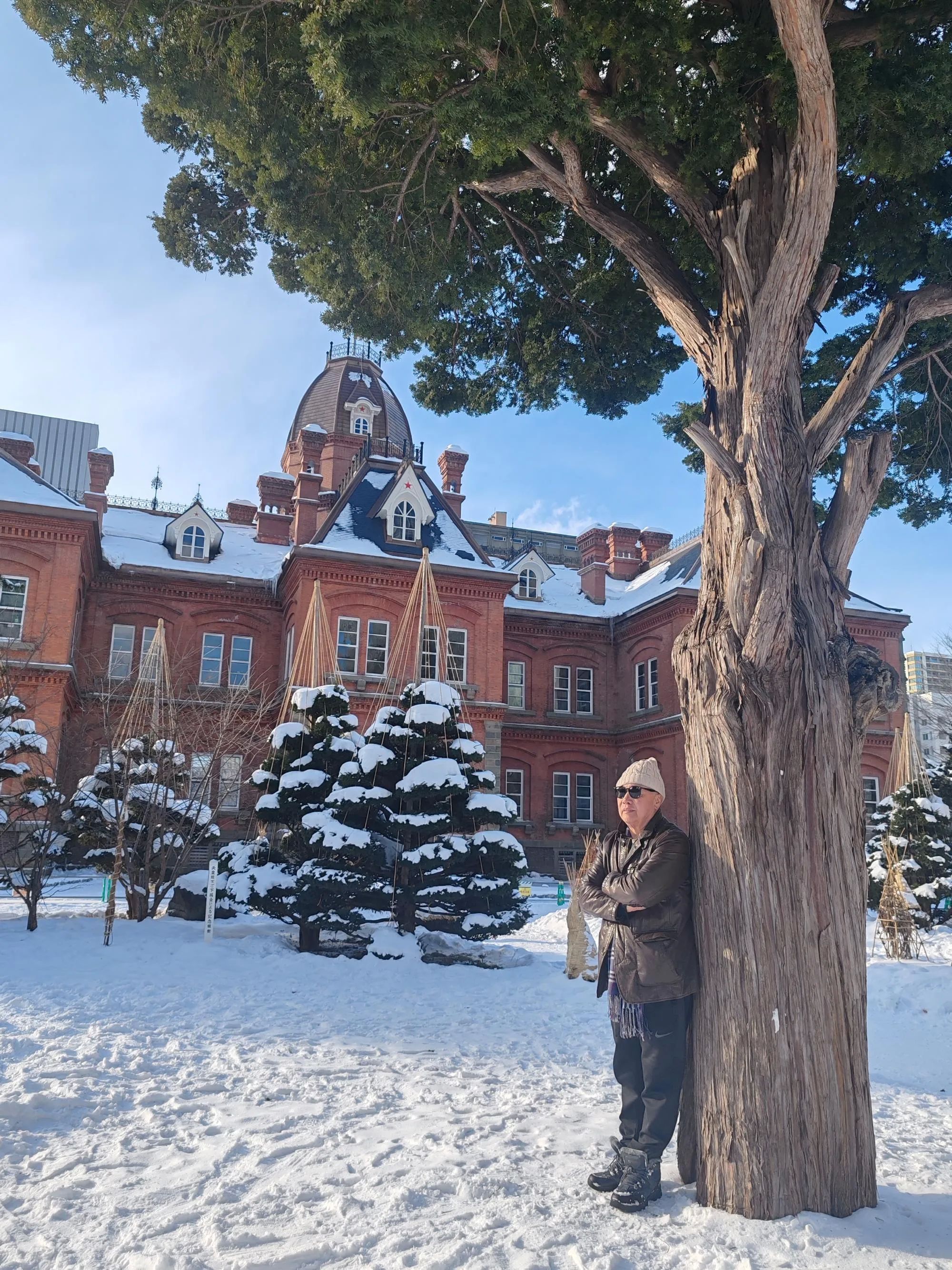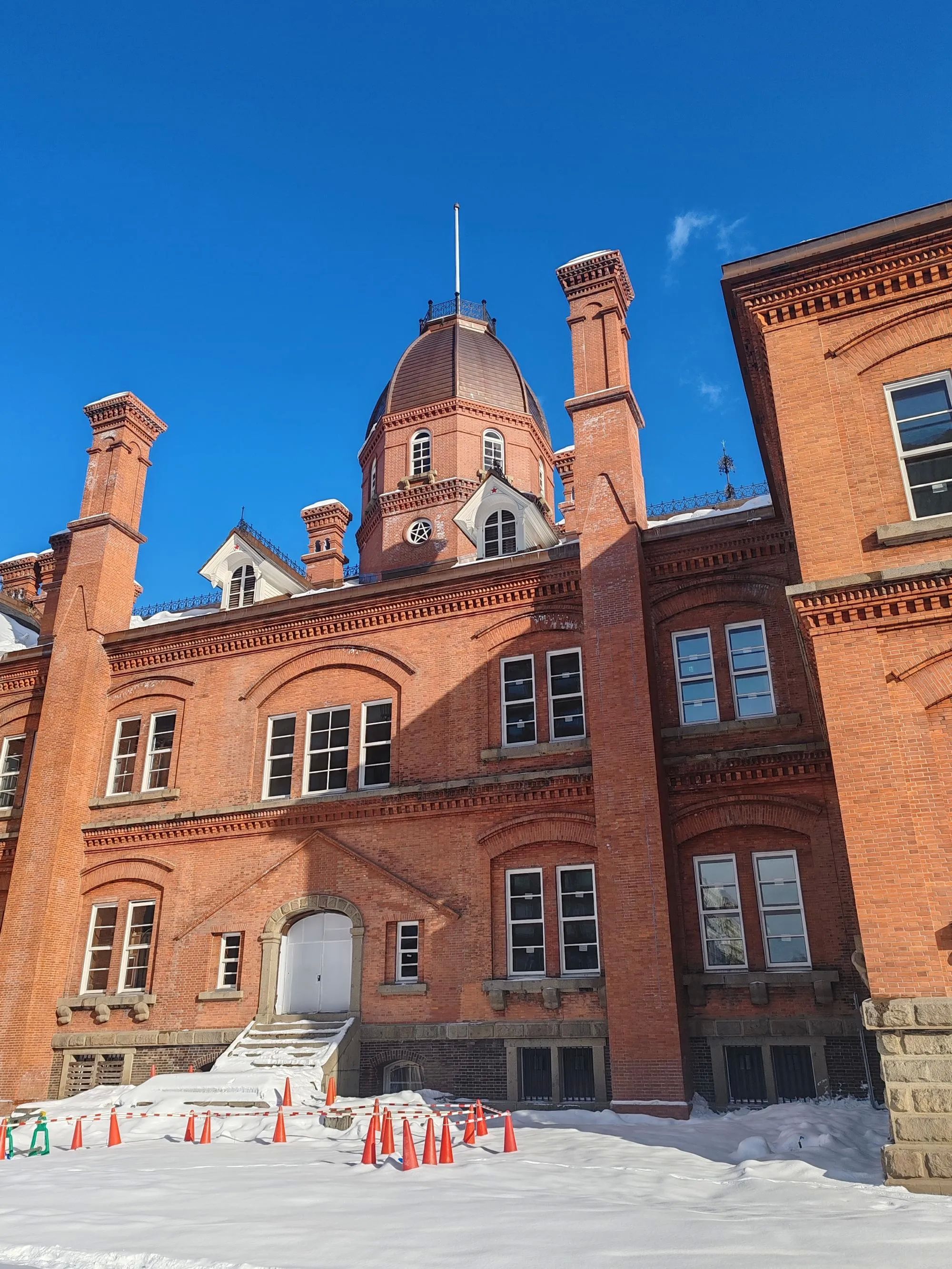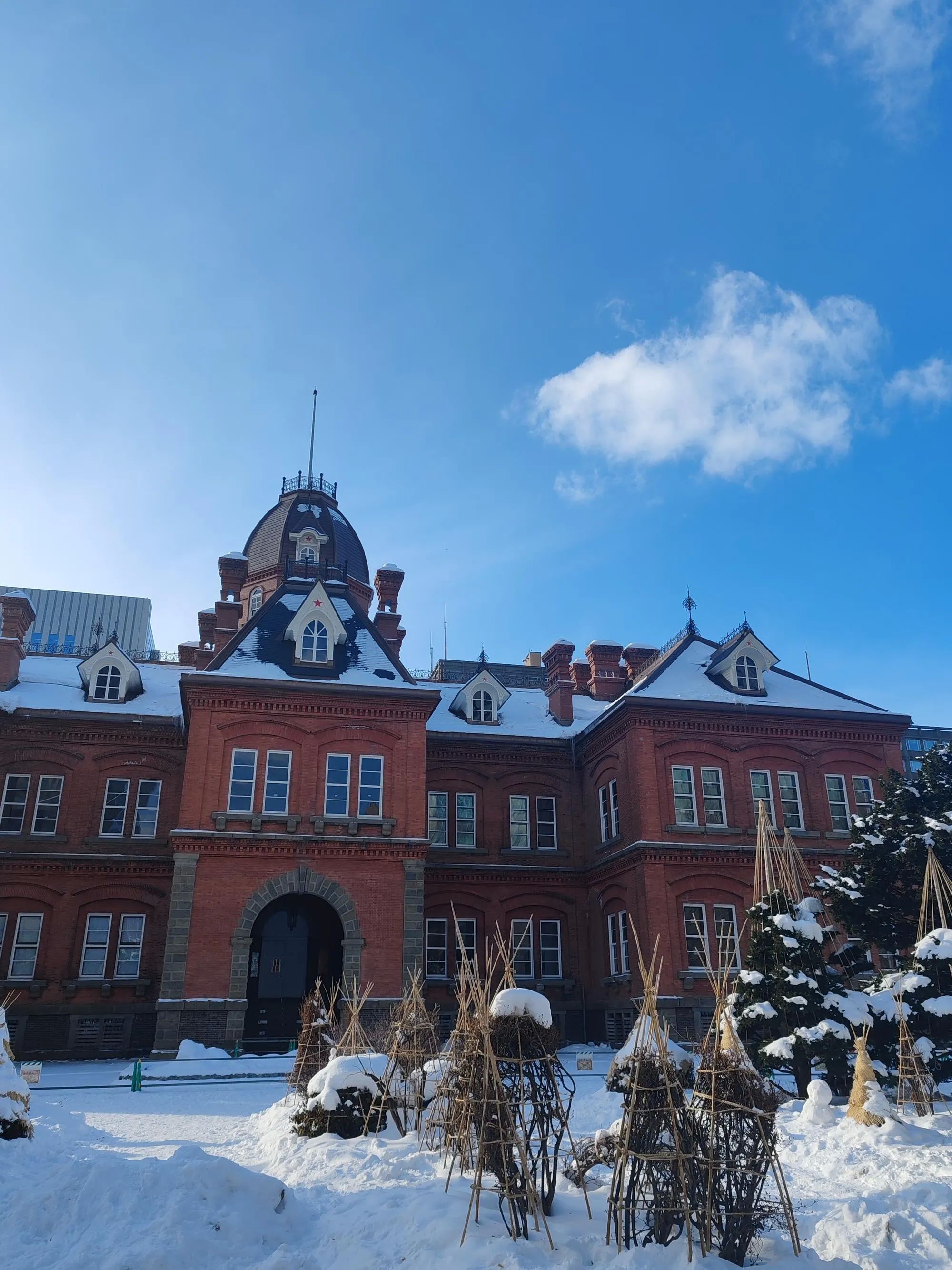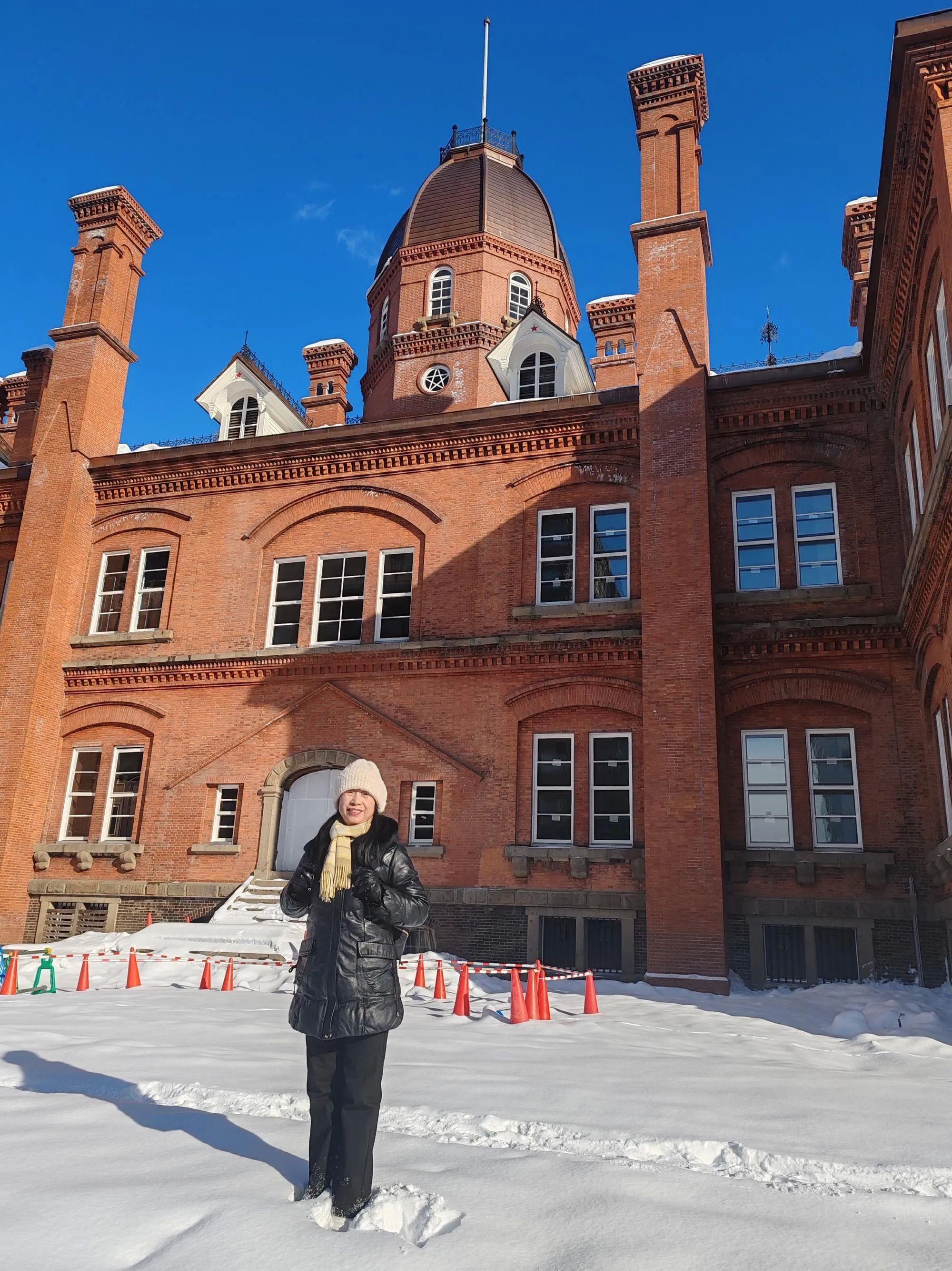 我们先来到札幌的地标之一,北海道厅旧本厅舍。北海道厅旧本厅舍位于北海道首府札幌市市中心,因为整座建筑全部采用红砖建造而成,所以又常被人们称为红砖房。它建成于明治21年(1888年),作为北海道厅的本厅(也就是北海道政府机关)共使用了80年,被列为日本重要的保护文物。这是是一座新巴洛克风格的欧式砖造建筑物,其砖、木材等许多建材都取自北海道本府。整栋建筑共有三层,其中地上两层、地下一层。现在改为图书资料馆。收藏了很多关北海道历史发展的文物及资料,设有「北海道图书馆」和「北海道历史画廊」,展示了北海道各个方面的历史发展过程和文化生活等资料。游客可免费进入红砖馆参观。遗憾的是,这座建筑正在全面装修。但不影响自由行小组的女士们拍照,一呆就是小半天。