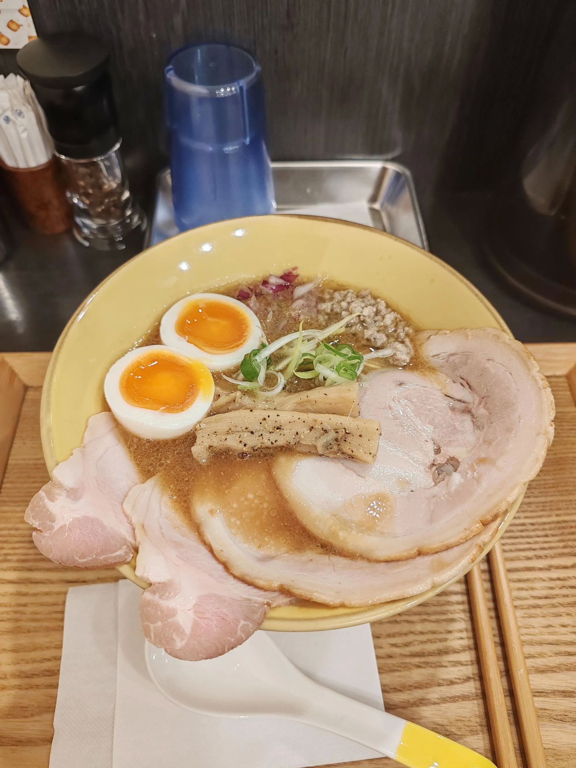 我选的是一家札幌拉面店。札幌拉面是发祥于北海道札幌市的一种日本拉面。在日本各地都很有名。与喜多方拉面、博多拉面并列为日本三大拉面。以味噌口味为特征。所谓味噌就是用黄豆发酵做成的一种酱料。味噌汤底味道浓郁,面条劲道十足,咬起来富有弹性,爽口弹牙。缺点就是齁咸。老卢有生以来还没喝过如此齁咸的汤底。这家拉面店的用餐环境也很特别,一人一位,彼此用隔板隔开。互不见面,各安清净。女士们选了一家日式风味的套餐。少不了生鱼片、寿司之类的配置。