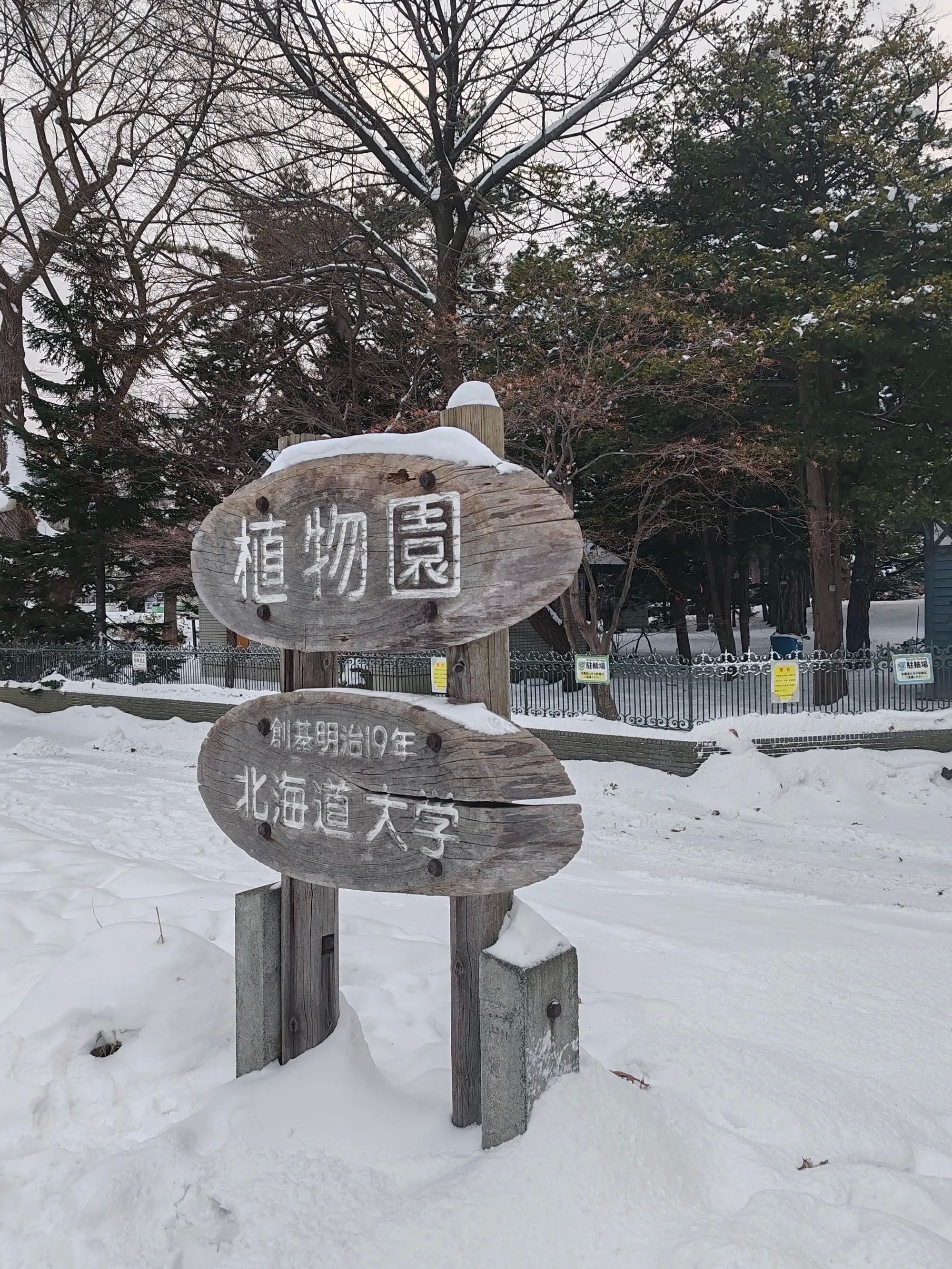 我们又步行来到了北海道大学的植物园,没曾想这座园林冬天是不开放的。我们只好拍了几个外景 ,证明到此一游。