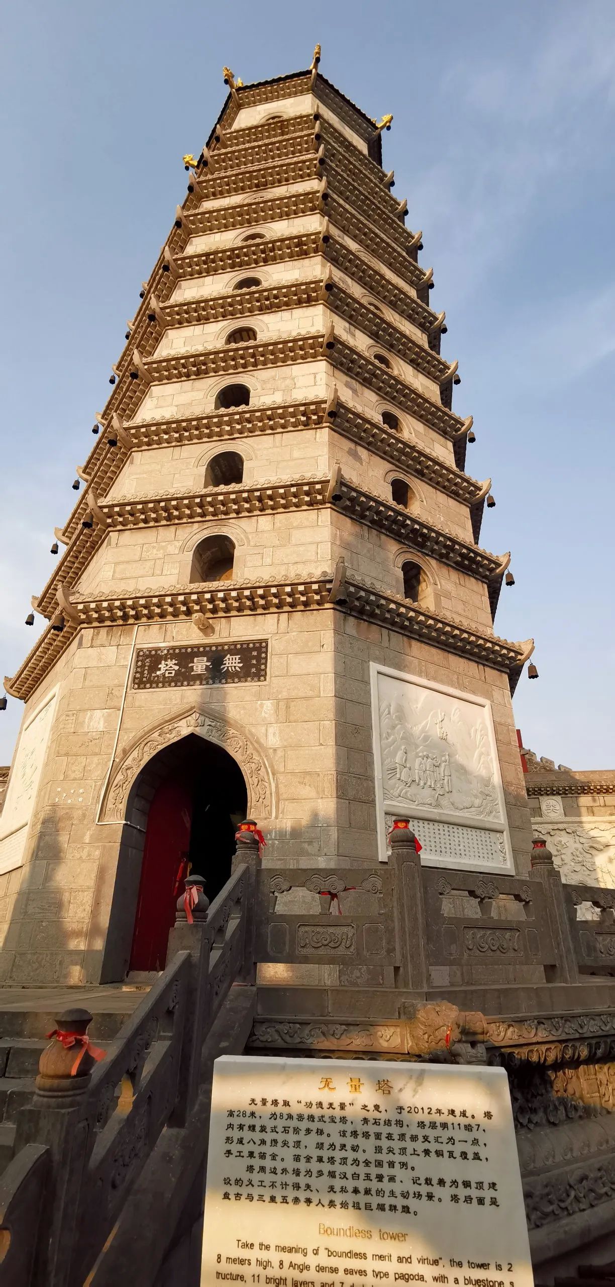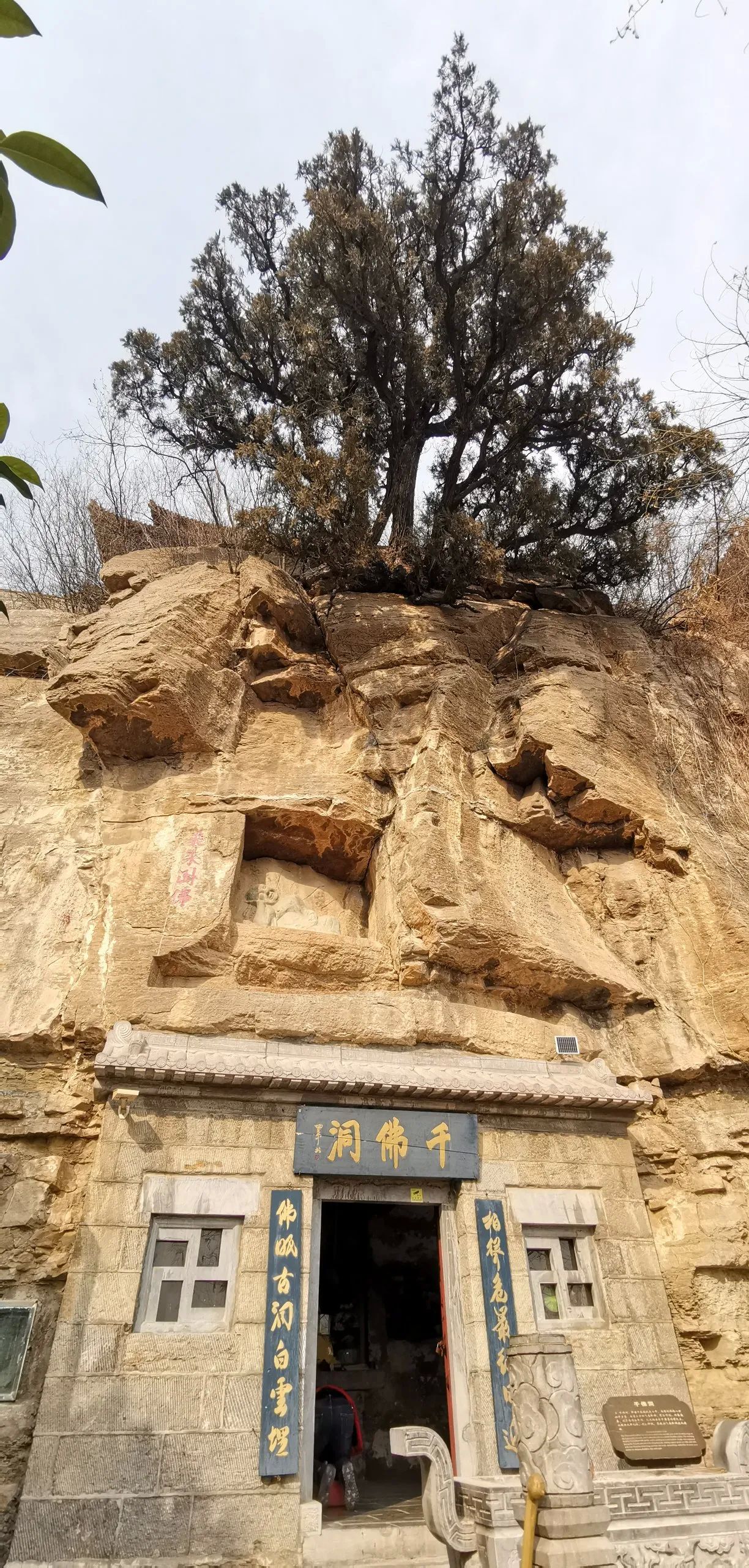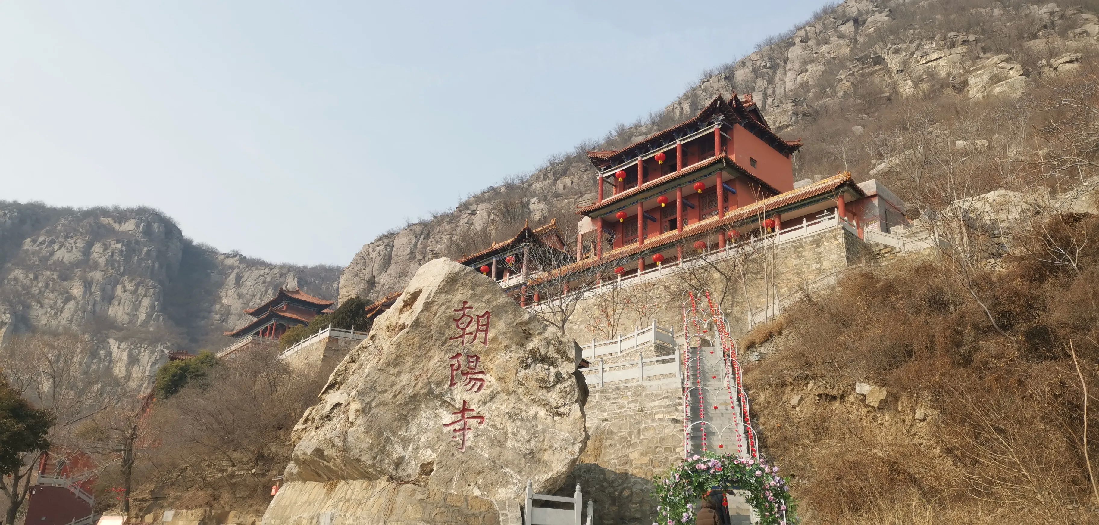 2.朝阳山景区不用坐内部公交,步行不远即到朝阳寺,均是仿古建筑。春节期间抖音早鸟票9.9元,现场27元。这个景区每月的农历初一、十五是免门票的,但是遇上节假日不免。个人认为的两大亮点:一是摩崖石刻“佛”字高33米,宽22米,号称全国最大的单体佛字。如果来这个景区,建议一定前去手摸佛字,意寓抱佛脚。二是千佛洞,门上面卧佛为清代文物,洞顶有九爪槐守护着洞体。