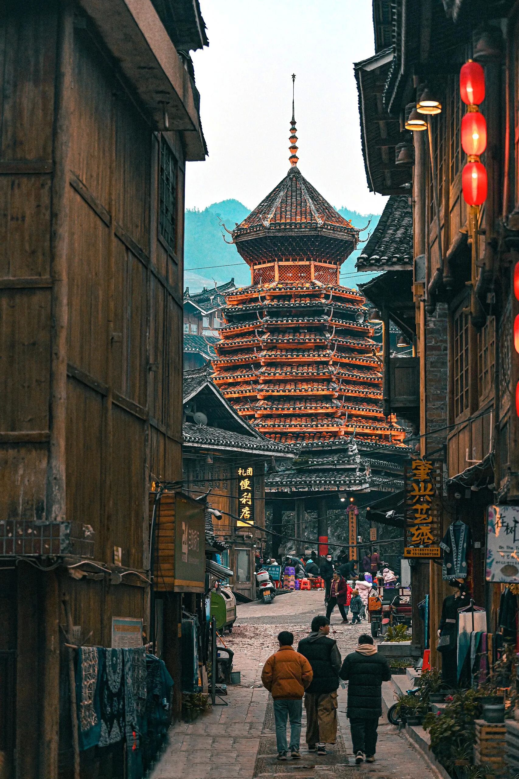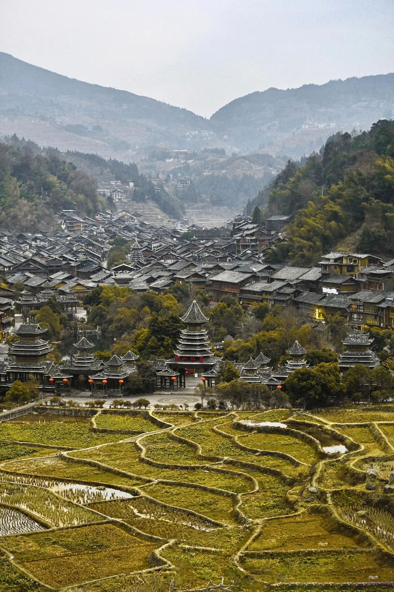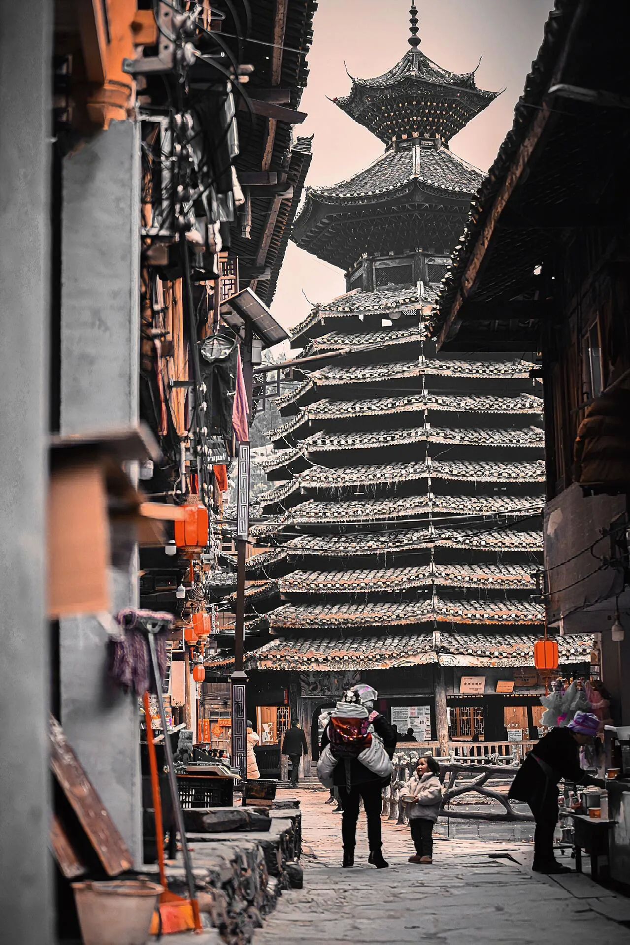 比肇兴侗寨更为小众,几乎原生态未开发。标志性的楼十分出片,还能看到小朋友们欢快地斗鸡嬉戏。