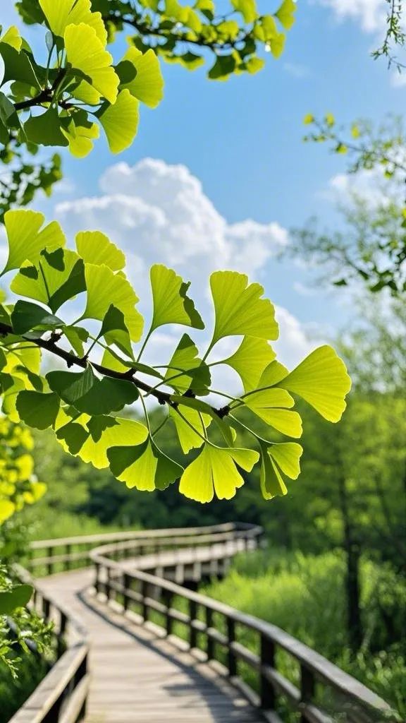 十里古银杏树刚抽新芽,翠绿嫩黄如打翻调色盘,