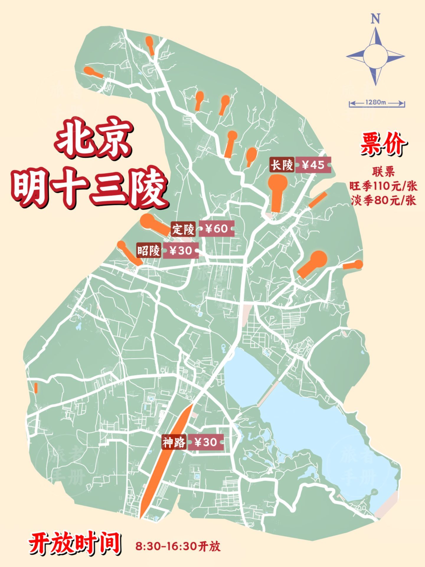 一篇看清楚明十三陵游览路线,开放时间及票价、交通路线、洗手间位置、服务指南,喜欢影像版地图的看图6哦!