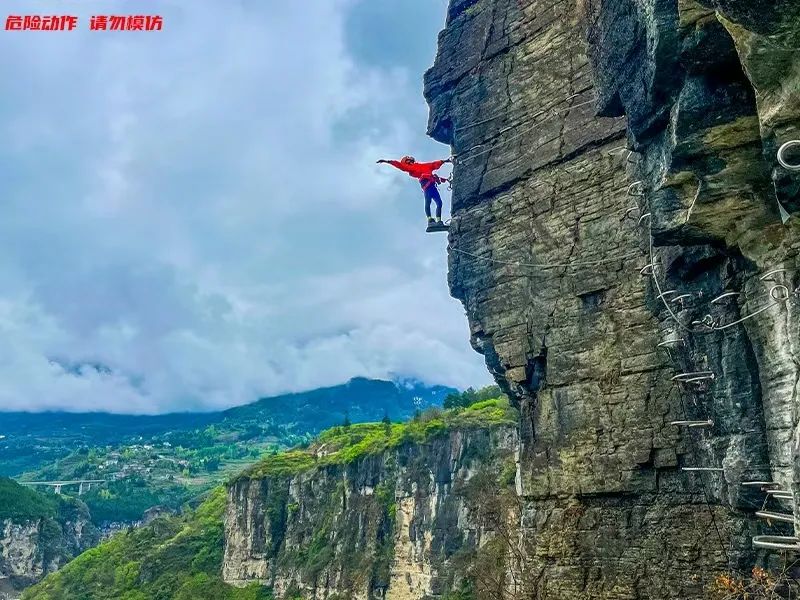 来到金佛山,一定不能错过飞拉达项目,特别是天梯飞侠线,简直是勇敢者的游戏!飞拉达就是在山面上建设由铁扶手横梯、固定缆索、岩石塞、踏脚垫等构成的爬山径道,就算你没有攀岩基础,也能体验飞 “岩” 走壁的乐趣。
