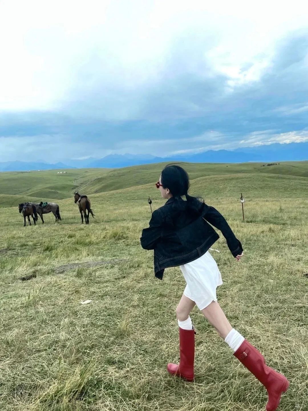 在琼库什台骑马拍照,瞬间拉长小腿线条。选带拉链的款式,穿脱超方便,还能防蚊防牛粪。
