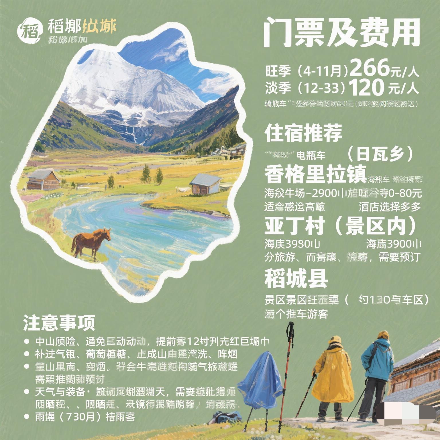 稻城亚丁的风景绝美但条件艰苦,提前做好规划和心理准备,才能更好地享受这片“蓝色星球上的最后净土”。如果有更多具体问题(如徒步细节、住宿推荐),欢迎随时提问!