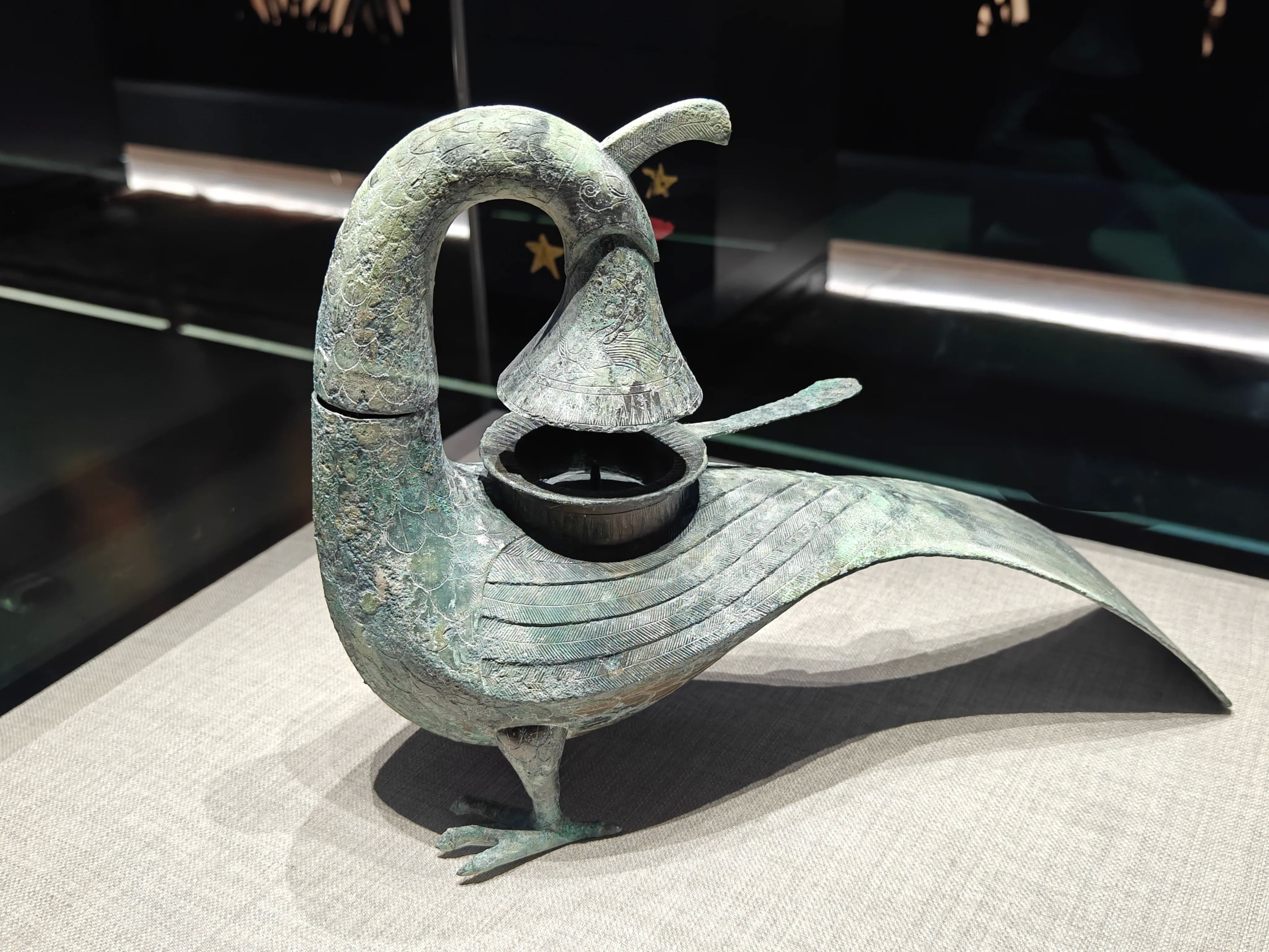 图1. 汉代的青铜孔雀灯。是个旧博物馆的镇馆之宝。