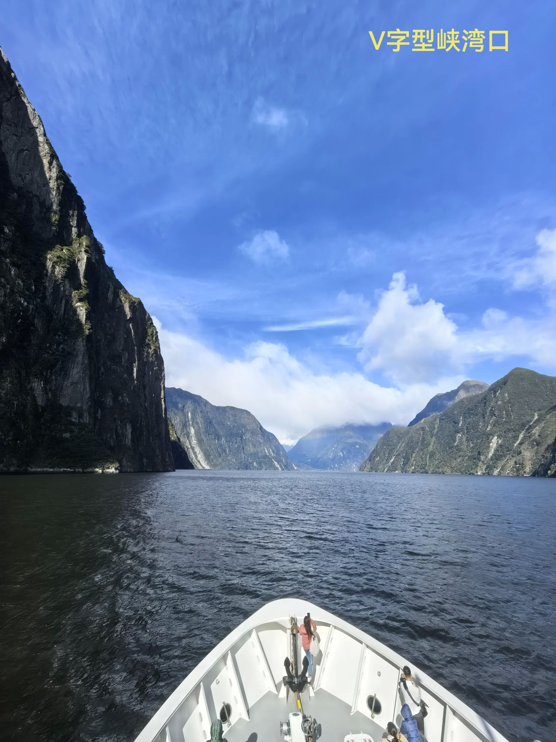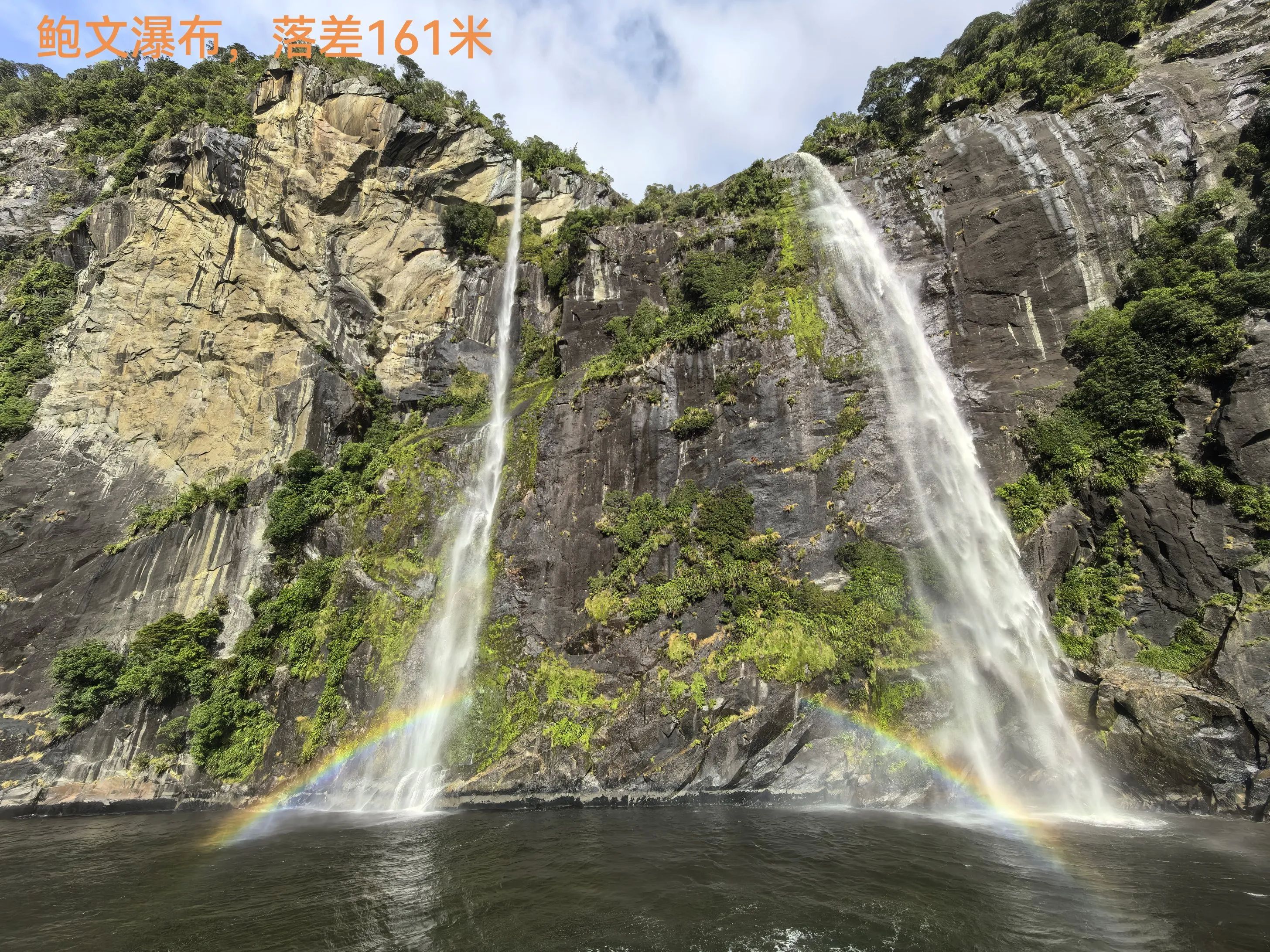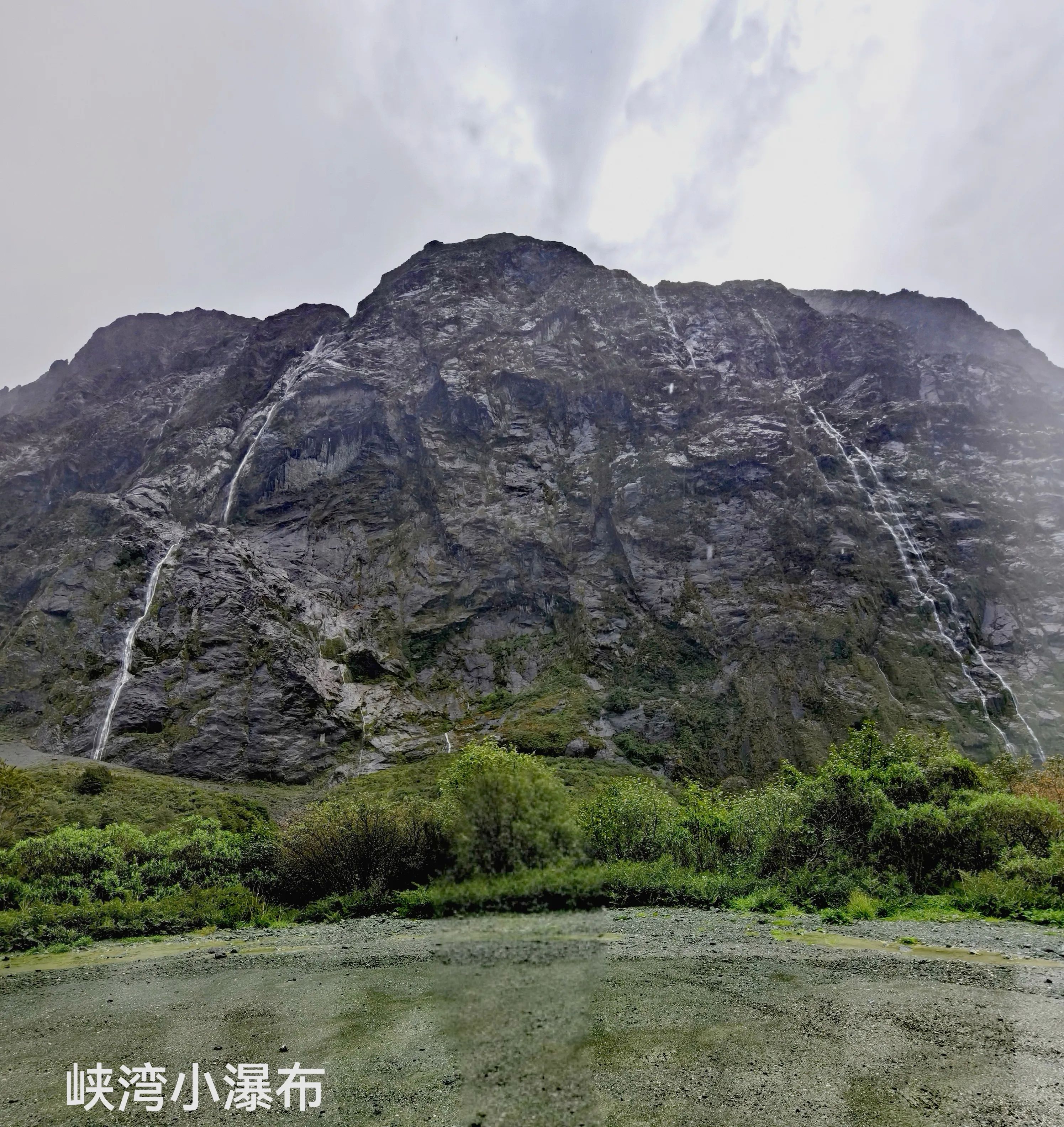 米尔福德峡湾形成于200万年前的冰河时期。冰川移动磨蚀山体形成V字型峡谷,塔斯曼海水倒灌22公里,峡湾最深处达500米。游船行驶到峡湾口时,我们看到远处的塔斯曼海上,暴雨如注,第一次看到如此壮观的场景。