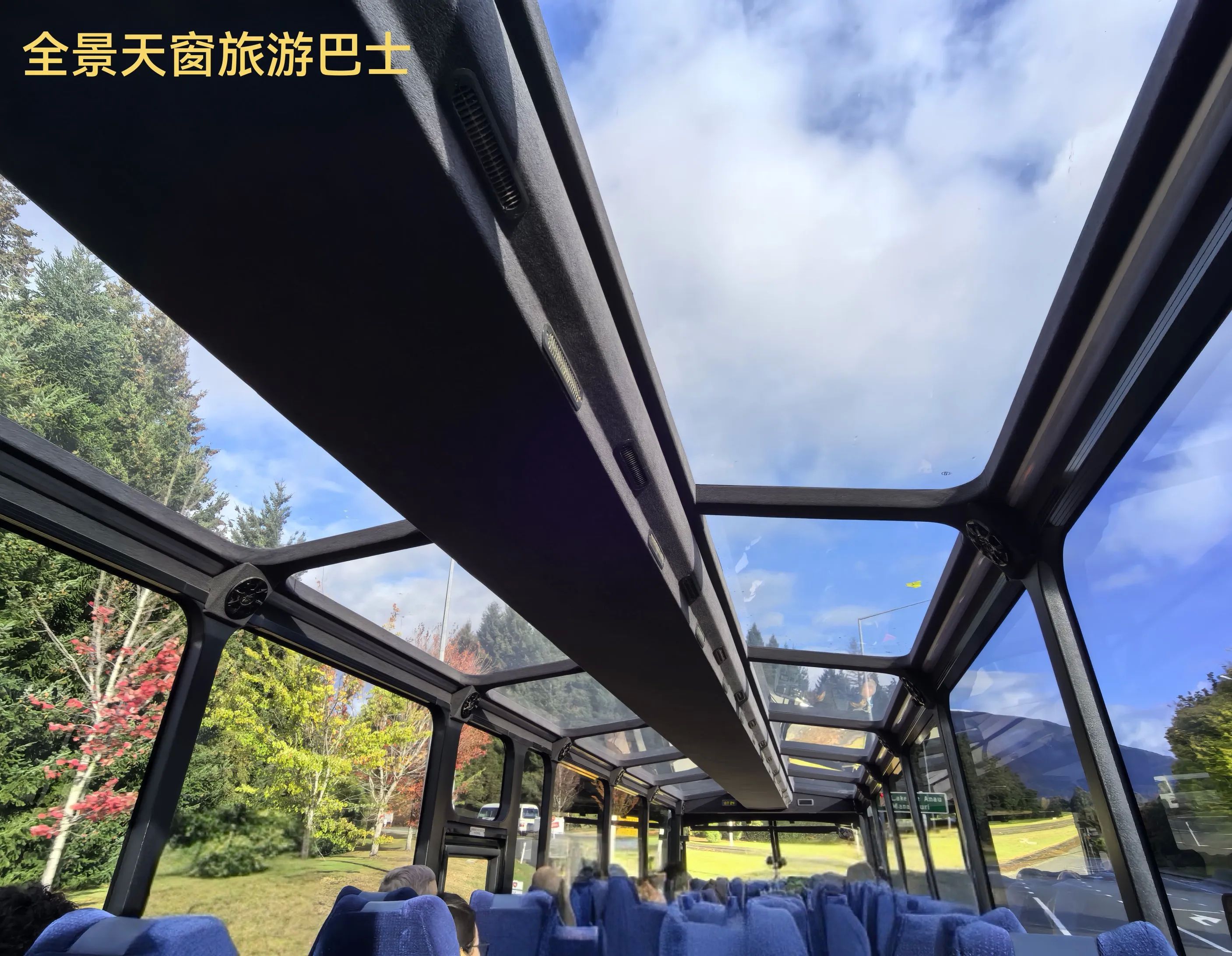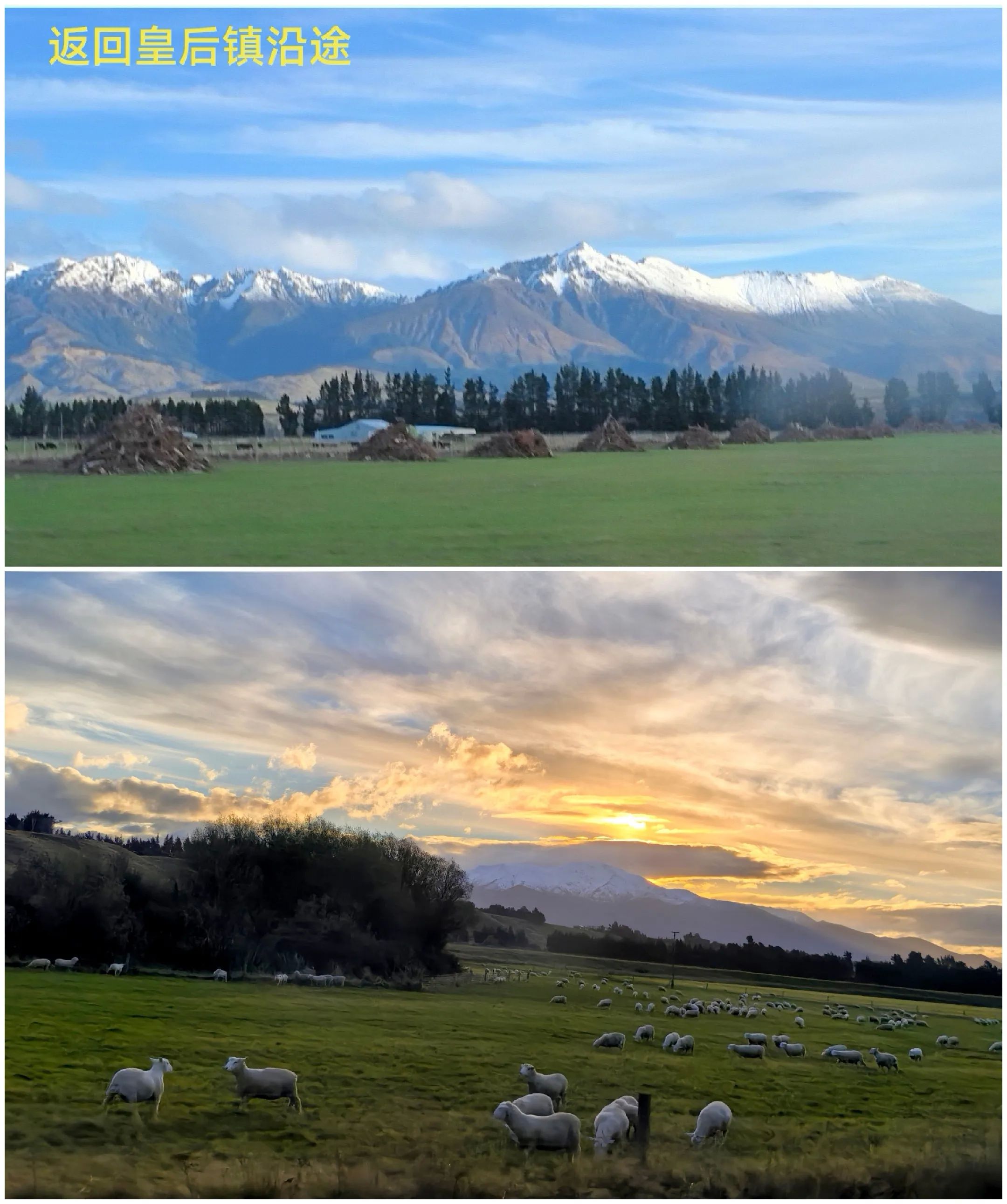 在海上游历了大约两个小时后,下船继续乘坐大巴返回皇后镇。这时天已经完全放晴,坐在全景天窗巴士里,仿佛在水粉画中穿行。夕阳西下,美景无限。