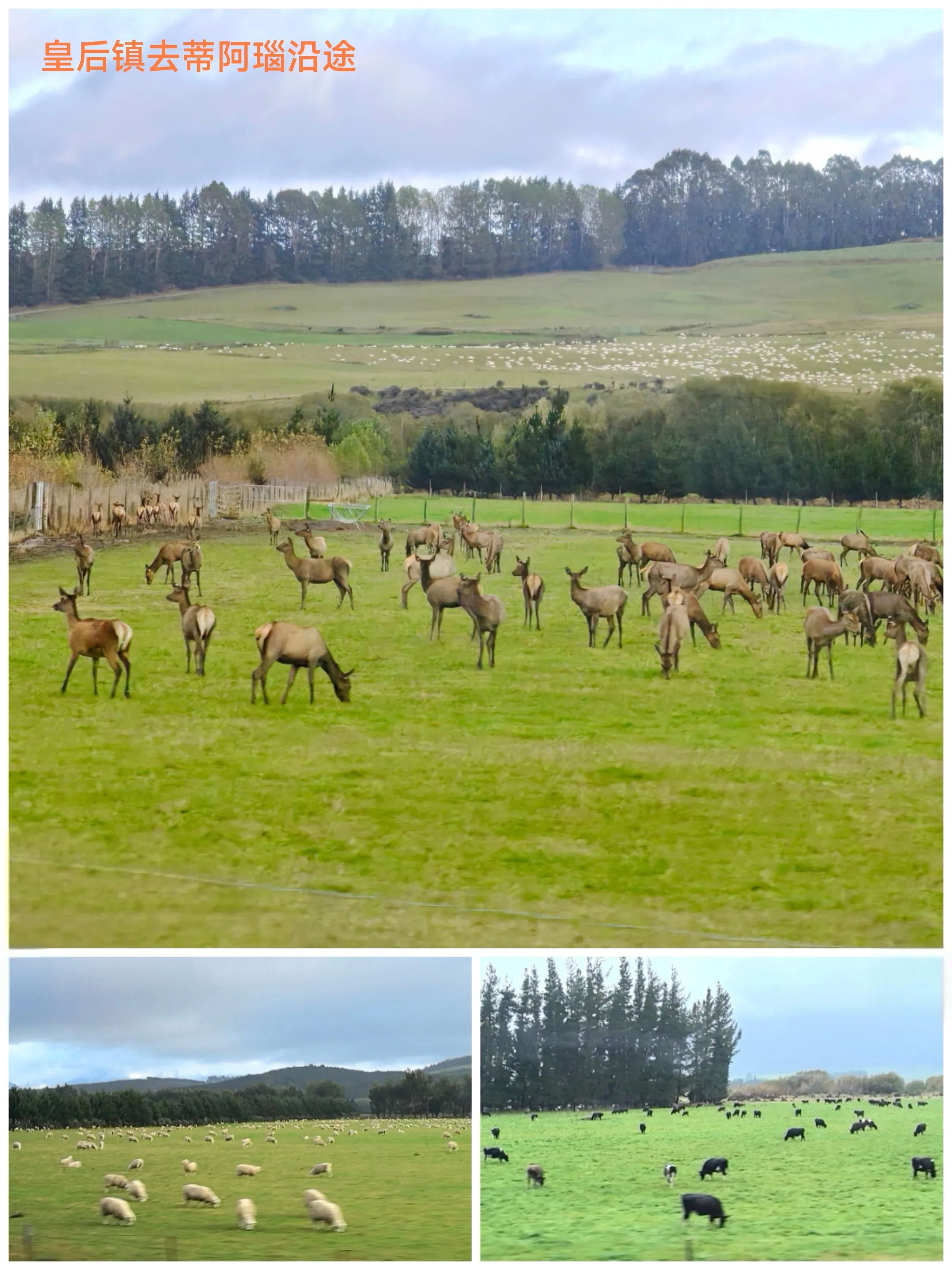 从皇后镇搭乘观光巴士前往米尔福德峡湾,往返需要12个小时。虽说很辛苦,不过沿途的风景很不错。一望无际的草原上,牛羊在悠闲地吃着早餐,甚至还有鹿群。连绵起伏的雪山,和新疆的风景有些相似。