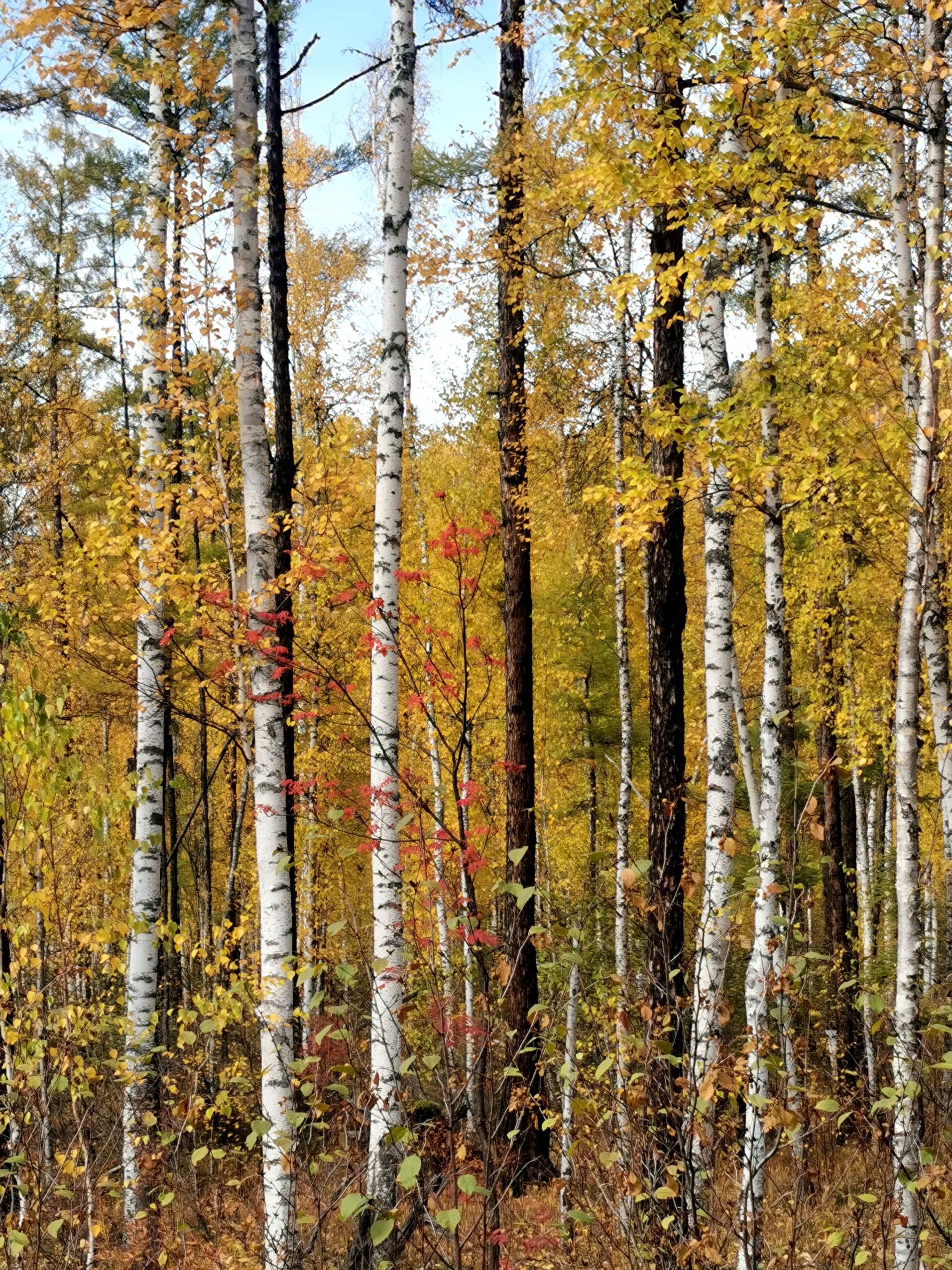 以上三天都是穿行在大兴安岭林区,是珍珠白的笔直树干的白桦林和黑色高大挺拔的落叶松,入秋后叶子是深深浅浅的金黄,一望无际,穿行其中感受到的是原始森林的浩瀚,空气中是清新的大自然的味道,莫尔道嘎到满归,路况好车辆极少,景色非常美。但是这一大段路途几乎没有手机信号,也没有加油站,没有食物补给的地方,一定要提前加满油箱,车上带热水和食品。