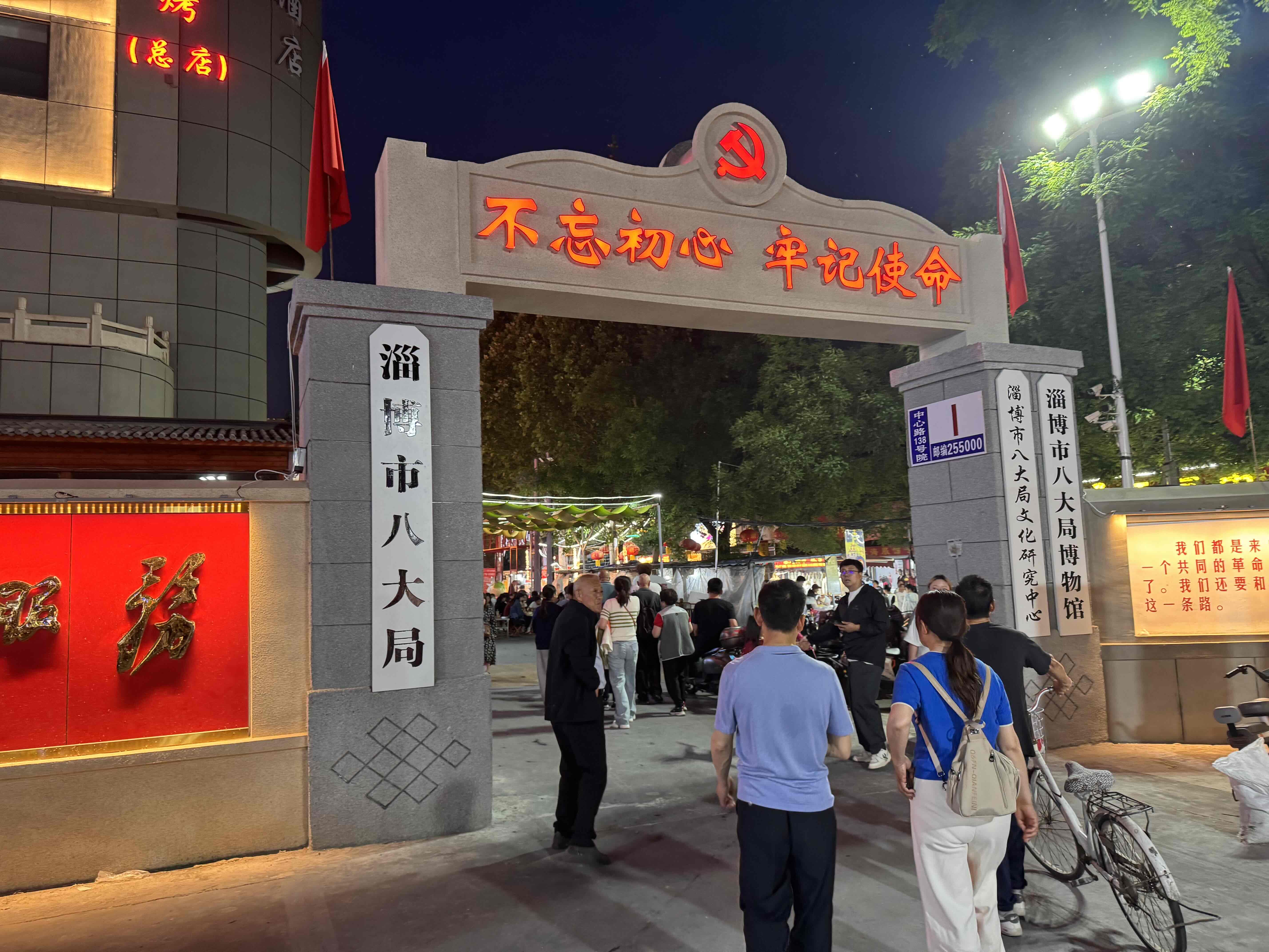 淄博八大局便民市场:八大局是淄博便民农贸市场,里面有炒锅饼、紫米饼、蛋烘糕、奶棒、炸酥肉等众多特色美食,以质朴的市井气息、亲民的消费,成为很多外地大学生的首选,后借助淄博烧烤的热度吸引了大量游客,成为淄博顶流IP 。