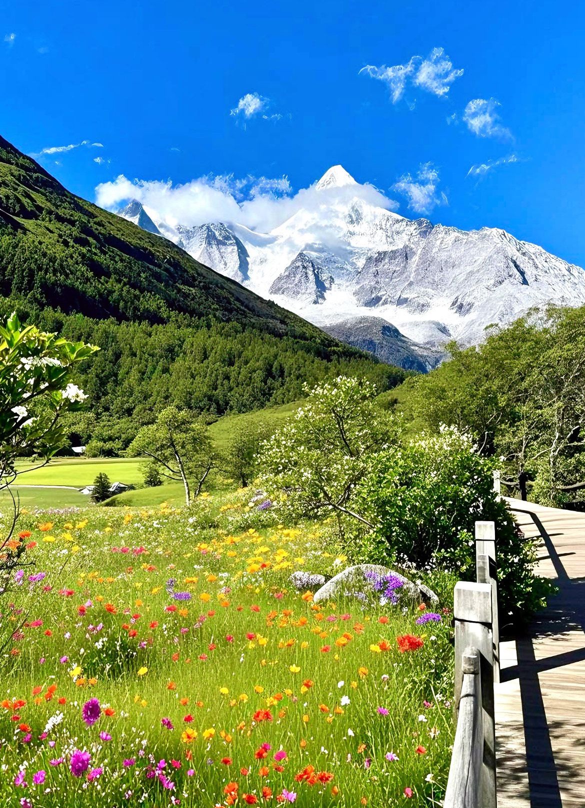 2.四姑娘山:夏天的四姑娘山封神!20度徒步天堂!连绵的雪山、茂密的森林、澄澈的湖泊,宛如人间仙境。