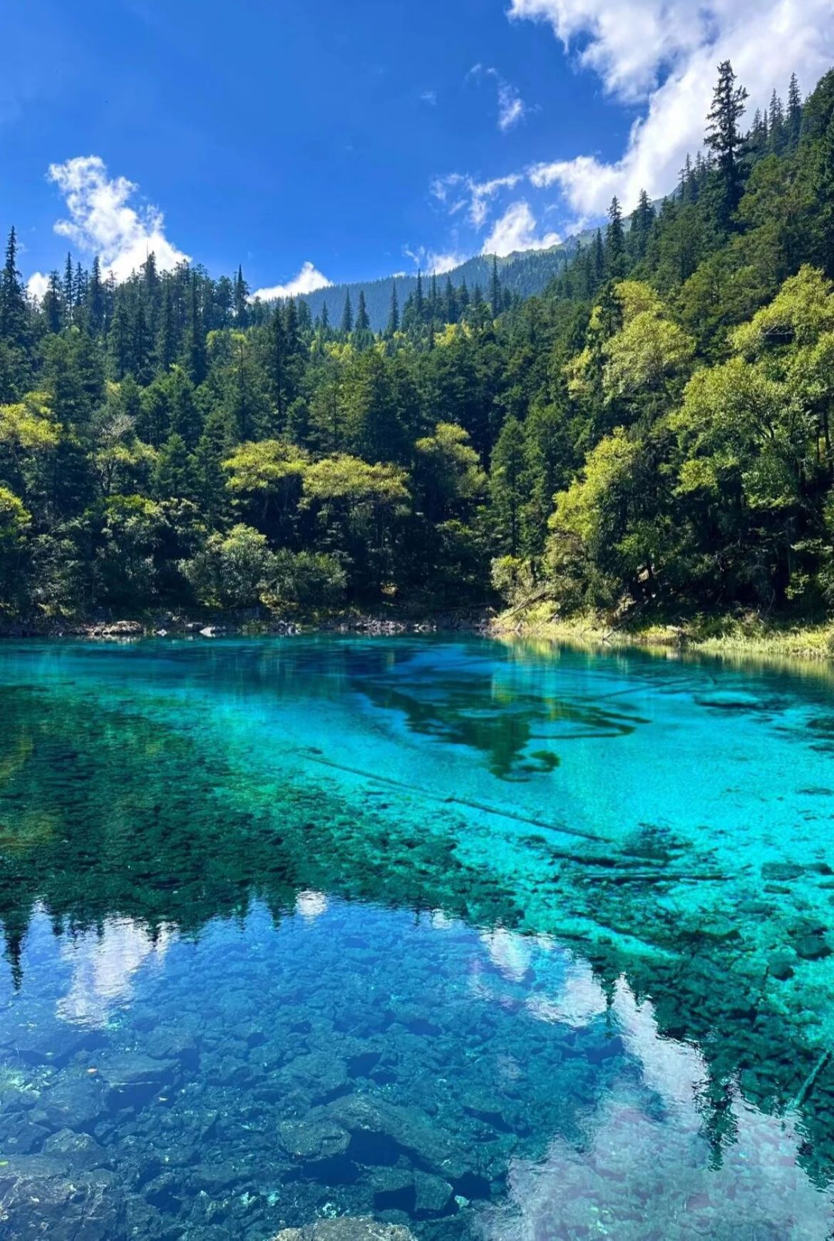 4. 九寨沟:夏天的九寨沟简直是自带空调的「人间蓝眼泪」,25℃的清凉+美到失语的仙境。