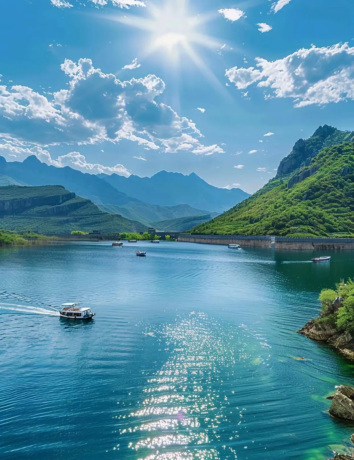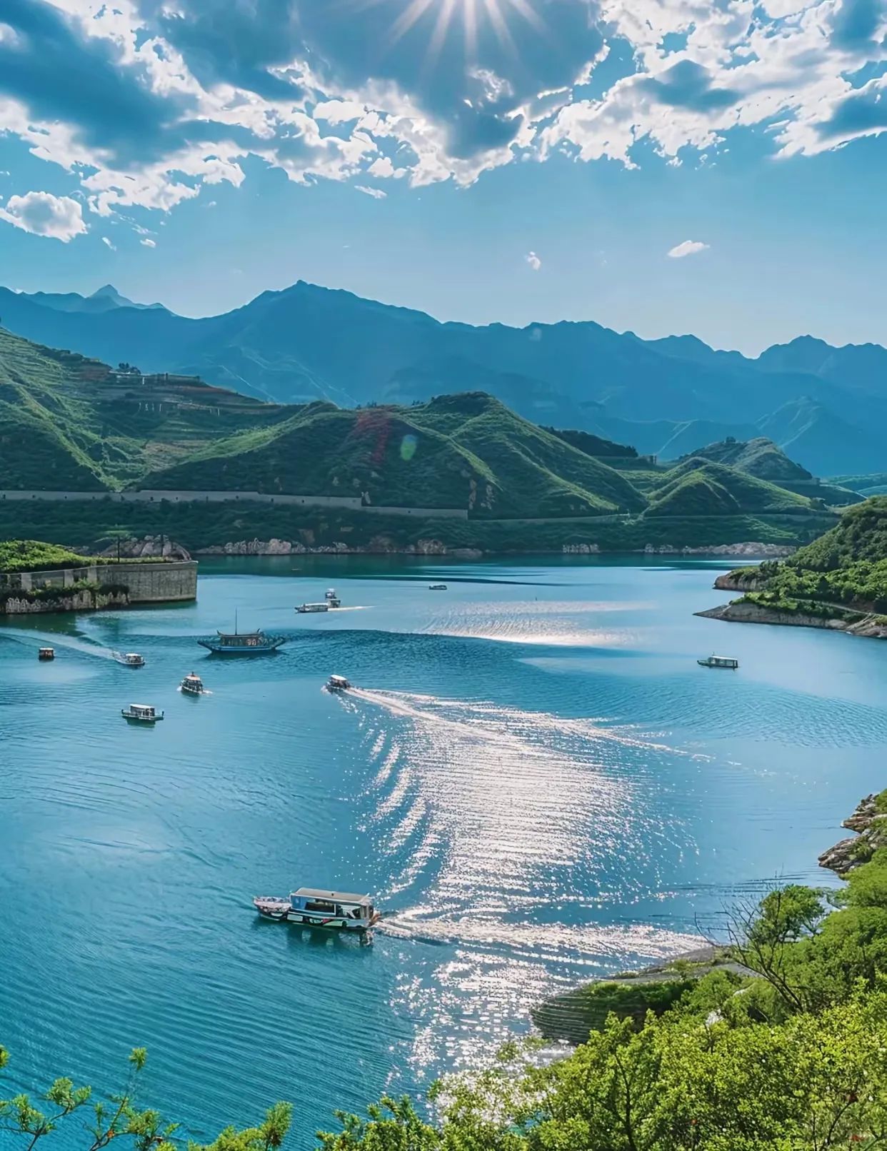 4. **游船观光:** 乘双层游轮或快艇环湖,沉浸式感受“北方小桂林”的山水画卷。