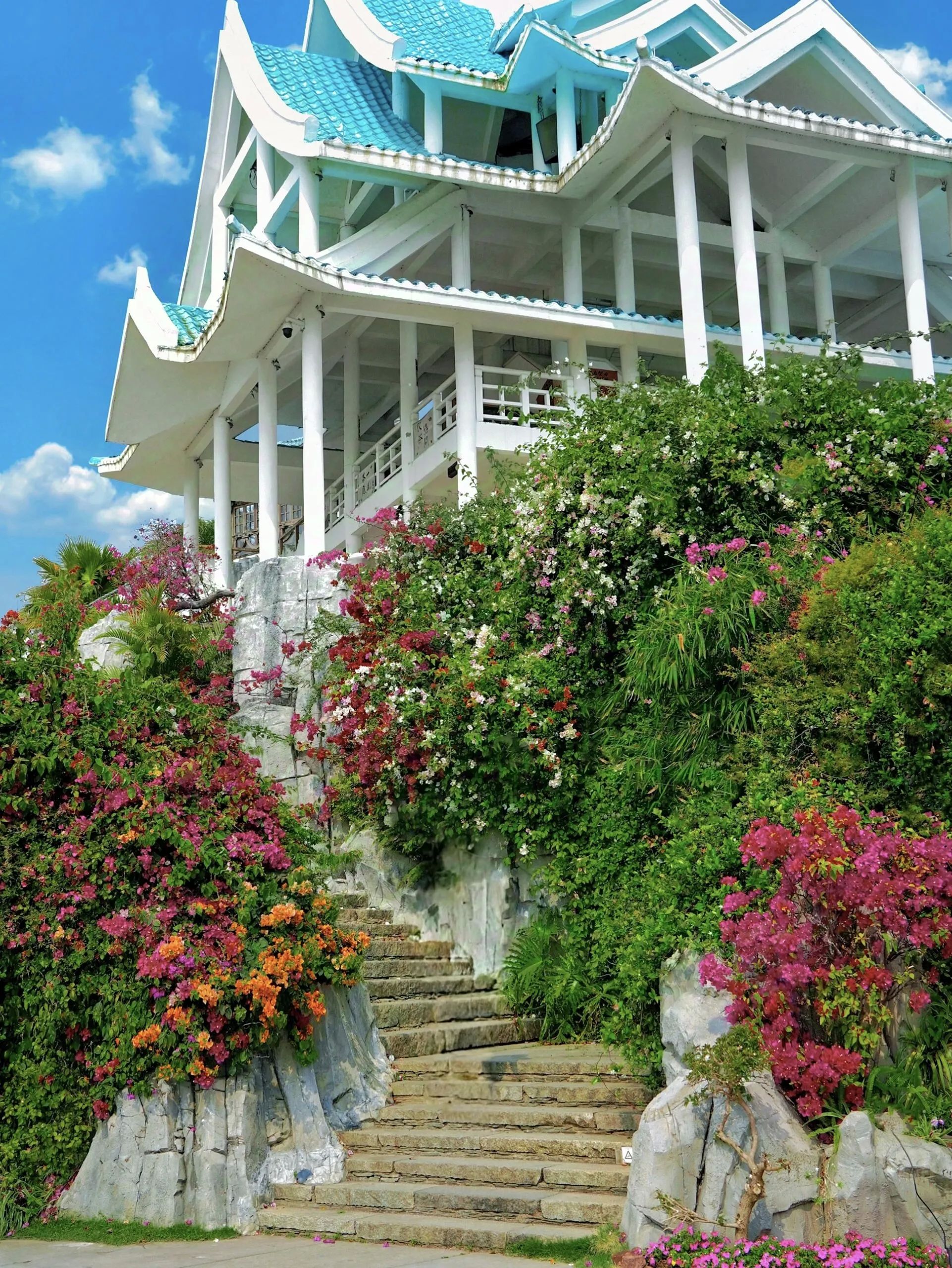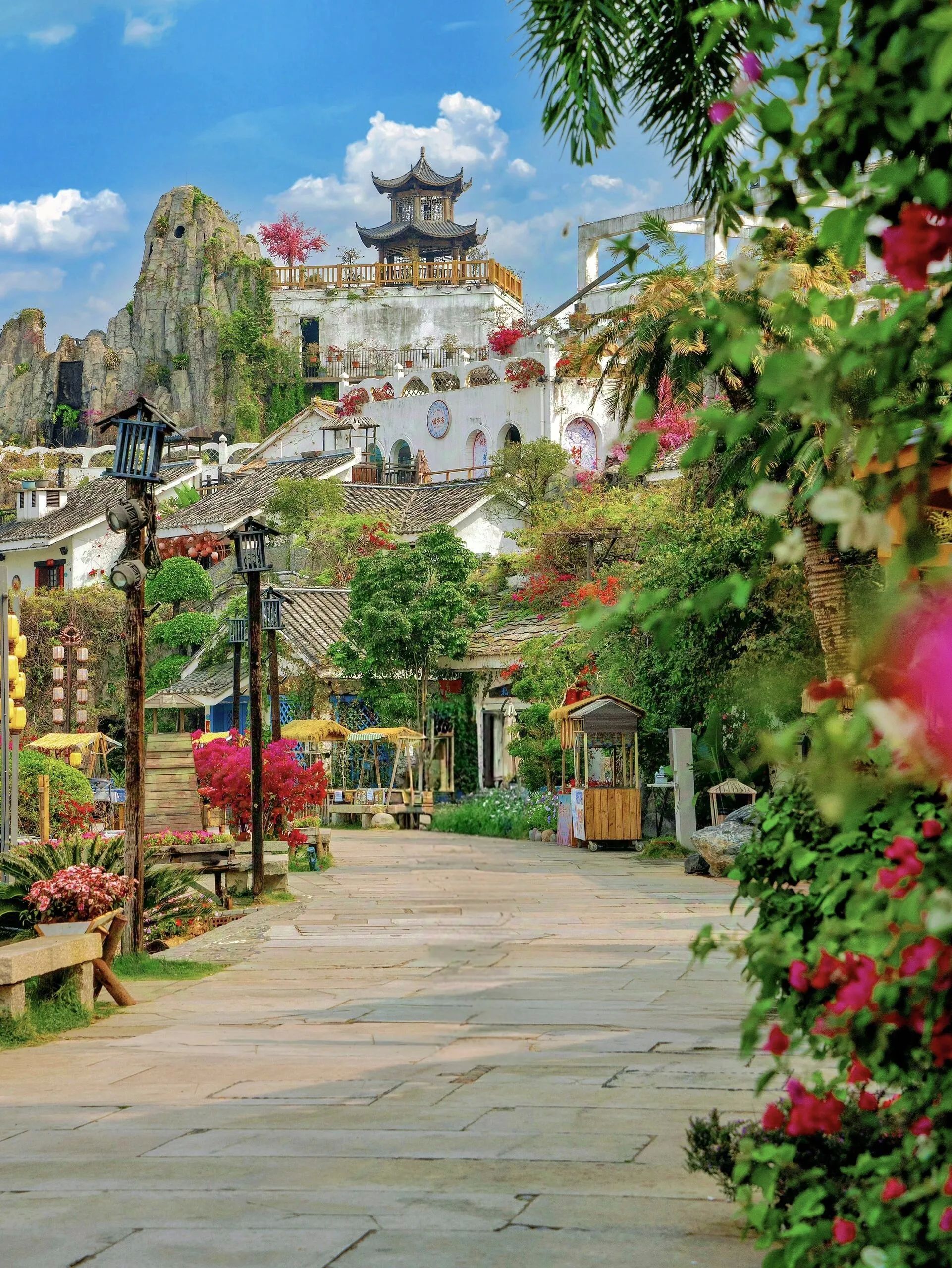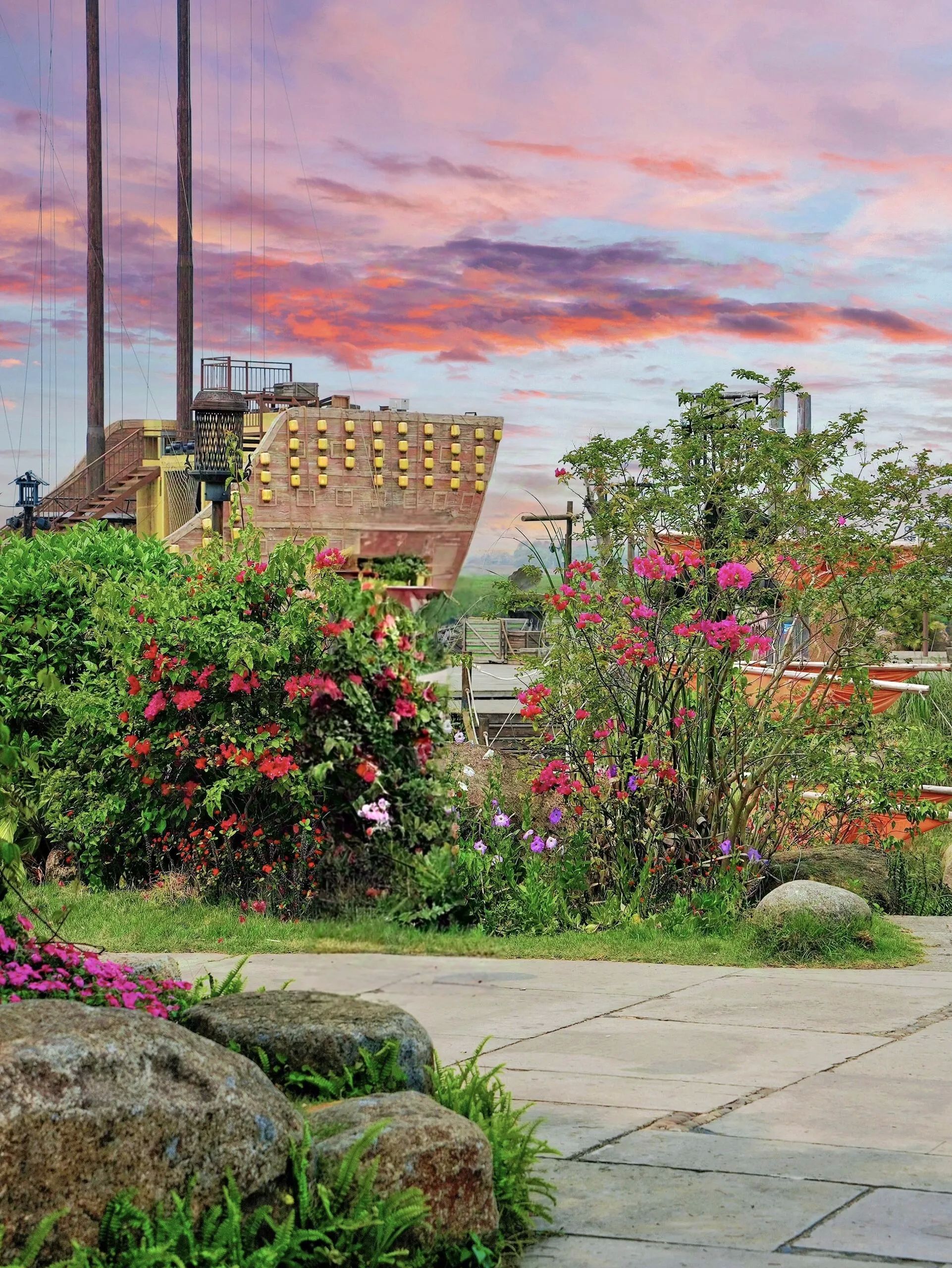超大超震撼的轮船形状大楼,共有五层楼,每一层都布置了五颜六色的鲜花,真的超适合打卡