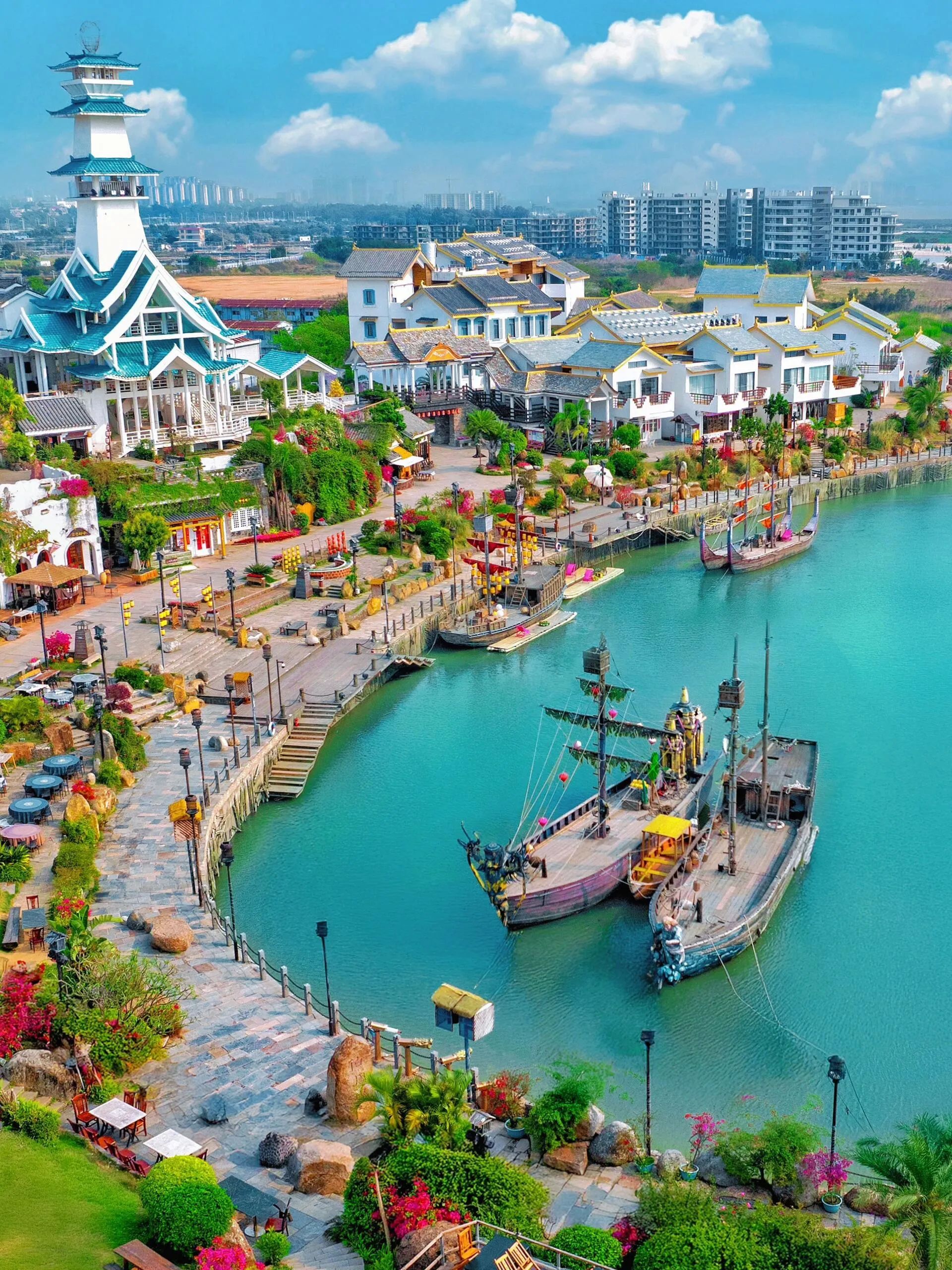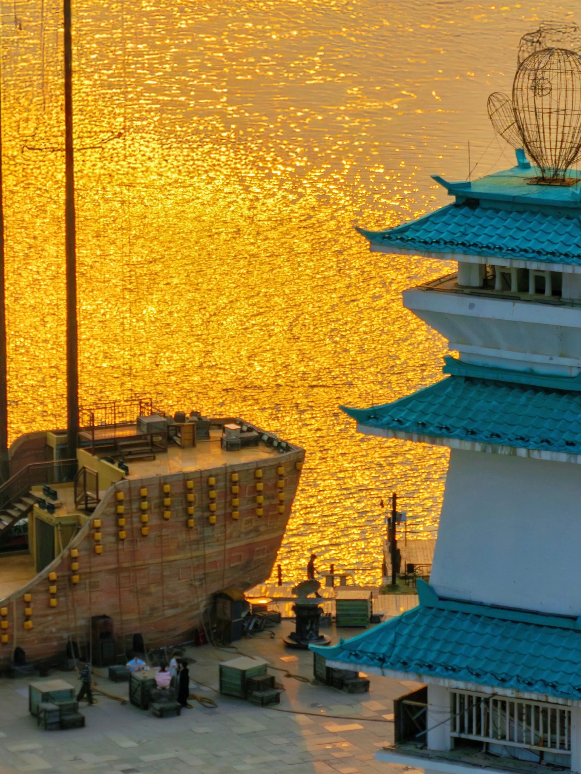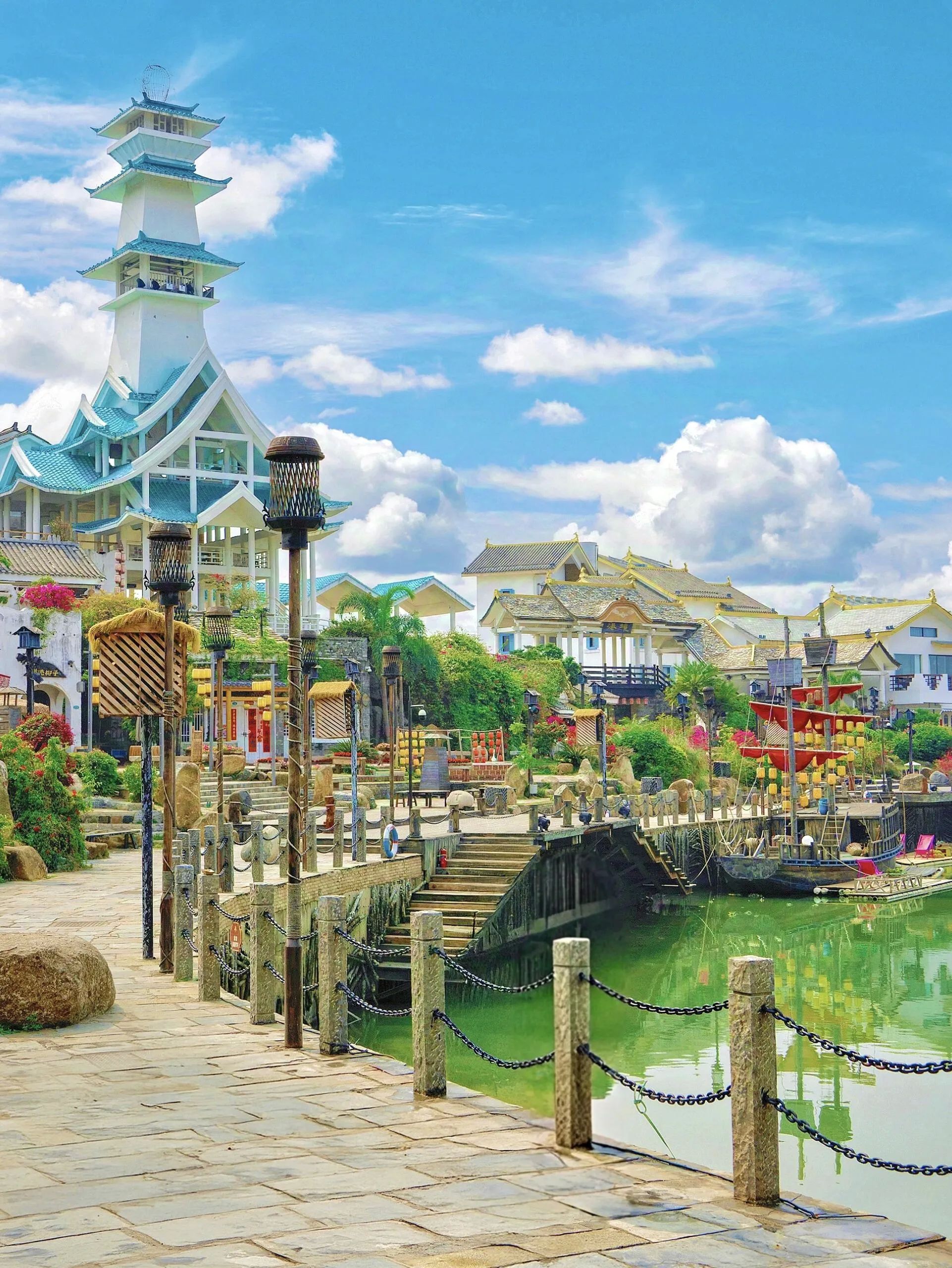 复刻汉代渔村的场景,多巴胺的色彩和远处的渔船构成天然油画背景,很适合黄昏时分来拍剪影