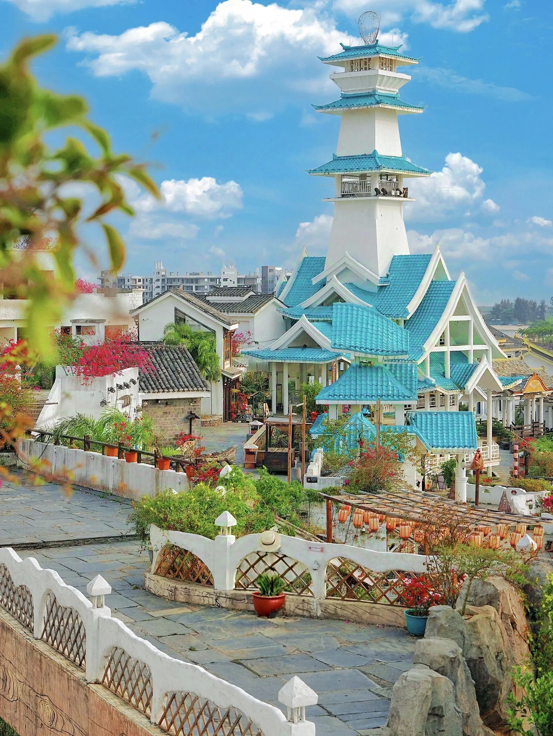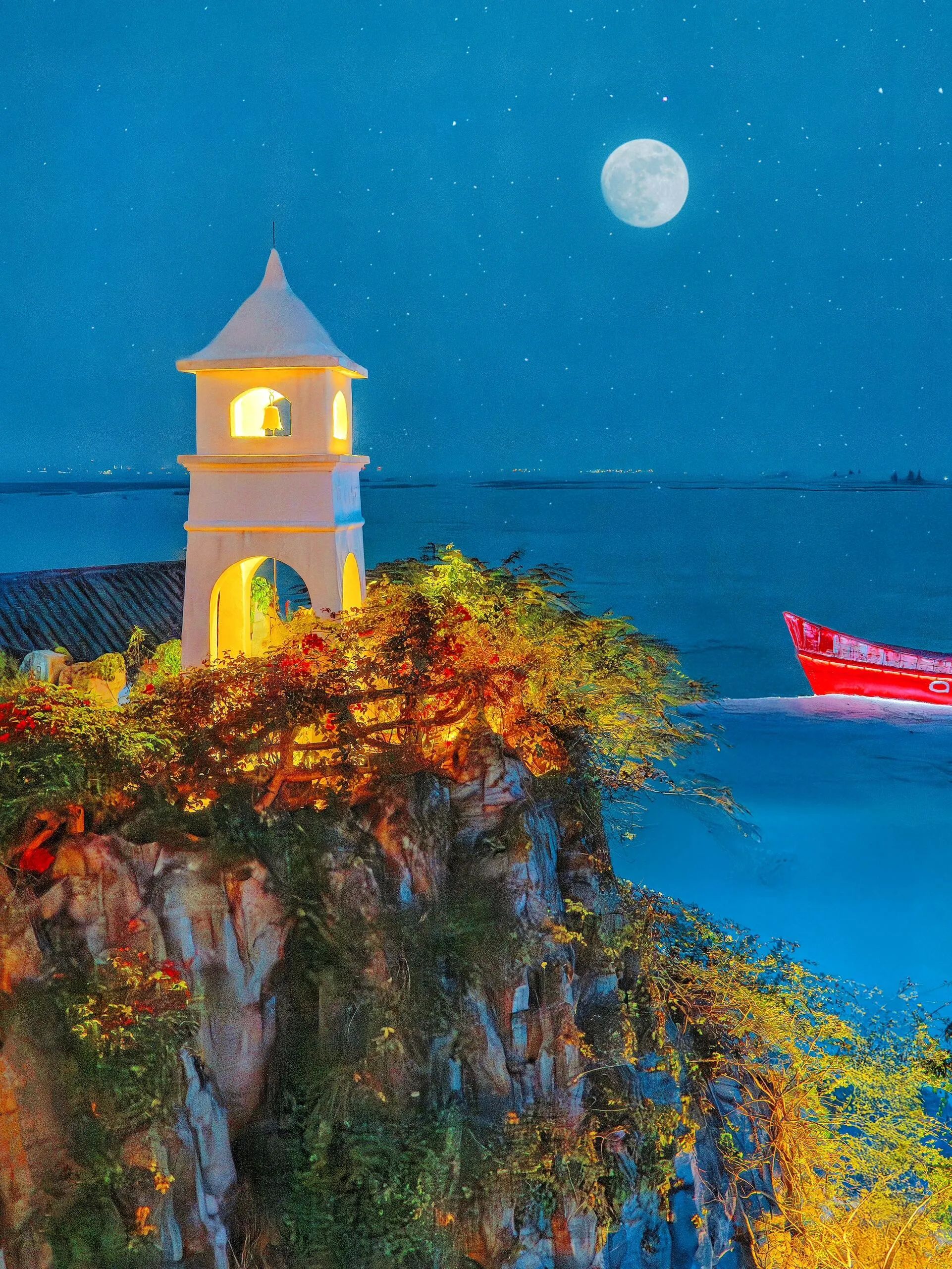 很有宫崎骏漫画感的海上灯塔,无论是白天还是晚上,拍照都很出片