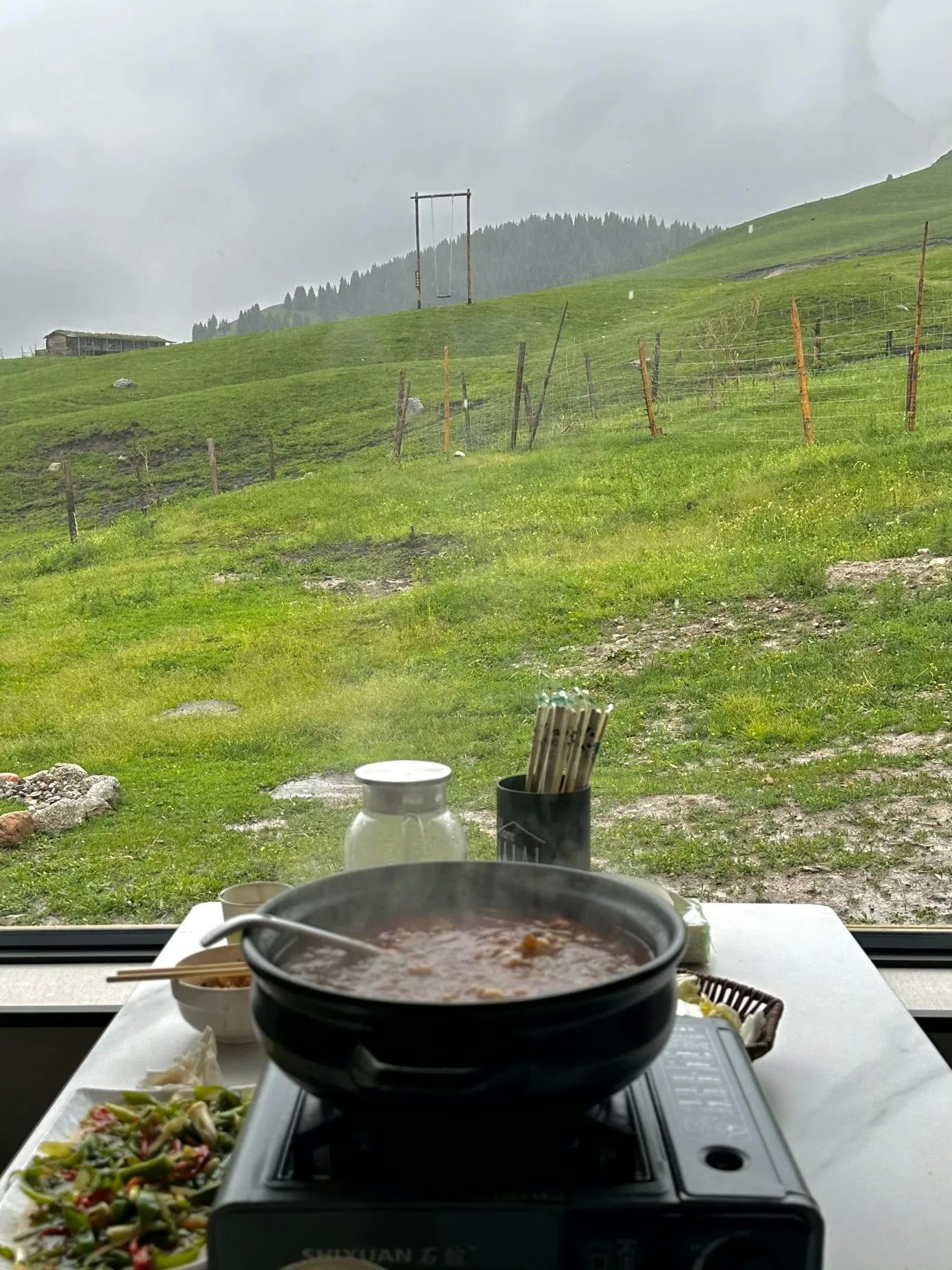 乘坐的1+1航空座椅大七座车,堪称移动头等舱。就算四五个小时的车程,我都能半躺着欣赏窗外新疆的壮美风光。而且领队简直是“人形导航+景点雷达”,遇到绝美野生景点,一脚刹车:“家人们,下车拍照!”太懂我们的心了!