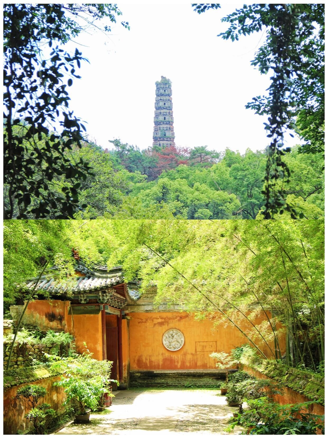 从入口到山门经过(隋塔-七佛塔-寒拾亭-“教观总持”-“陏代古刹”),有一片稻田,意境很美