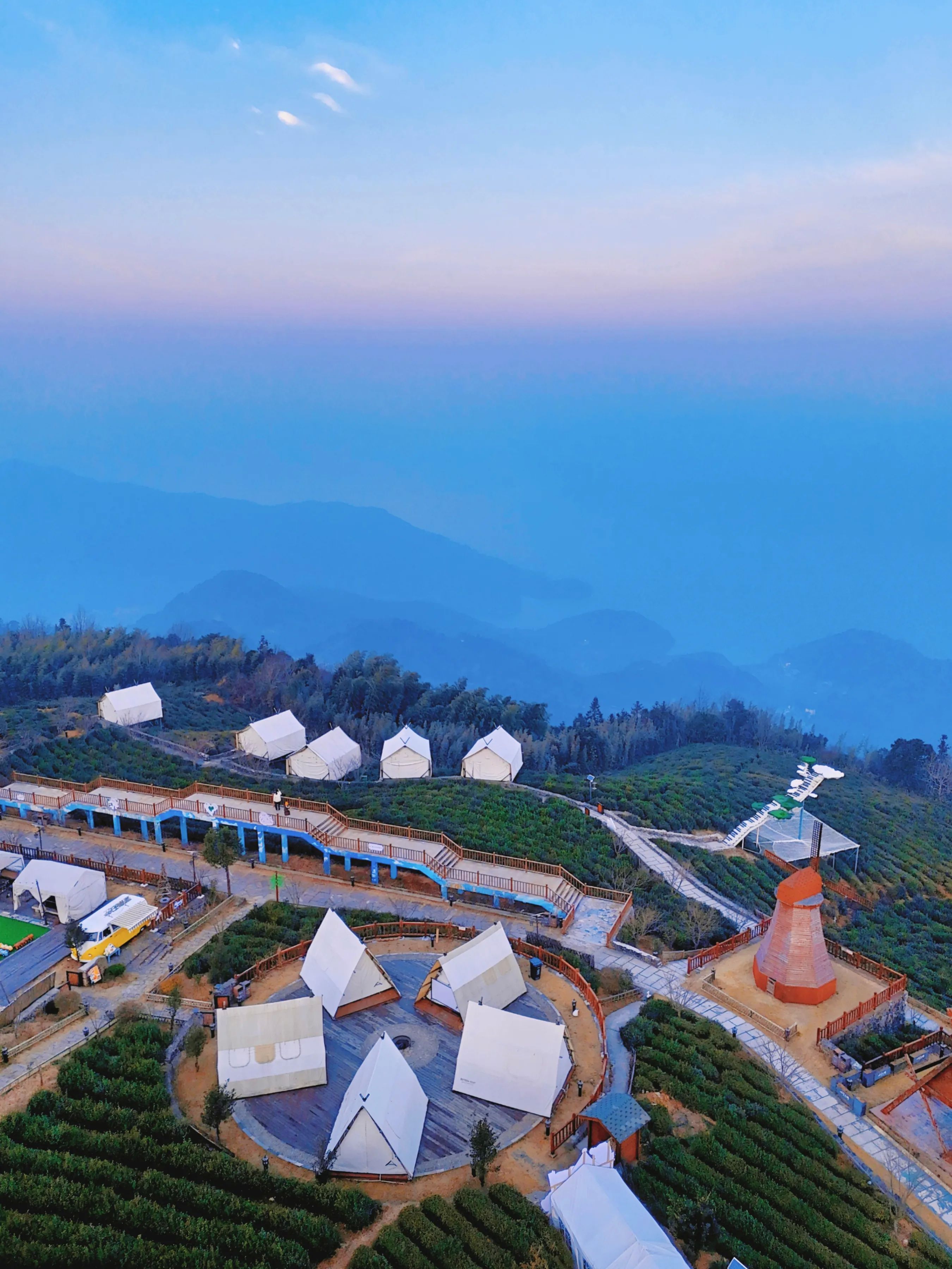 山顶有大片茶园,很适合漫步放松~被茶园包围的森系小木屋,很适合打卡,或者下午茶~