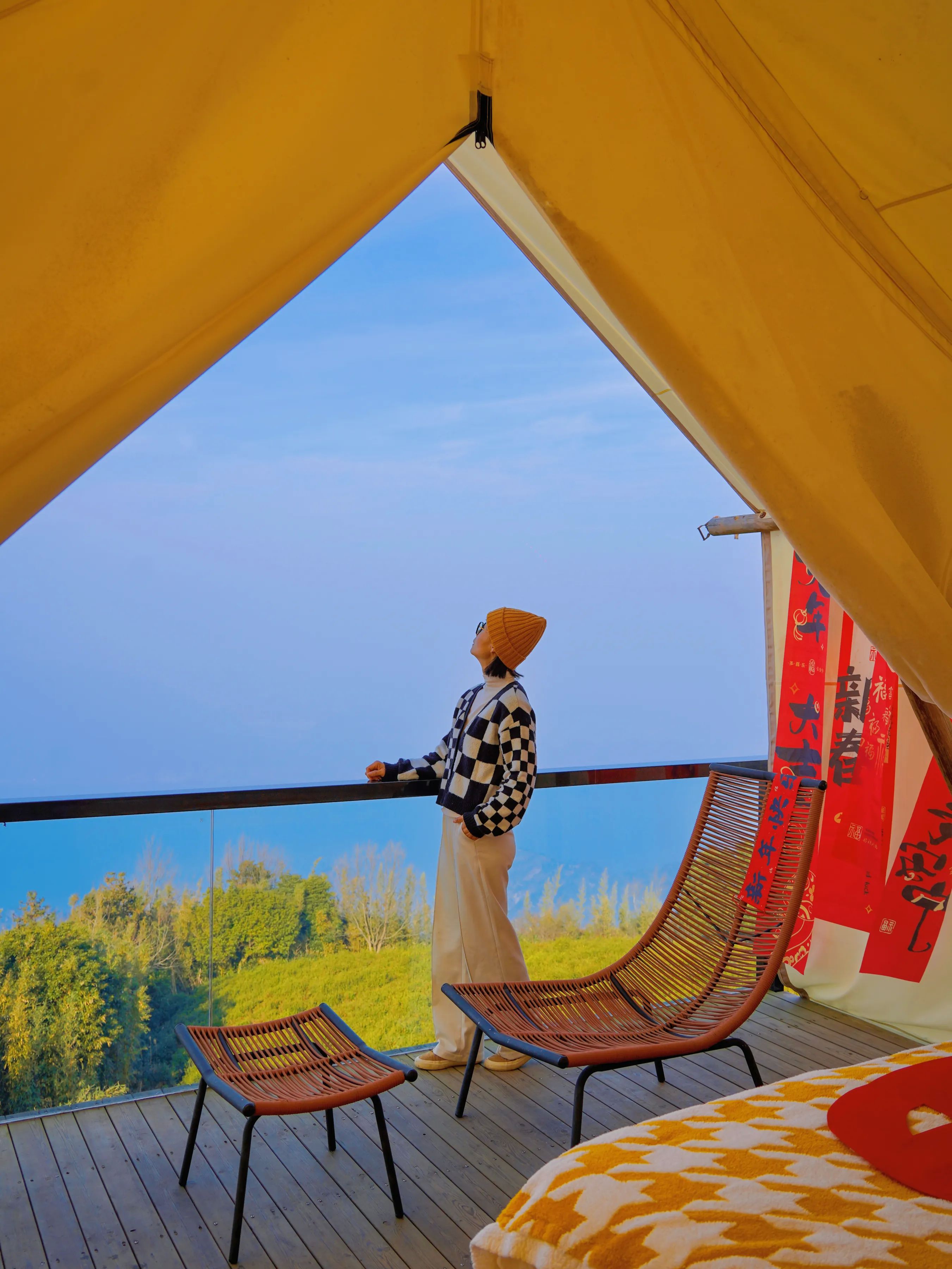 《青春环游记》的同款星空屋,可以一览湖光山色,躺着床上就能看落日美景和日出云海的绝美风景;还有浪漫满屋的帐篷房