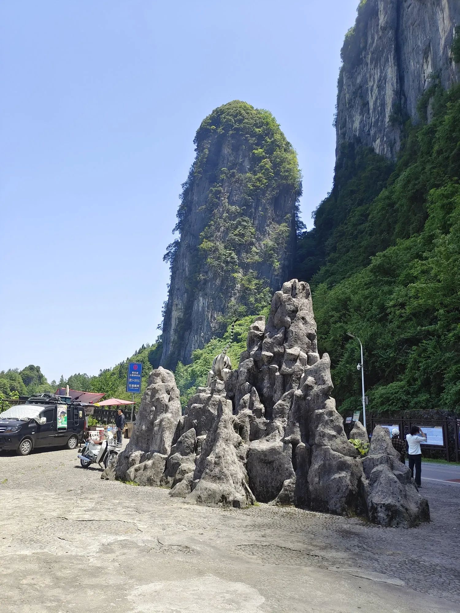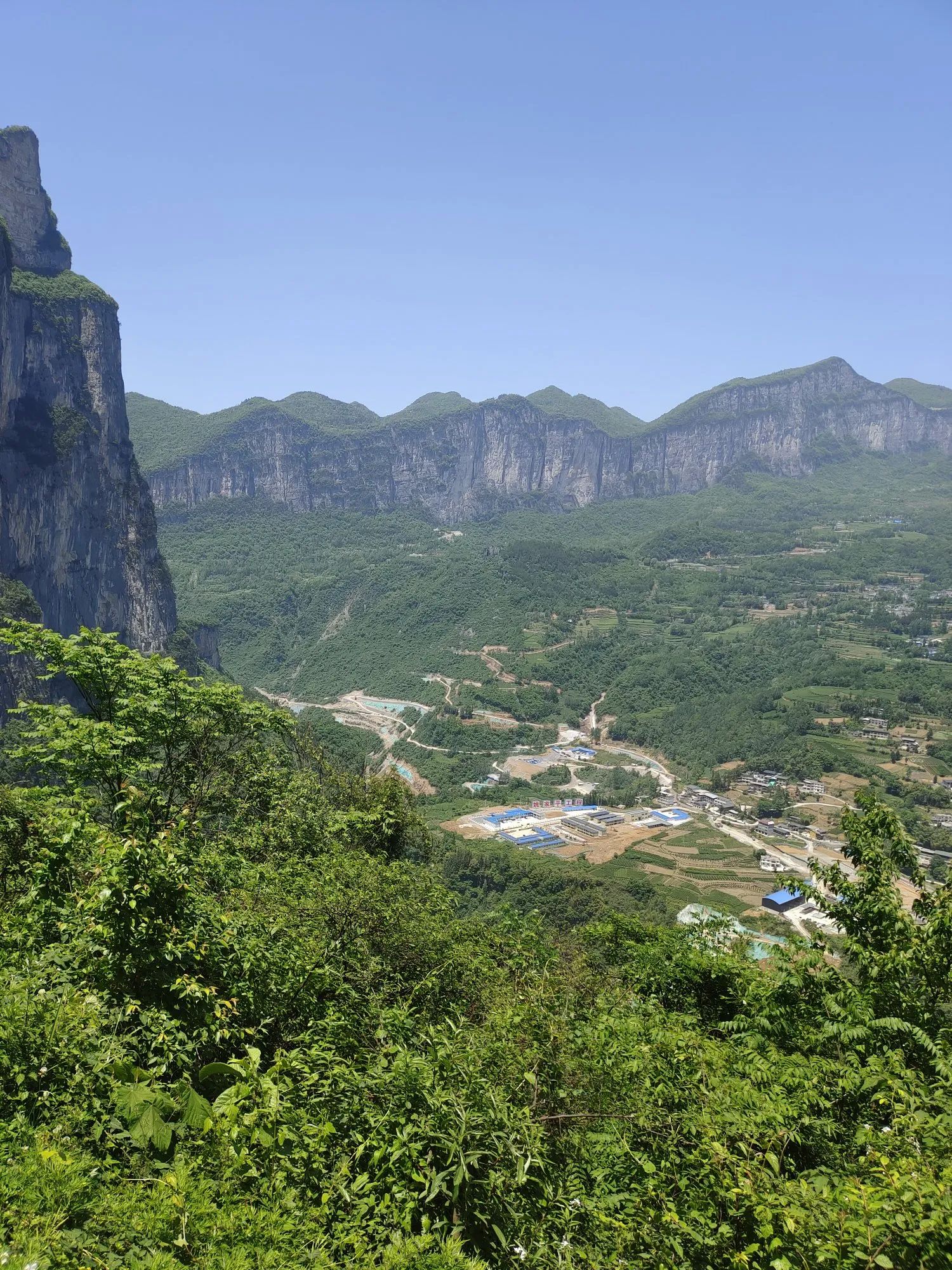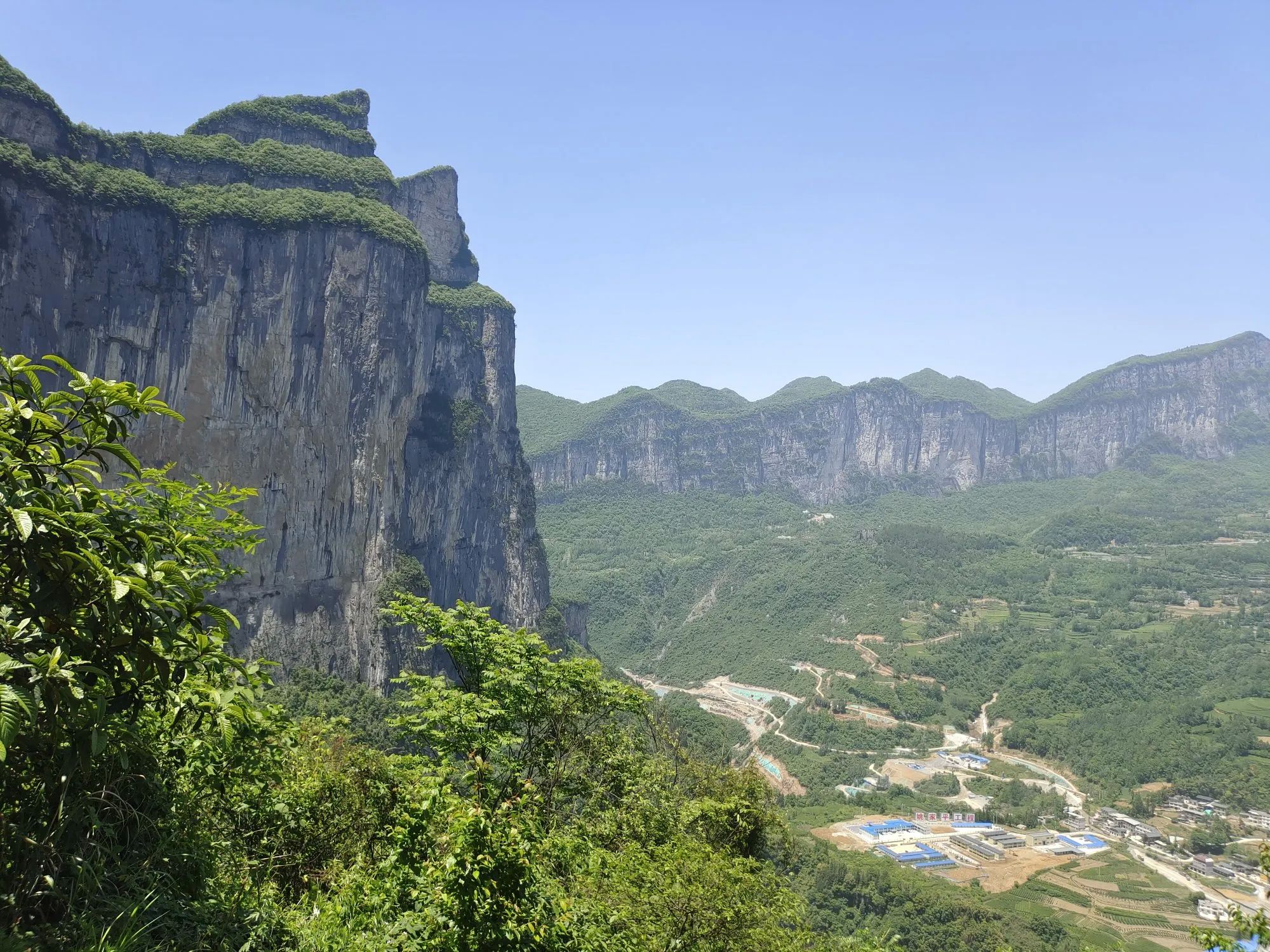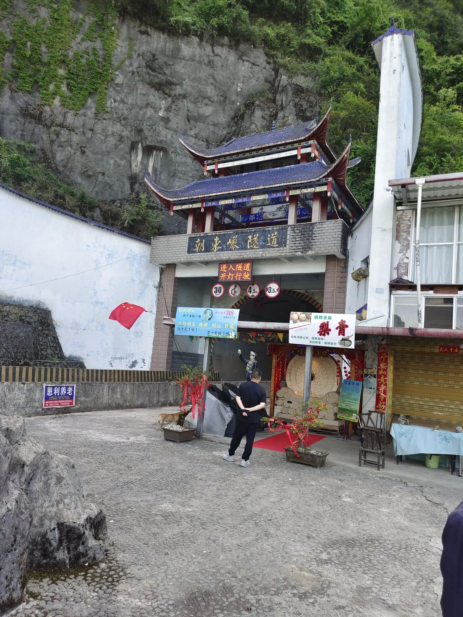 从湖北省利川市往东方向,大约四十公里左右,穿过朝东岩隧道,眼前豁然开朗,一片明媚,一扫隧道里的阴沉沉的感觉。这里就是著名的318网红打卡点——朝东岩。往隧道口的右边观看,绝壁千仞的悬岩边,依附着一个巨大的朝天石柱,一柱擎天,垂直地直插天际。远观则像一柱香,焚香祭拜,似在祈求苍天,保佑士苗儿女平安、幸福。眼光随着一柱香缓缓左移,就到了隧道口的正前方,前面就是恩施市的屯堡镇,密密麻麻的房屋,各自依山而建。通往屯堡镇及旅游景点大峡谷的公路,犹如一条玉带,盘绕在山间。各房屋在绿山翠绿中,时隐时现,绘出了一幅人间天堂的美景。看到此景,我想就是陶渊明老先生,也会心生向往,欲住上几日。眼光在缓缓左移,一座万丈峭壁,如刀砍斧削一般,从天空直插谷底,如果拿角度尺来量,没有九十度,也应该有八十九度。此壁上又戴有一小帽,帽下又有几个台阶,台阶上的植物,郁郁葱葱,一片欣欣向荣的景象,连着此绝壁的是一座巨大的山体。朝东岩隧道就是凿穿此岩体而成。比从山上翻越石板岭,节约一小时的车程,还避开了冬天,石板岭(海拔1600米)的冰天雪地的冰冻路面。