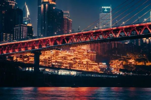 - 晚上:前往洪崖洞,欣赏具有巴渝传统建筑特色的吊脚楼夜景。可以在洪崖洞的观景平台上拍摄美美的照片,也可以在里面的商业街品尝美食、购买纪念品。还可以去千厮门嘉陵江大桥上走走,从不同角度欣赏洪崖洞和江景。