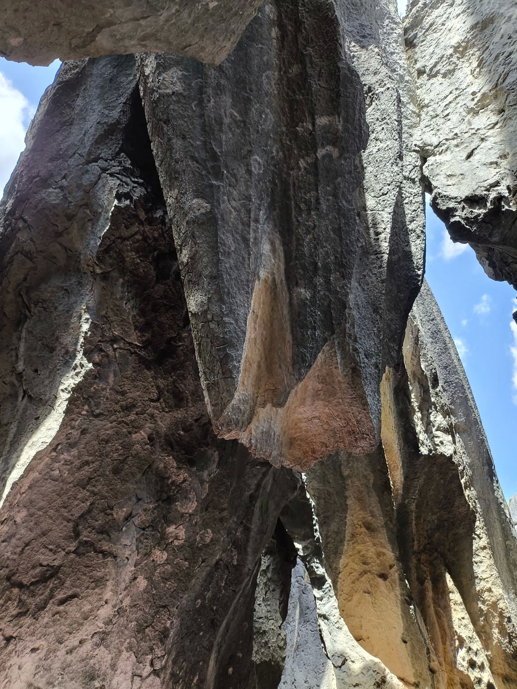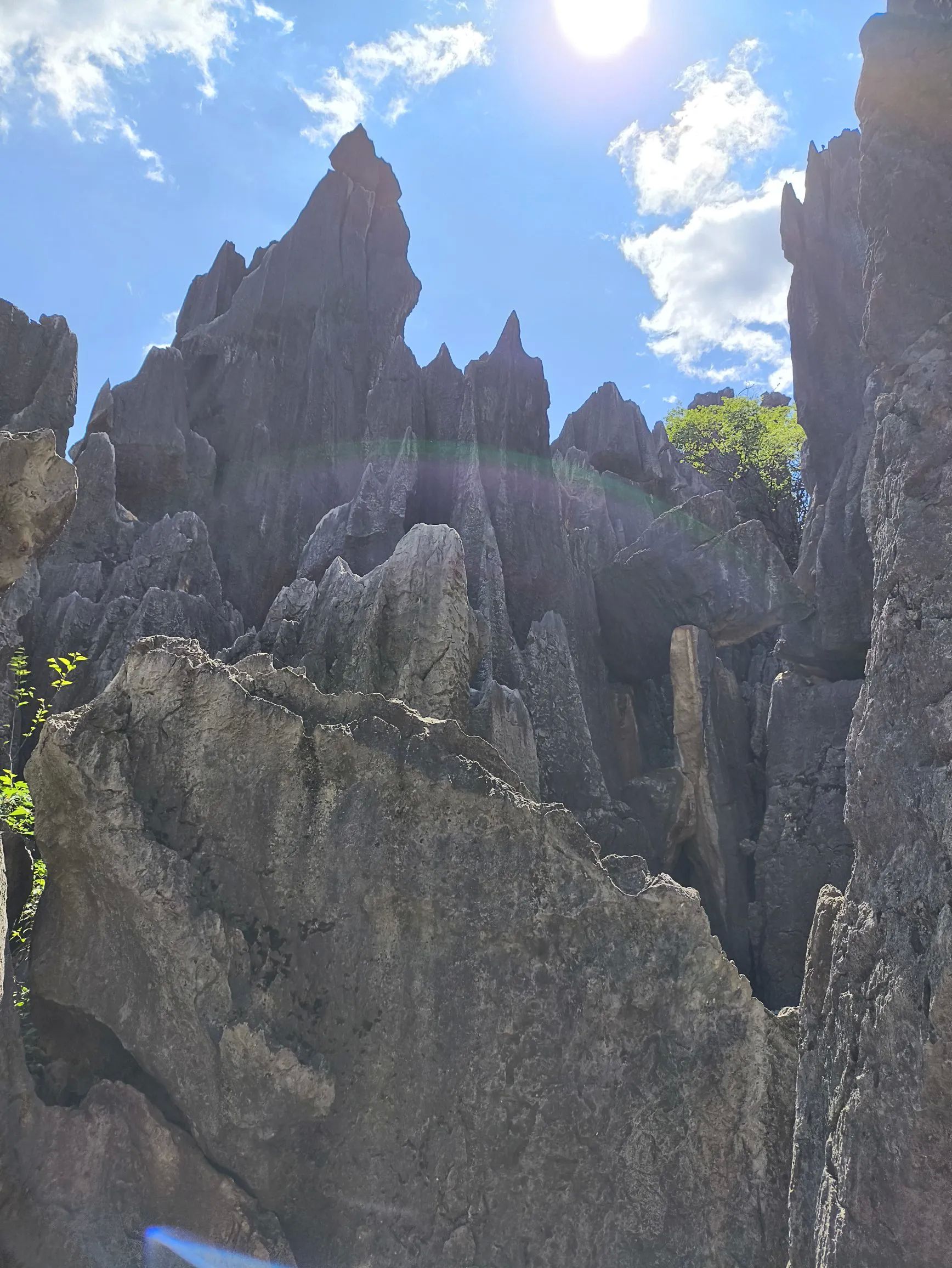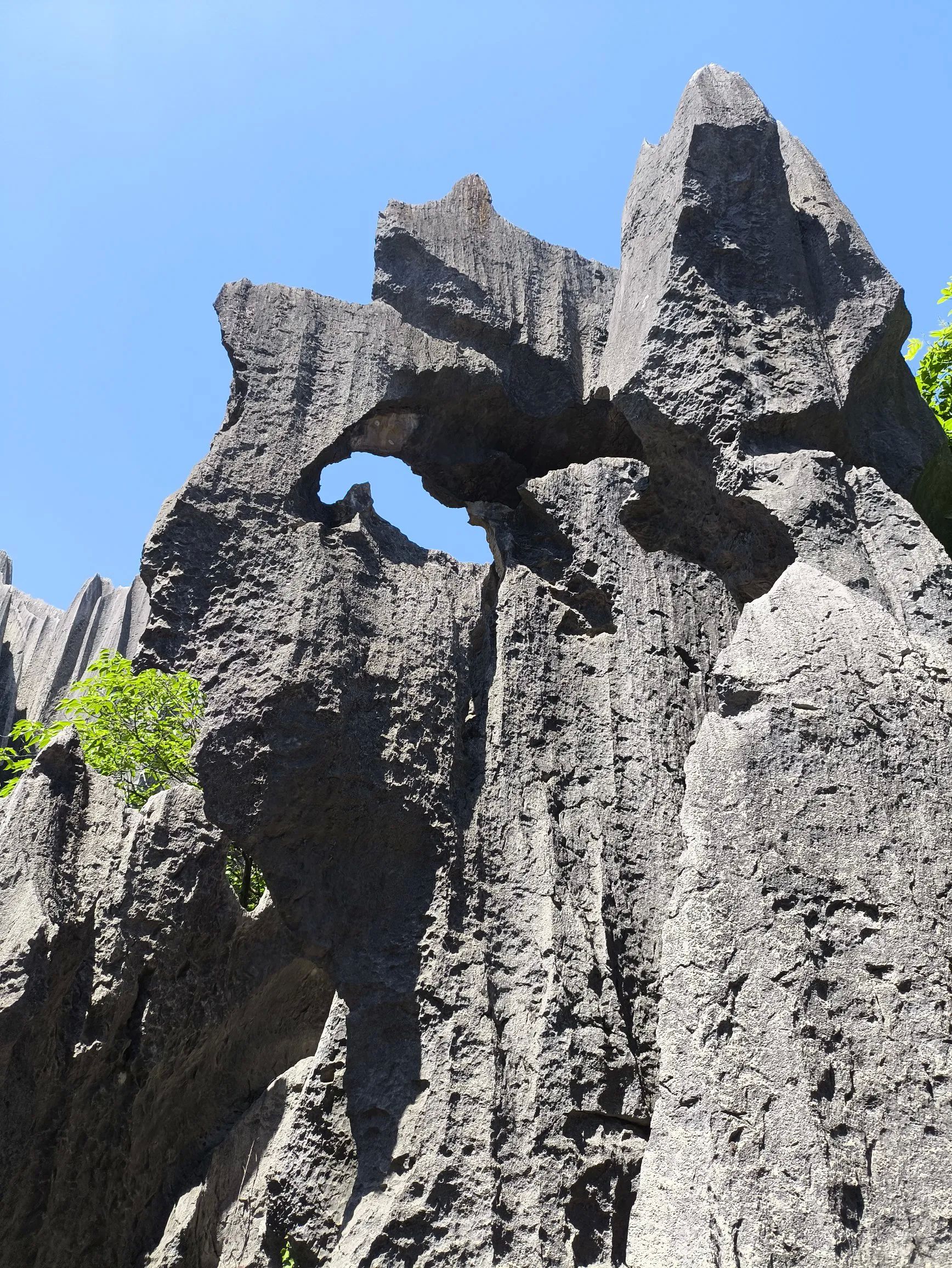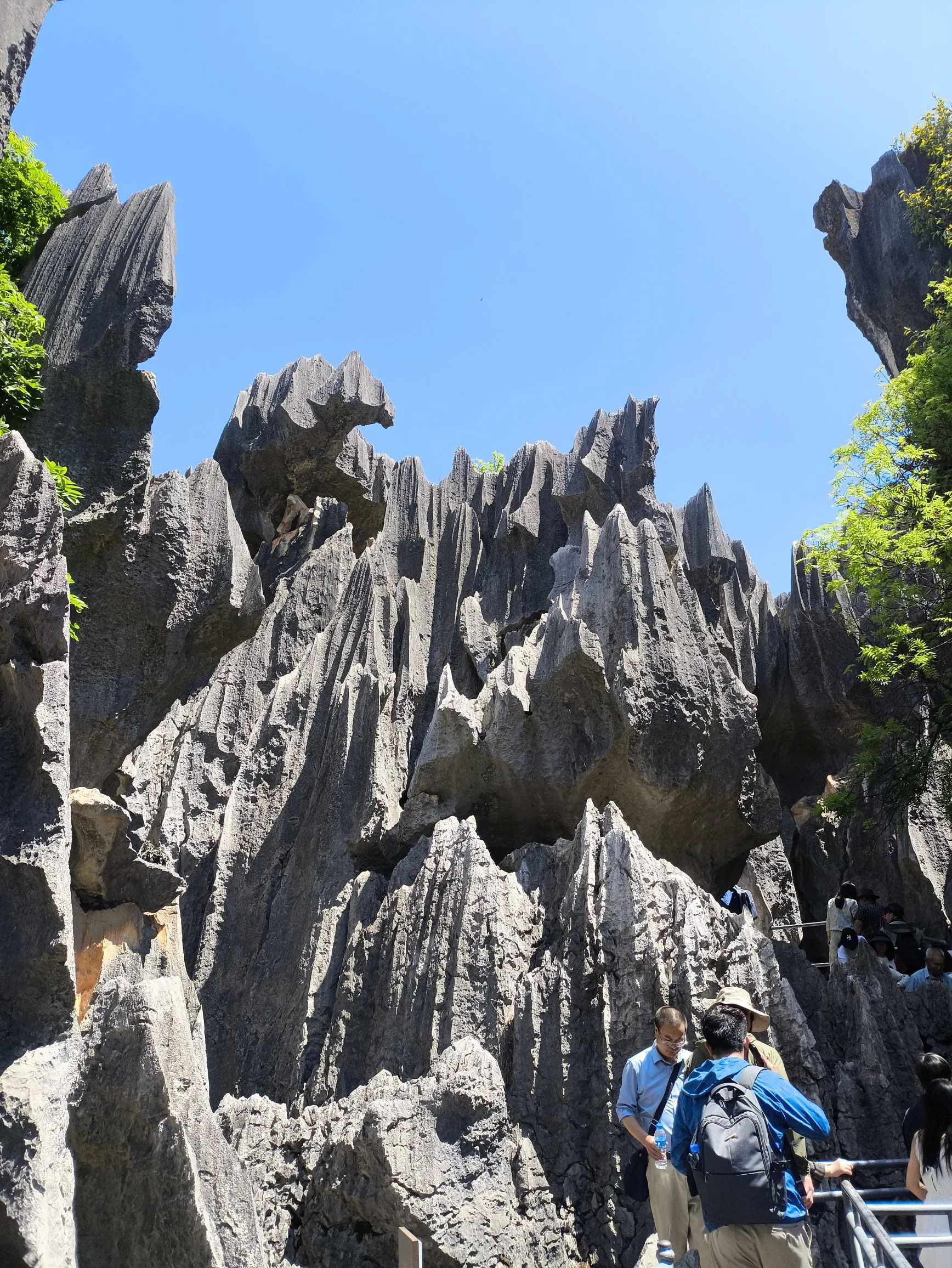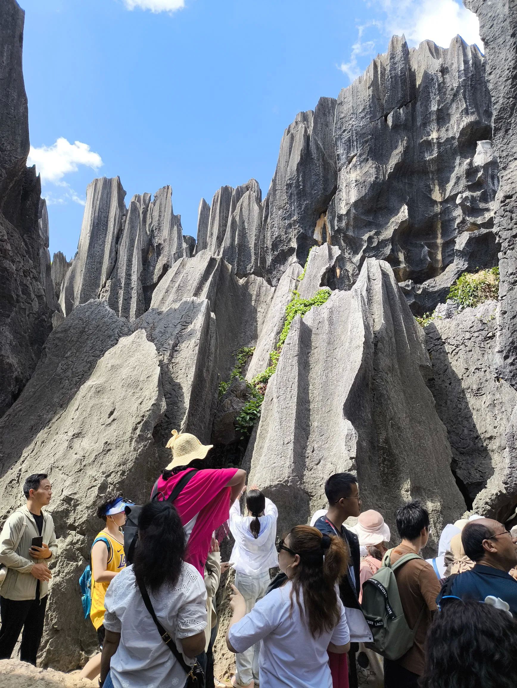 #头条创作嘉年华#戳这里,一起来集邮>5月4日游石林风景区。这是我们在云南的最后一站,完了就会贵阳。没来之前看网上很多博主说不值得,因为门票要130元,老年儿童半价65元,还要买观光车每人25元。不过本着来都来了,必须看看再走的原则,全家买票进园。这个观光车是必须买的,因为景区真的很大,主景区大石林在进口,小石林在出口,中间还有几个小景区,可以多次往返。我们觉得今天人很多,但听导游说有40多个团,连高峰期一半都不到。好多博主说玩石林必须报团,没有导游看不明白,只能是远看大石头近看石头大[呲牙]。确实有道理,不过这么多旅游团,在任何地方都能听到解说,不听都不行!在进大石林核心区之前有一个石屏风,就是很高很薄的巨石非常震撼。进去核心区,这里有很多摩崖石刻,除了龙云的都是小人物,在人文方面差了点。钻进石林就是一步一景,边走边拍非常出片,里面有休息的石桌石椅,跟着人流爬上观景亭,又跟着人流下来,不累很有趣。不过有点不太好的,景区内的饮料食欲是很贵的,一根考场10元,所以尽量自己带。还有就是滥竽充数的导游太多了,同一个景点解说都不一样,都不知道信哪个?转完大石林就乘车去小石林,中间的小景区没下车,因为都是些零碎的小石头,看过大石林就觉得这些索然无味。到小石林这里有湖,有阿诗玛(像美女的天然巨石)还有像猴子像大象的,这个导游会解说,自己也可以发挥想象力。游完小石林就出来坐电瓶车回到正门,走几百米就出景区了。总体上挺好玩的,也算对得起价格。很多人说这不就是喀斯特地貌,云贵川都能看到,不就是个大号的贵阳市喀斯特公园,那个公园还不要钱。不是的,规模不在一个层面,就像小河沟看过了长江黄河还是要看的!五一假期就这么结束了,昨晚我们住在石林旁边一个叫五棵树的一组村寨,村民是彝族撒尼人,很纯朴,我们还参加了他们的篝火晚会。住宿100,早餐8块一碗的粉,中餐一百来块钱一家子吃不完,消费是真的低。好多人怕去云南旅游,我们这一趟4天下来,没有被坑过,所以说尽量不要报团就自驾游,云南的本地人本地商户都是很淳朴的,不要妖魔化云南旅游!