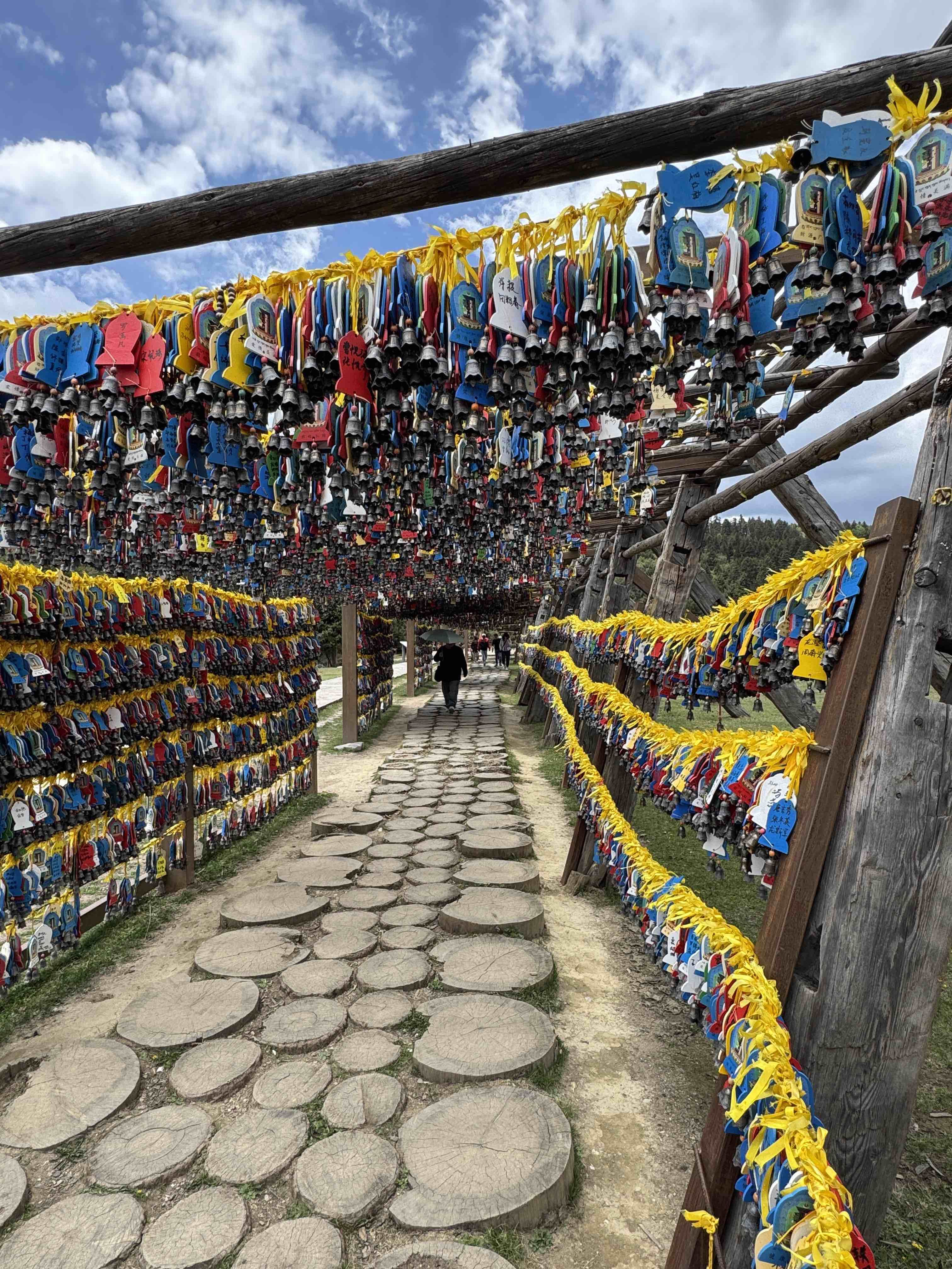 (1)坐大巴车到第一个景点,悠幽步道,下车步行2.2公里,土路平路,然后继续坐大巴去第二个景点。