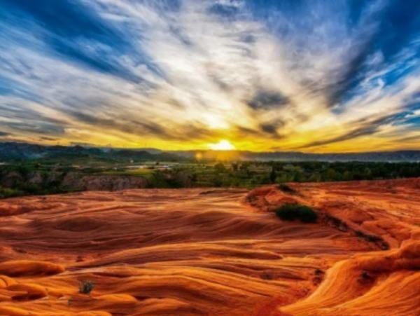 1、龙洲丹霞地貌自然景观区,位于陕西省榆林市靖边县龙洲镇东南约21公里附近。景区为丹霞地貌景地,当地人称“波浪谷”、“红石峁”,也叫靖边红沙岩峡谷。红色砂岩在风雨剥蚀下呈现出千奇百怪的姿态和色彩,不同角度、时间都会呈现不同的景色。