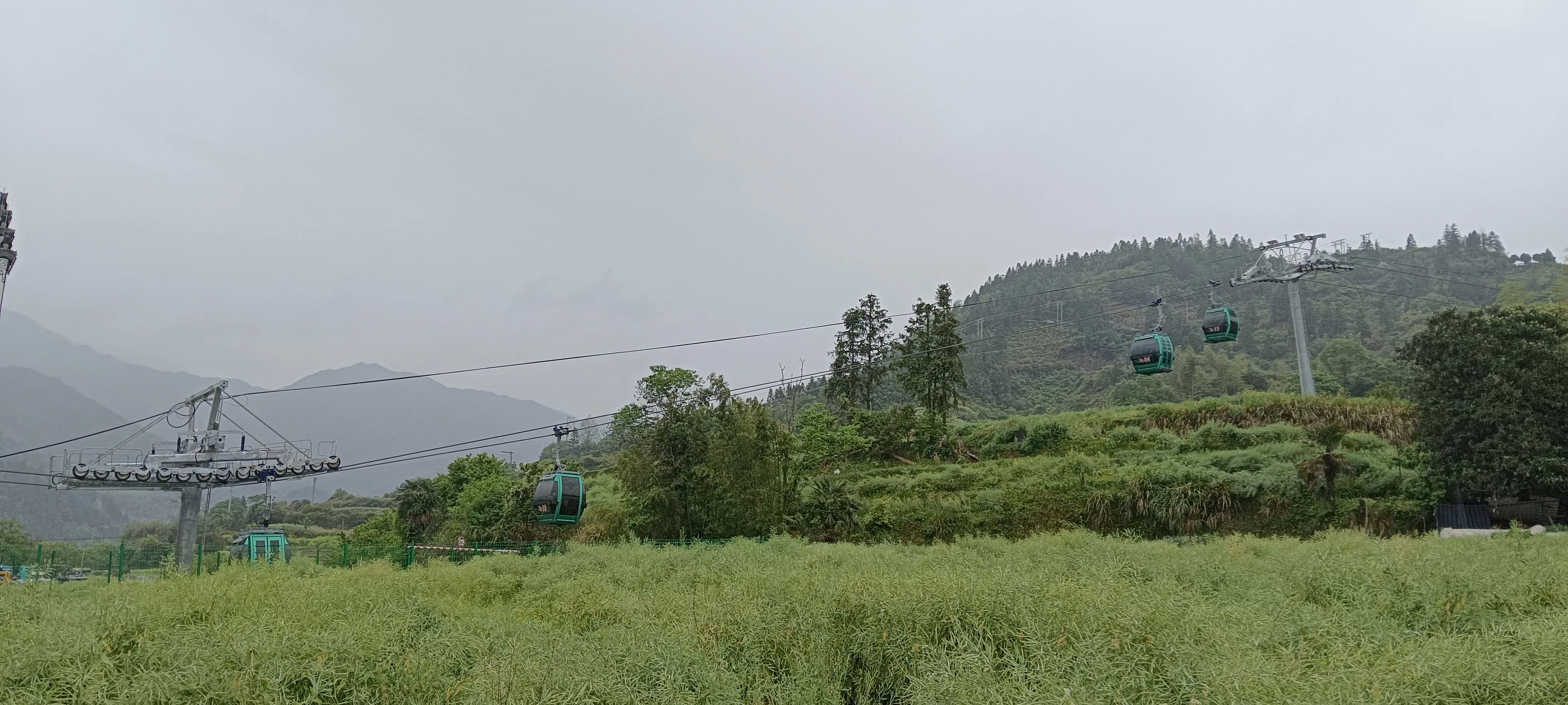 直到我们吃晚饭,看到黄岭的索道还在上下的滑行。