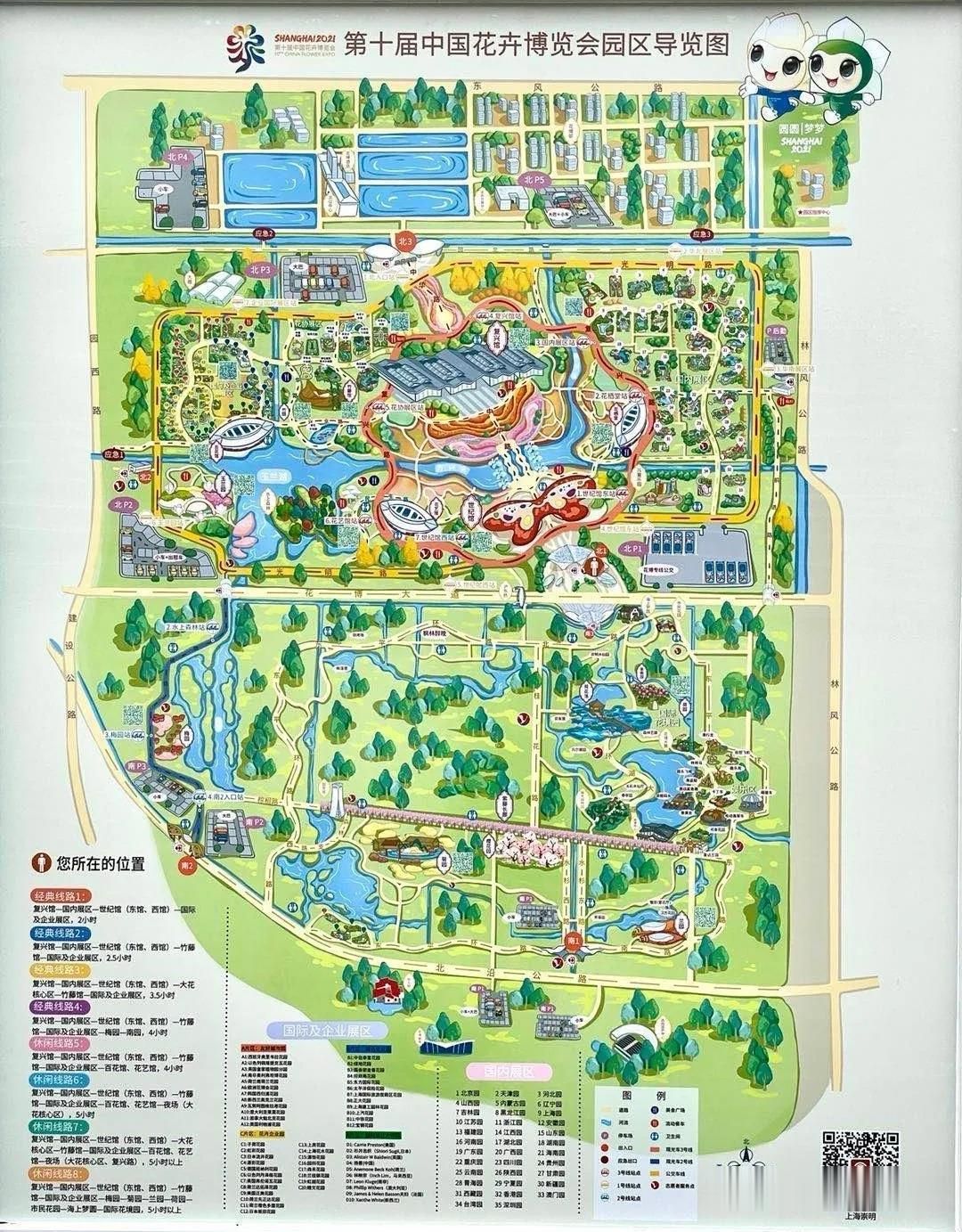 [得意]花博会真的是太大太大了,先给大家看一张地图。简言之,全国各省市都有室内和室外两个展区。室外园都各有特色,非常好看,室内园则全部在复兴馆,总体没有室外园区好看,但比较凉快。天热极力推荐![笑哭]两者之间很远,基本上需要坐电瓶车(10元/次)或小火车(5元/次)。