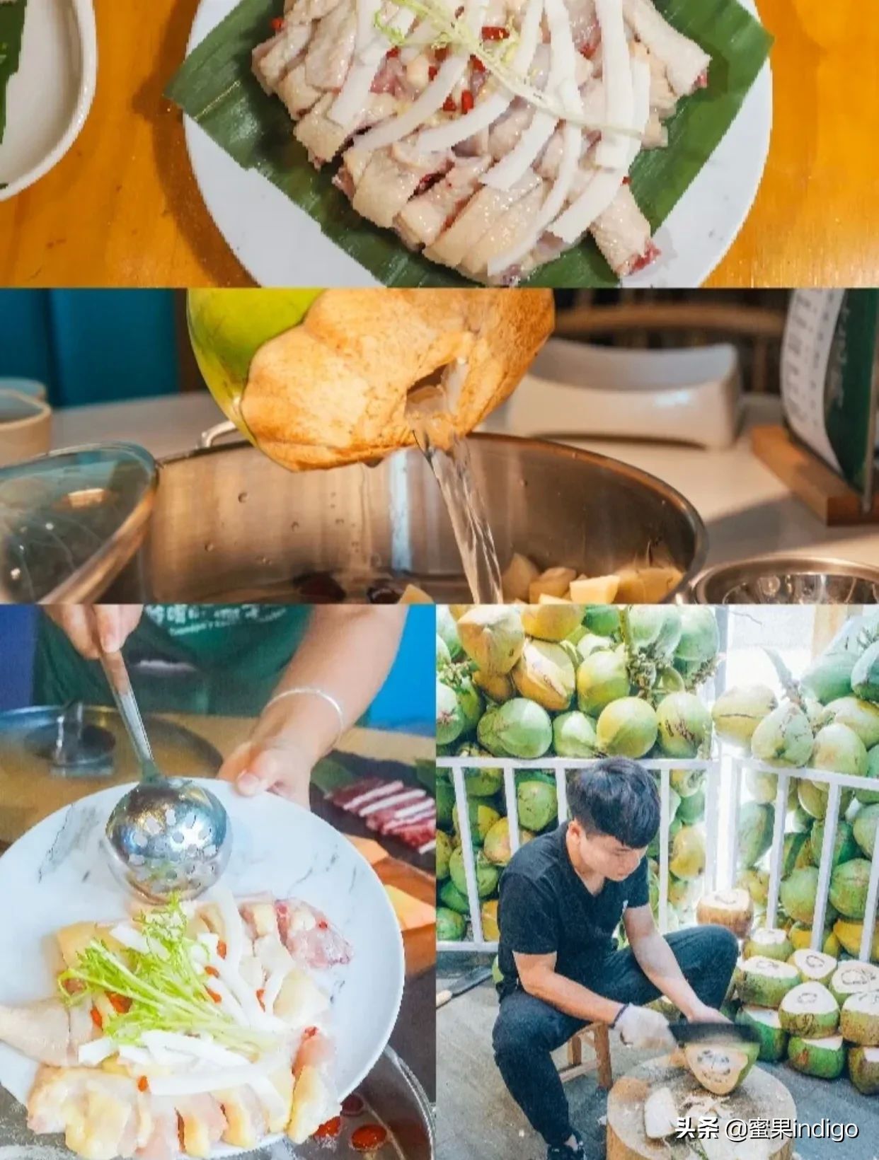 [浮云]1.椰子鸡:总体口味都比较清淡,我推荐:《 萌哒哒椰子鸡情人桥店》日萌哒哒椰子鸡(情人桥店) 锅底是现场倒的,三个新鲜椰子现砍,现加入超级新鲜!加上文昌鸡、锅底都是用新鲜食材当场加入,推荐手打马鲛鱼滑、粽子、手打虾滑、这家汤底是我吃过的最有椰香味的,我们四个人吃了二百多,人均60-70,(其实很划算了)喜欢吃糯米的千万不要错过斑斓糕、竹筒饭、糯米饭,软糯香甜口,每家价格大多都差不多,但最大的差别就是汤底,这家很有特色而且好吃。[飞吻]
