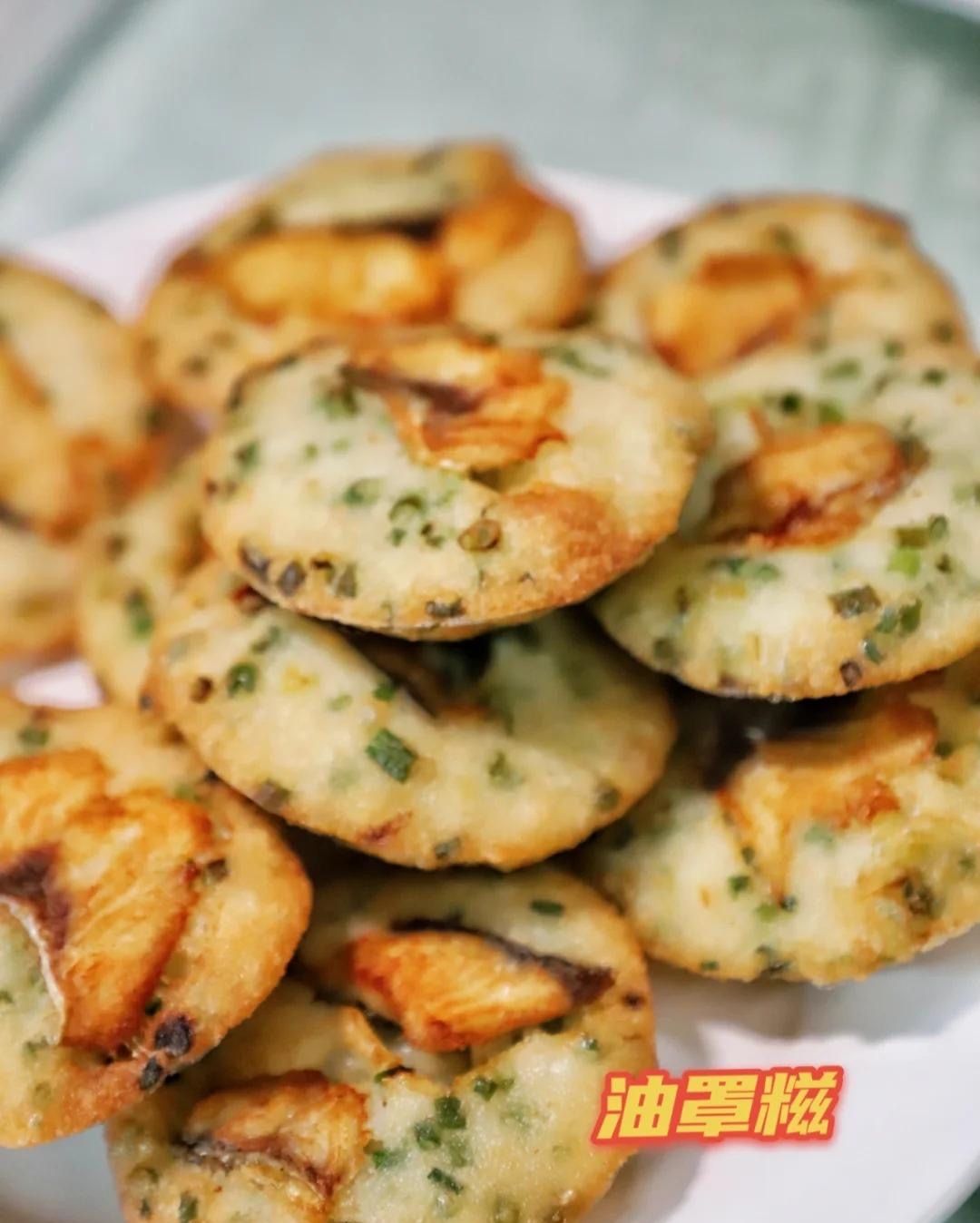 3. 油罩糍:这是油炸小吃,外皮酥脆内里柔软,米香浓郁。