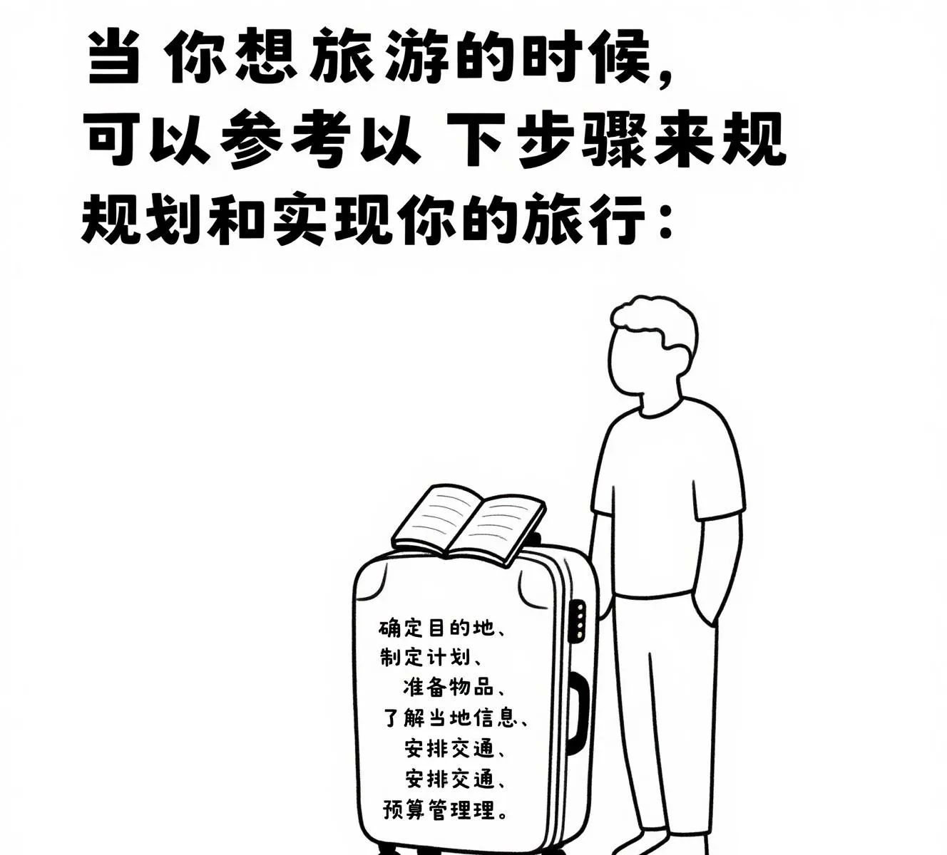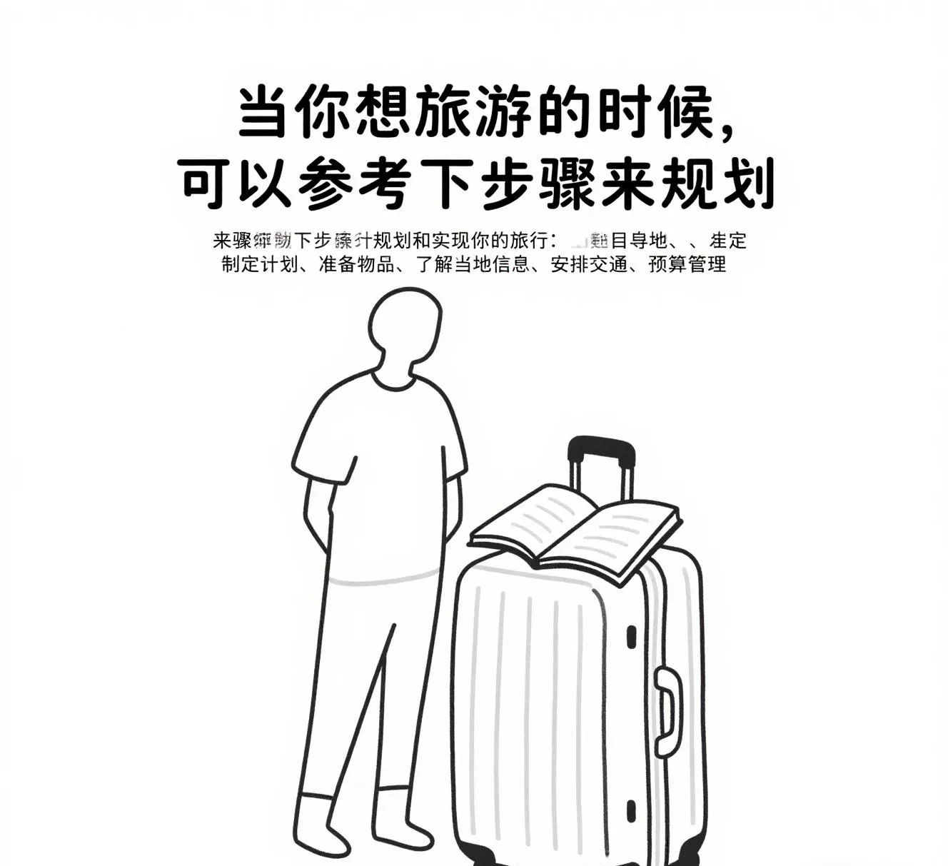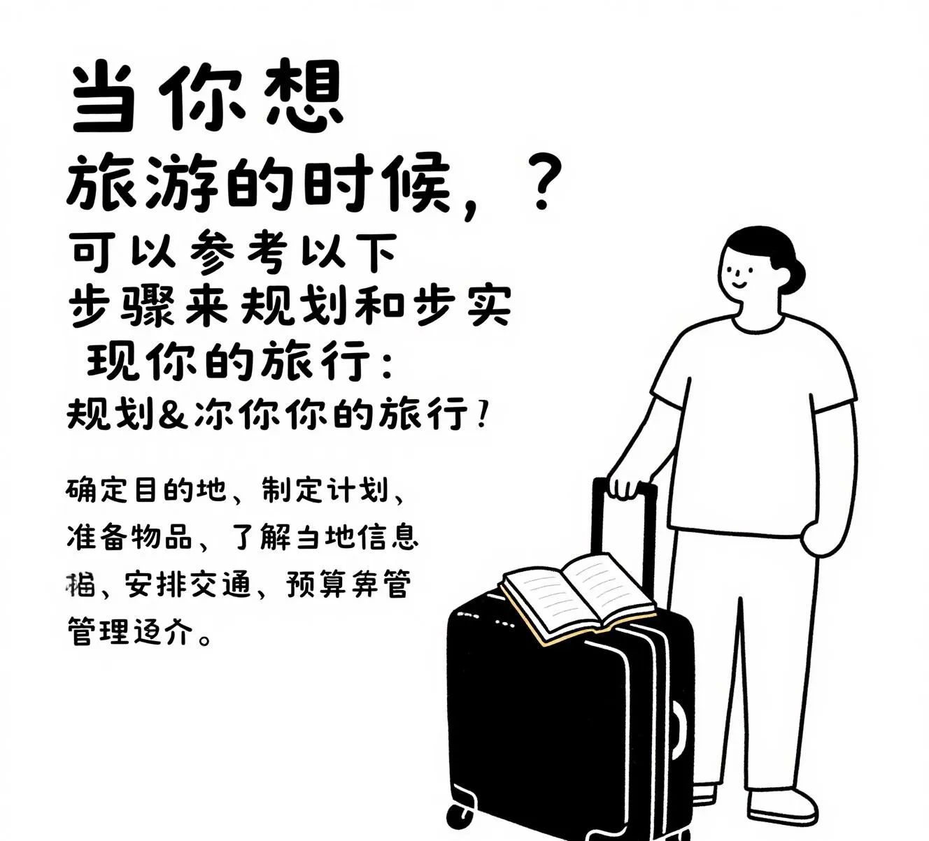 当你想旅游的时候,可以参考以下步骤来规划和实现你的旅行:
