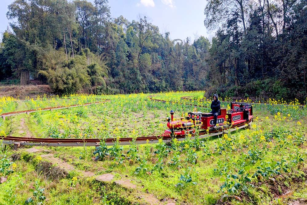 位于纳溪的乐园,从城区出发大约需要40分钟抵达,这里有成年人也能乘坐的小火车,带你穿越花海,体验一次童年的悠闲快乐。