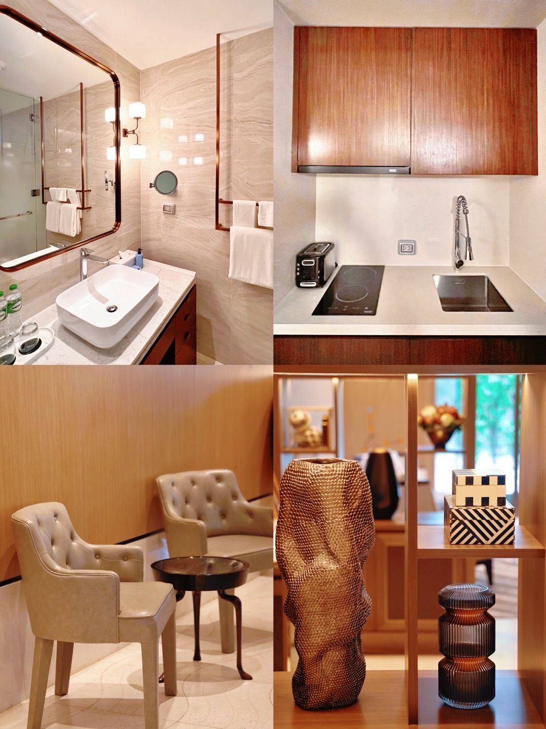 酒店房间兼具公寓性质,有厨房,洗衣机和衣帽间。卫生间干湿分离,智能马桶,还有大浴缸也是贴心。