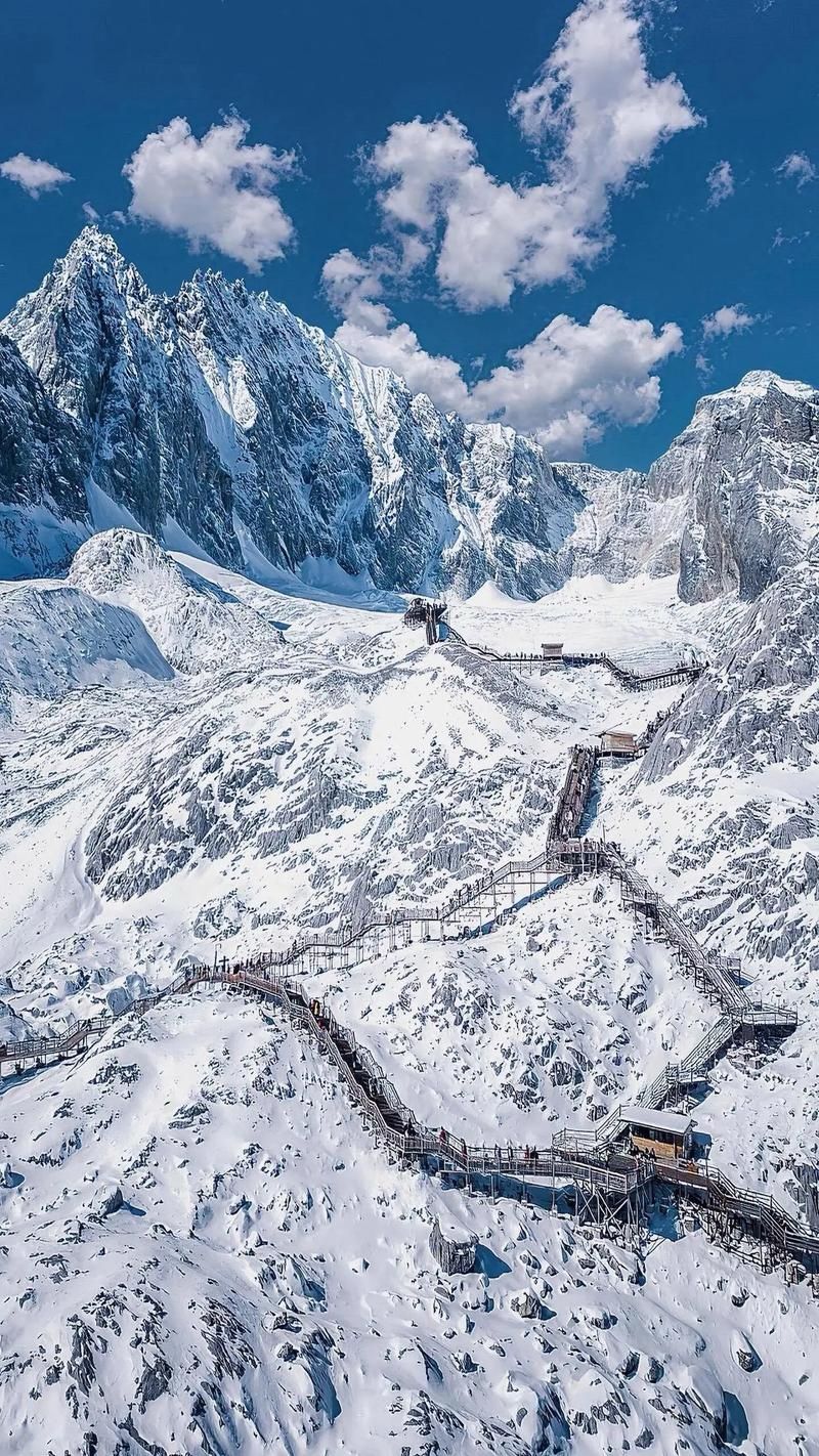 上午:前往玉龙雪山,乘坐索道登顶,观赏壮丽的冰川公园和云海翻腾的美景,感受纳西人心中圣地的神圣。