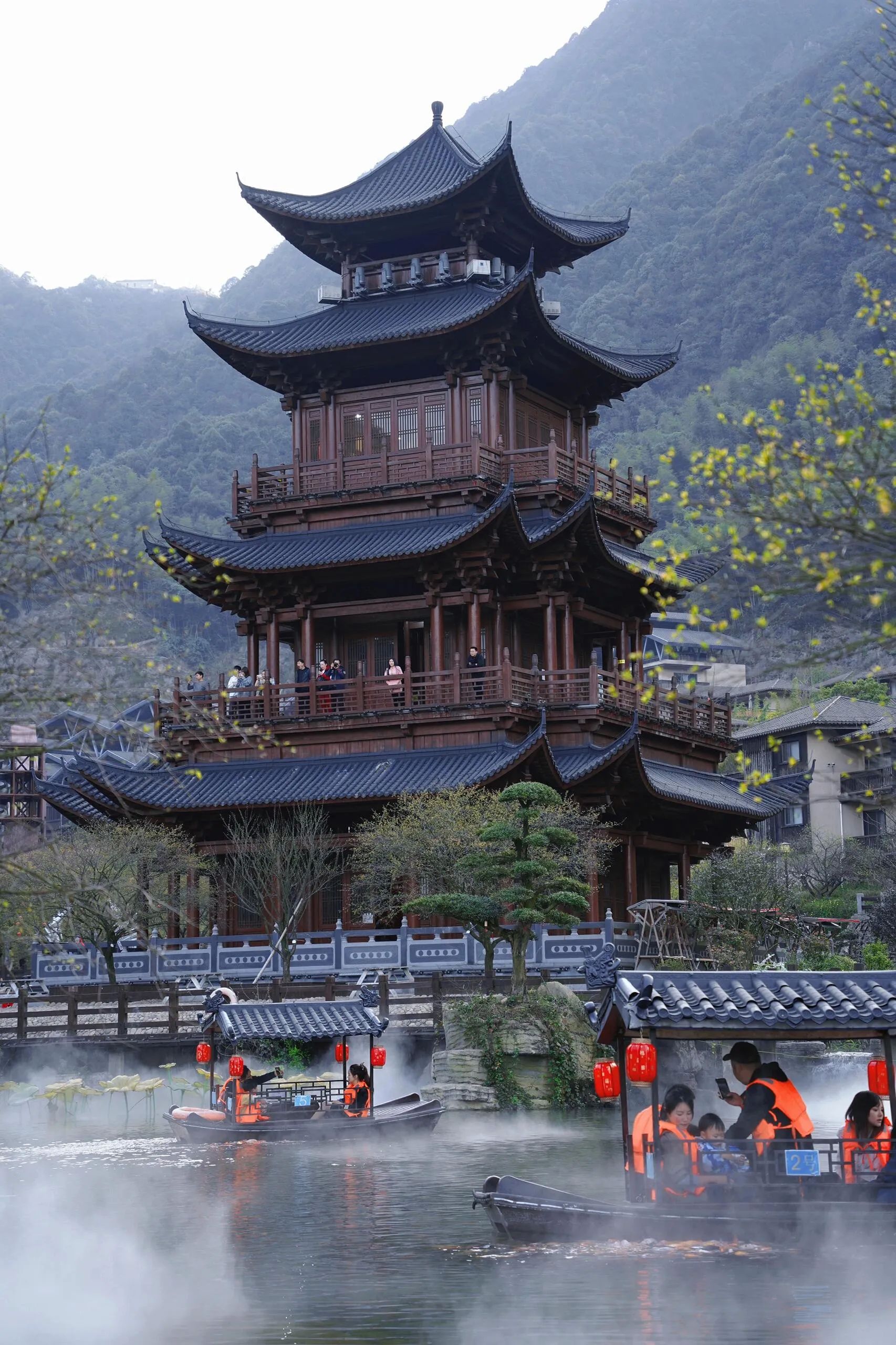 被青山包围的村落太治愈了!白天可以泛舟湖上,看千条锦鲤追着船桨游动;夜幕降临,百盏花灯次第亮起,换上汉服穿梭其中,瞬间穿越回古代,氛围感直接拉满!